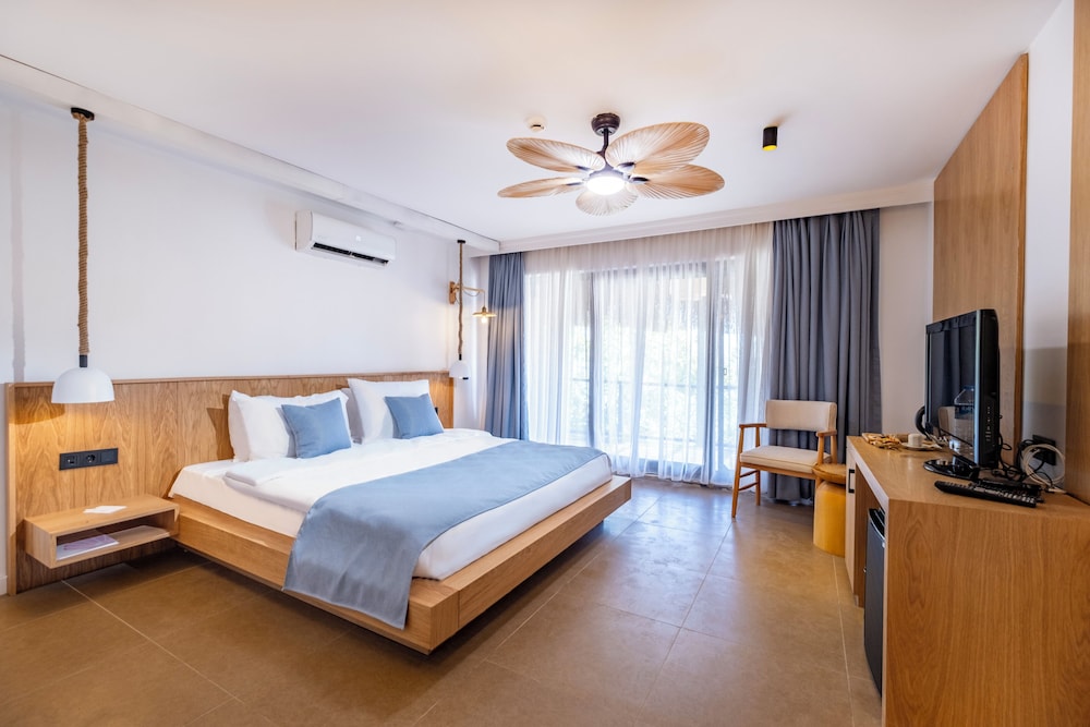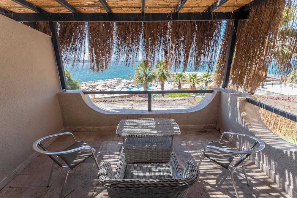Odanın konumu ve büyüklüğü, oda içindeki olanaklar yeterli ve konforluydu. Denize girmek çevrede inşaat faaliyetlerinin sürmesi, tehlikeli derecede inşaat atıklarının toplanmamış olması, denize giren merdivenlerin paslı, güvenliksiz ,üstünkörü yapılmış olması, merdivenlerin bir tanesinde paslı çivinin olması, plajdaki genel temizliğin kötü olması gibi sebeplerden denize girmek için bu otelin tercih edilmemesi gerekiyor. Havuz ve plajda tüm gün yüksek sesli müzik olması ve bu seslerin odaya kadar gelmesi ayrı bir rahatsızlık veriyor. Aile ile seyahat etmeyi düşünenler için uygun bitir tesis değildir.