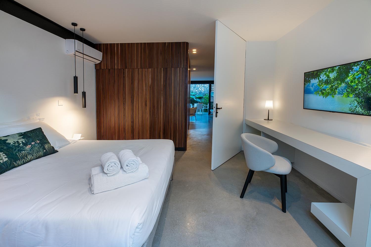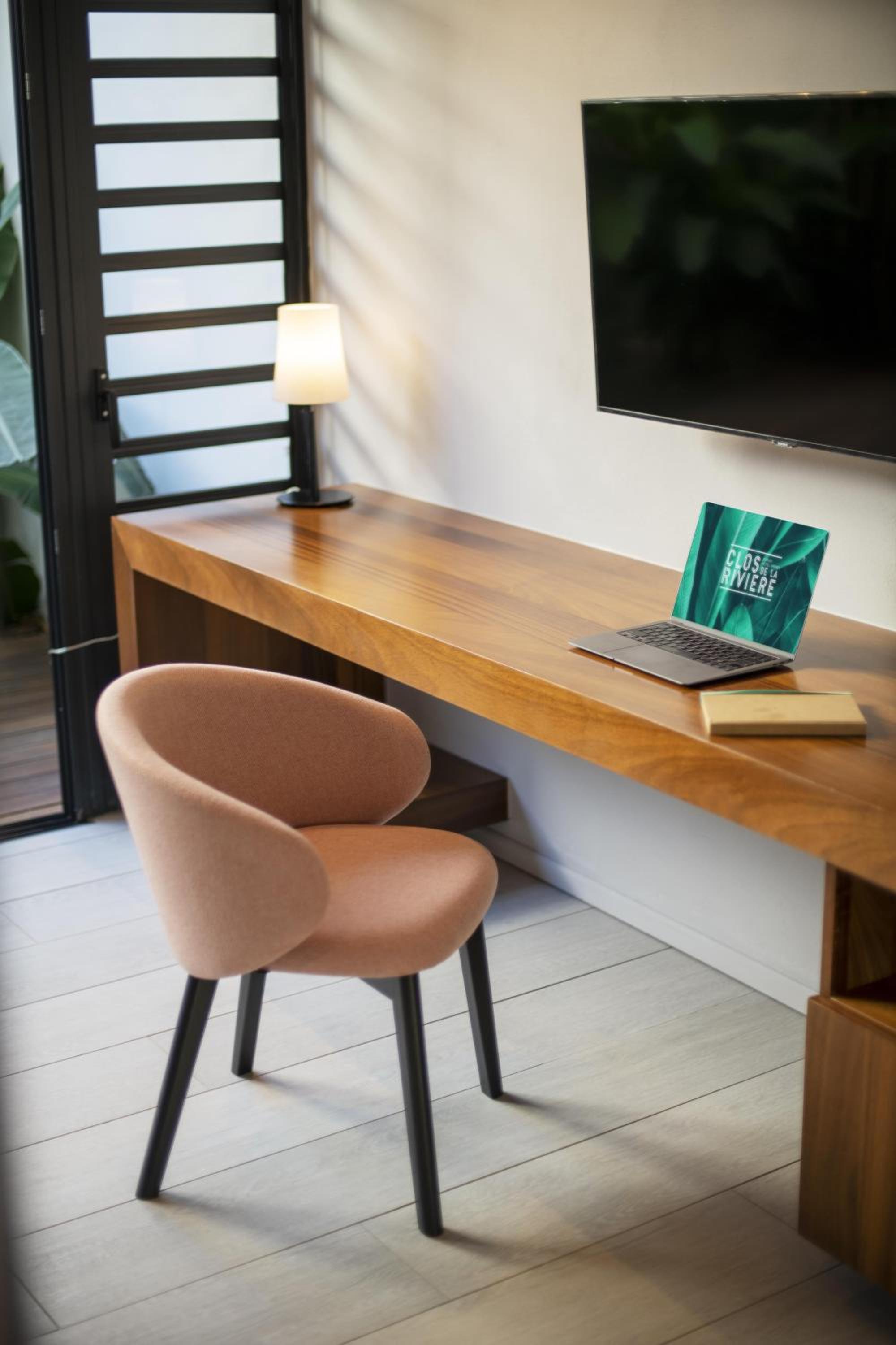 Each unit at Clos de la Rivière features a well-fitted kitchenette with a dishwasher and a microwave, along with a safety deposit box, satellite flat-screen TV, ironing facilities, and a cozy seating area. The private bathrooms are equipped with walk-in showers and hair dryers, while some rooms even offer a terrace for a relaxing outdoor experience.