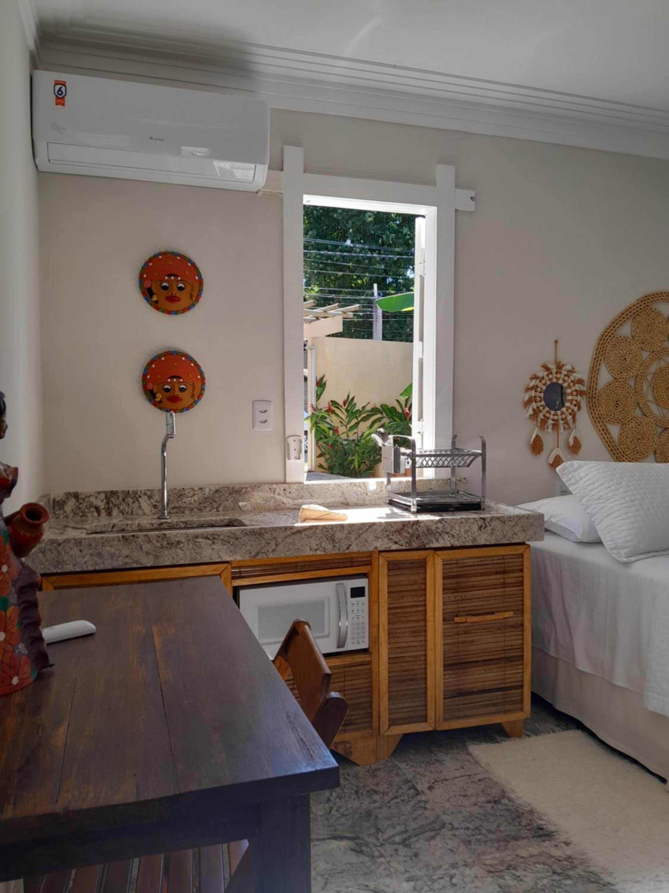A limpeza, os móveis bem localizados, cama macia o ar condicionado excepcional.