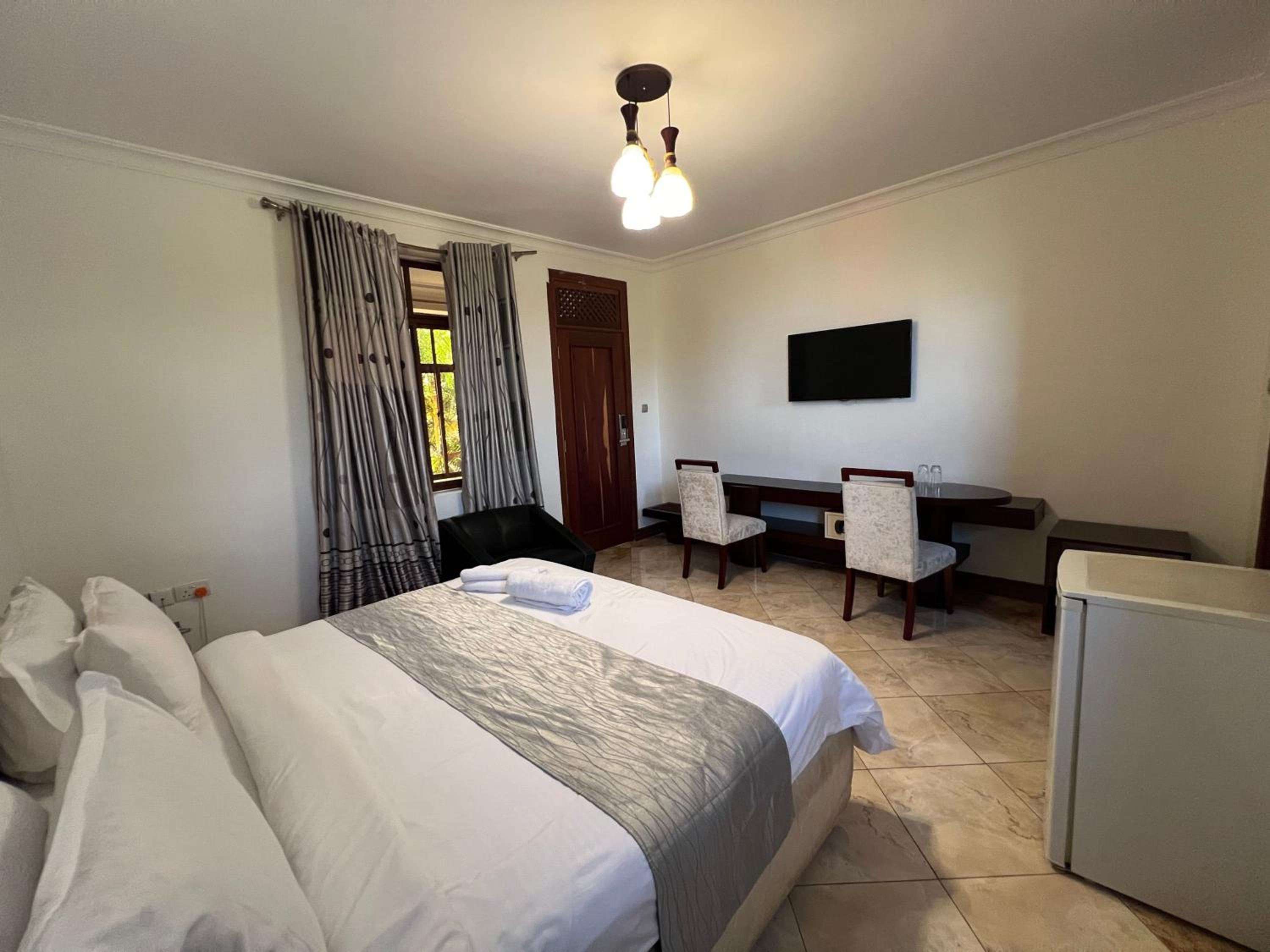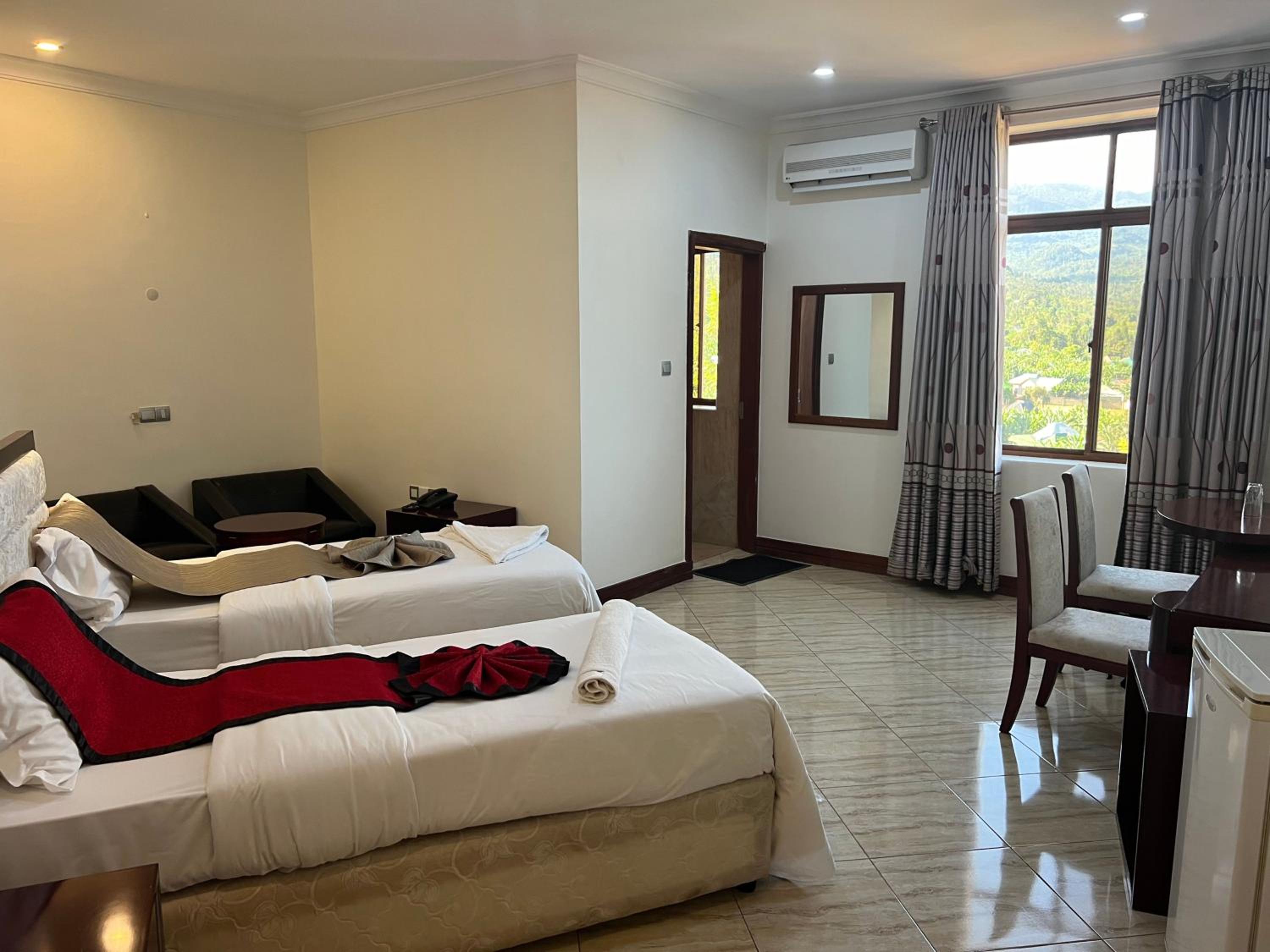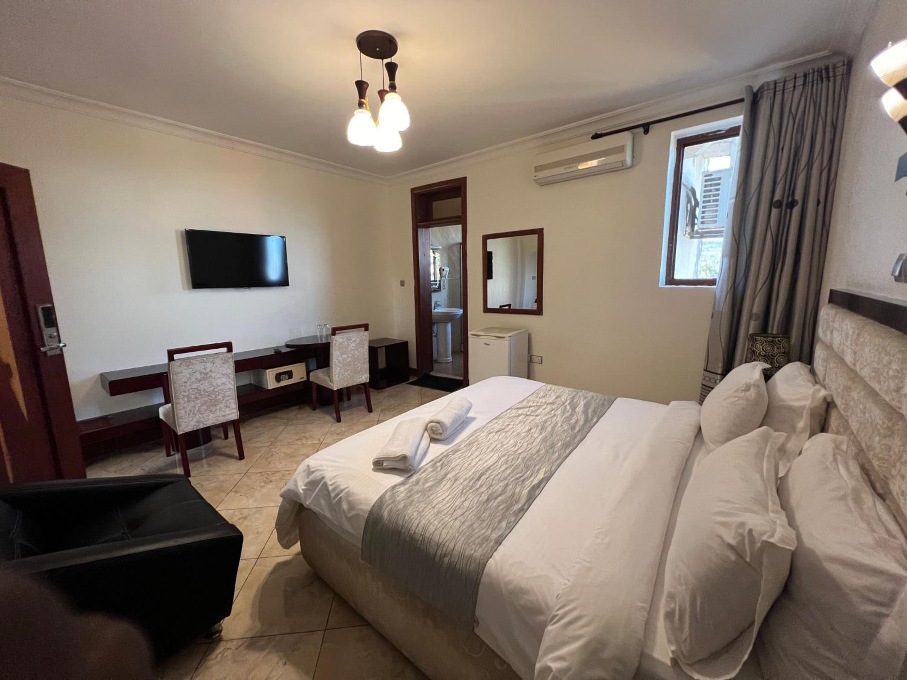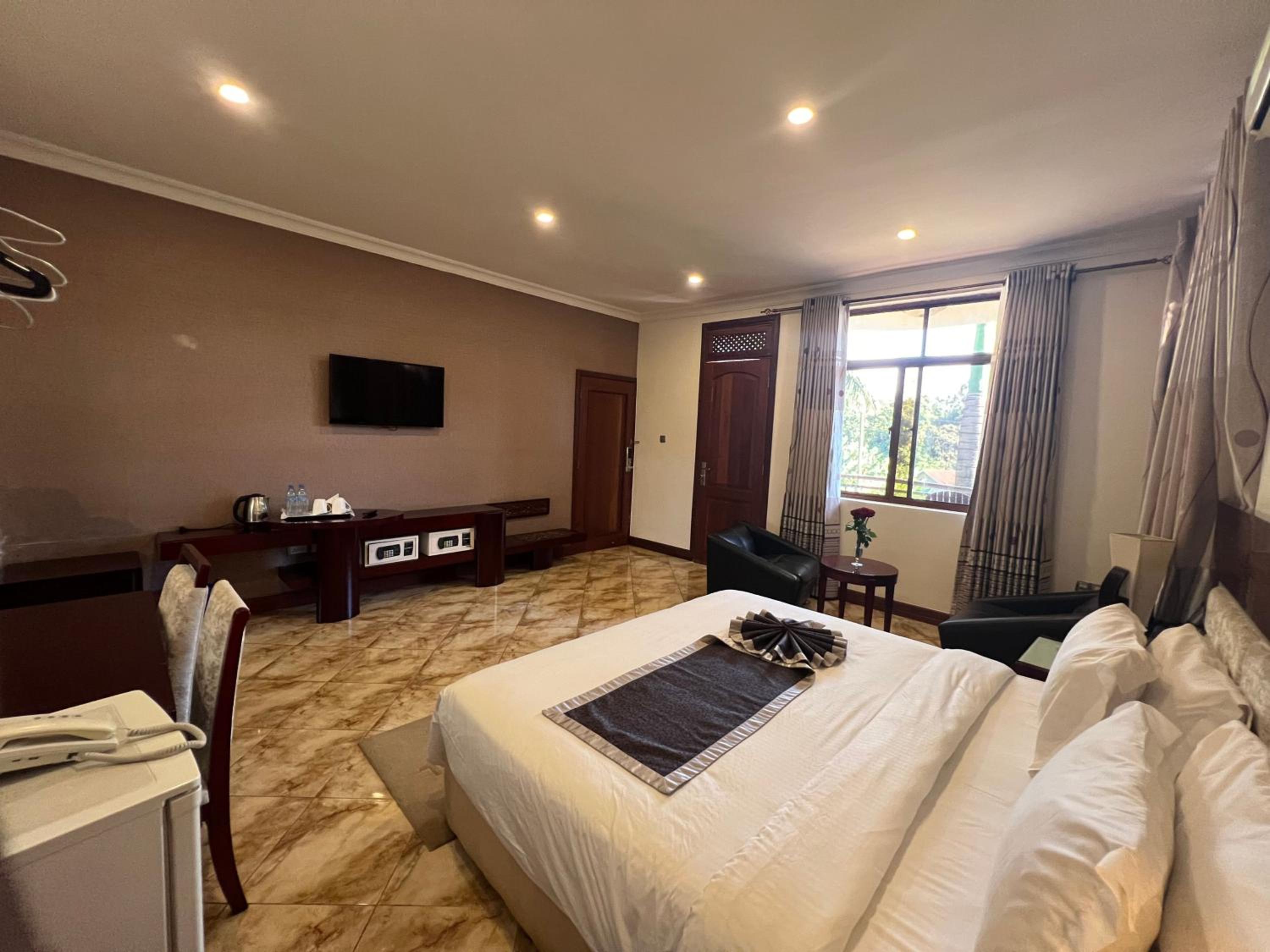 Nejobugg Palace Hotel in Nkoanrua offers a perfect blend of comfort and elegance. Each room provides a private balcony overlooking the city, ensuring a relaxing stay. The air-conditioned rooms are equipped with modern amenities, including a flat-screen TV and a fridge for added convenience.