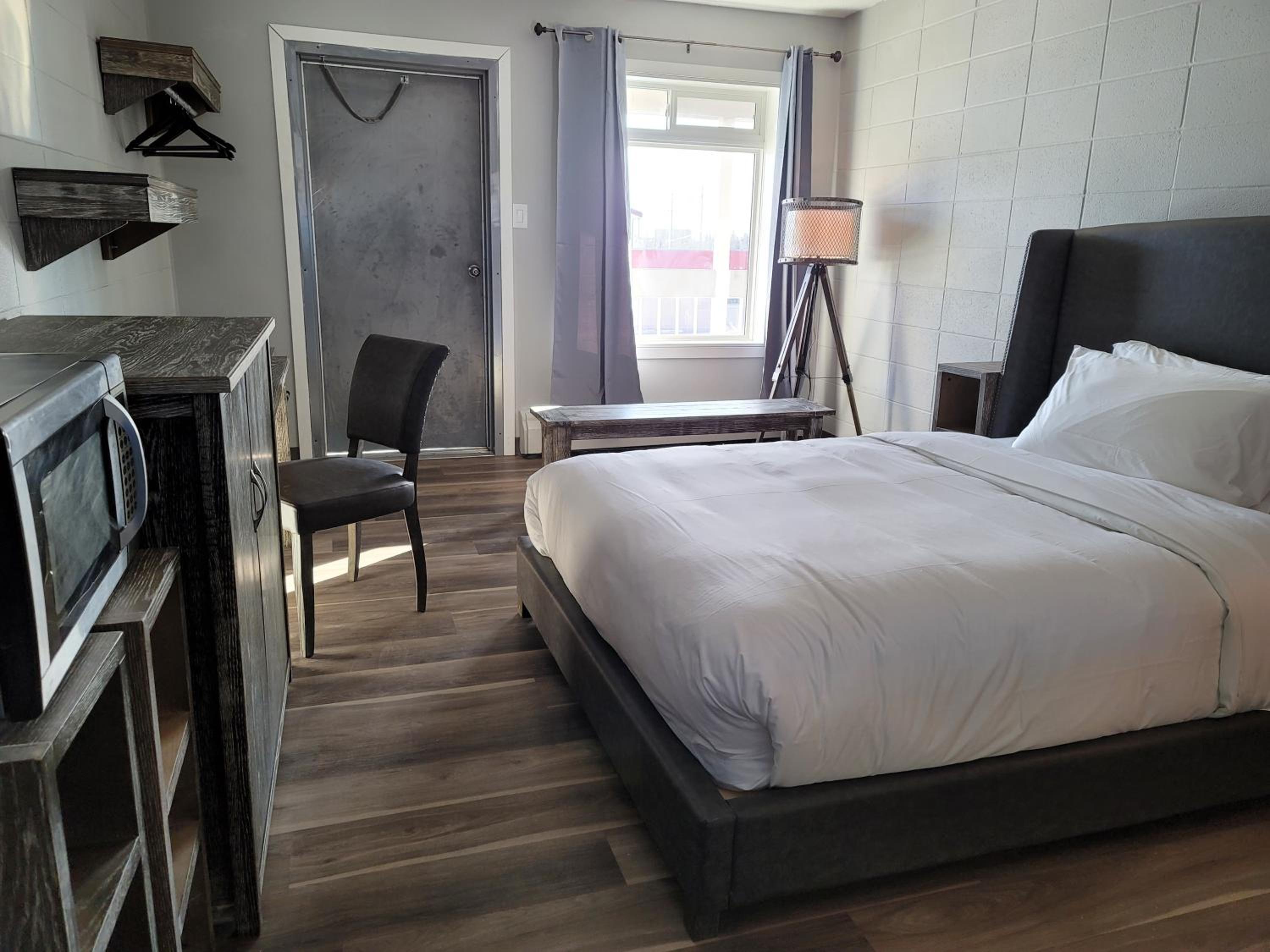 Experience a stay at the Parkside Inn in Grande Prairie, where comfort meets convenience. Each room is equipped with modern amenities such as air conditioning, a flat-screen TV, and a private terrace overlooking a lush garden.