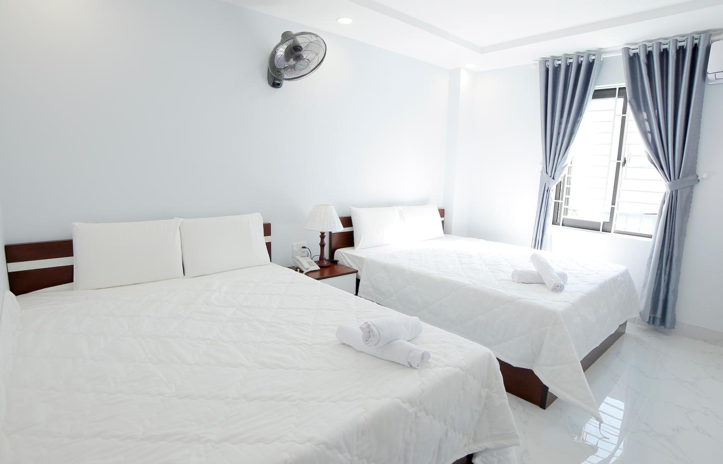 Premier location. A few meters from the wavy swimming beach, and in the heart of all that is fun in Quy Nhon. Half a block from Food street where you can get a dozen BBQ oysters for $4, and a bowl of steamed clams in broth for $2. A walk to the cultural Binh Dinh museum about Cham culure dating back 2,000 years, as well as what happened during the Vietnam war fought right there in town and on the beach. You can rent a motor bike there and explore the country side and ruins. Just a short walk from the airport shuttle, and a clean, nice place with a great staff.