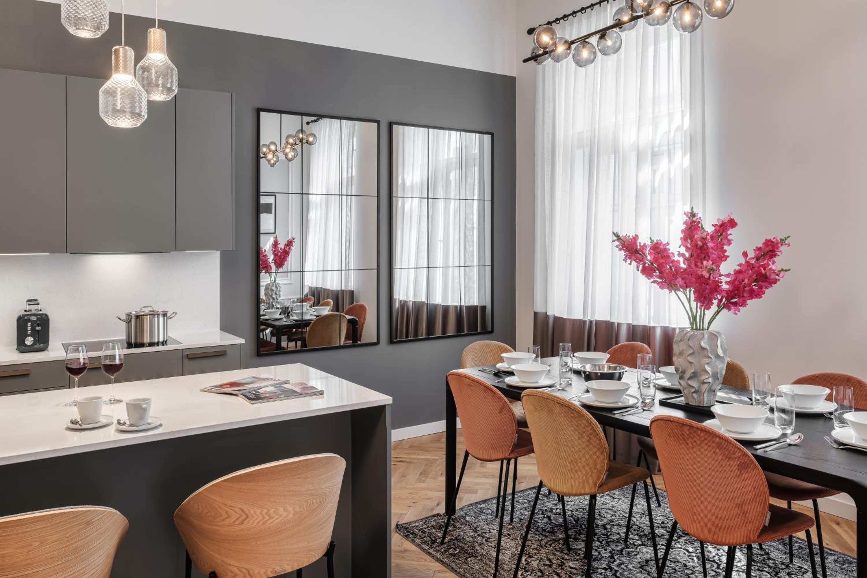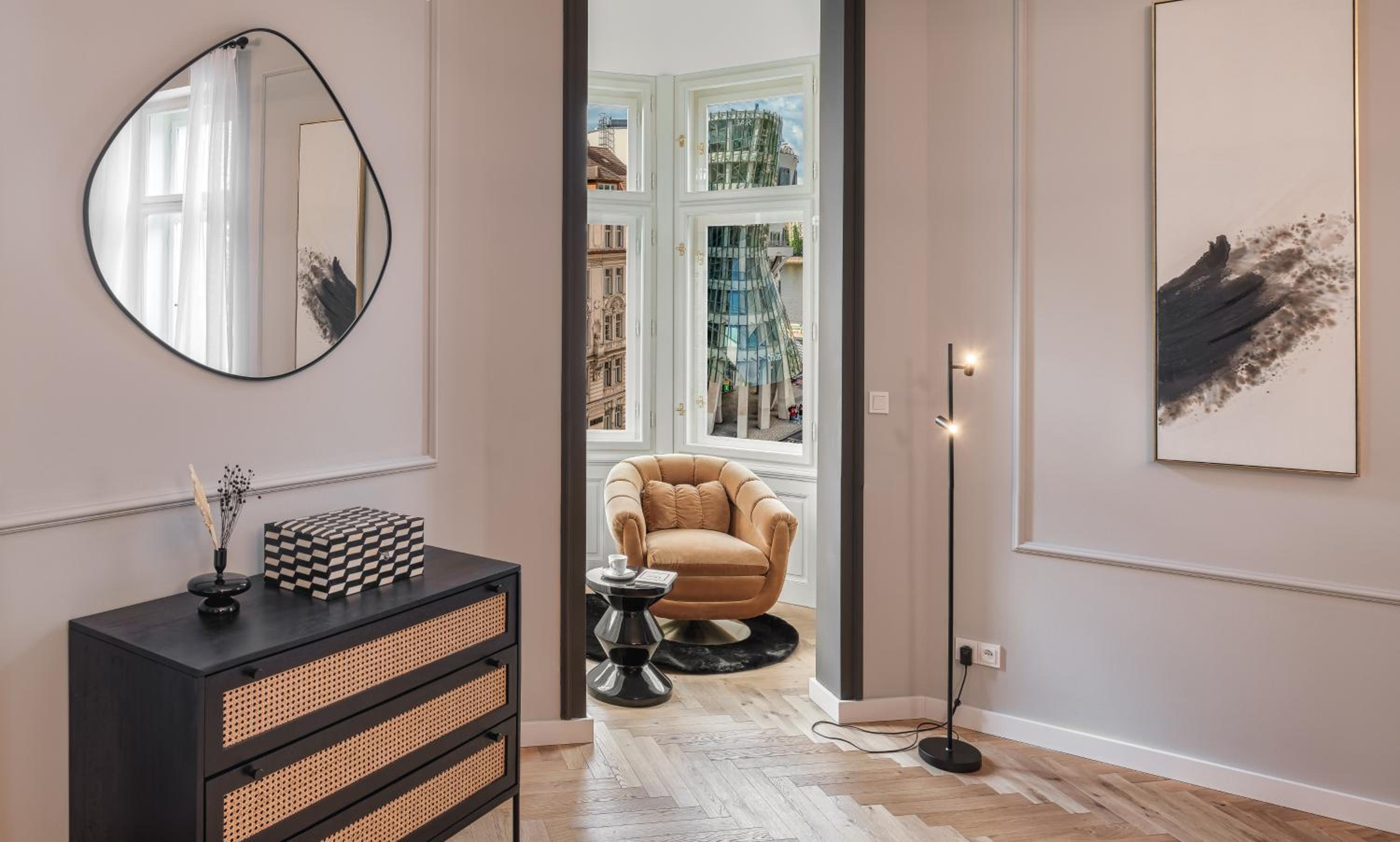 Embrace the picturesque river views from the 5-star River Dance Suites by Adrez, located near iconic Prague attractions like Charles Bridge and Prague Astronomical Clock.