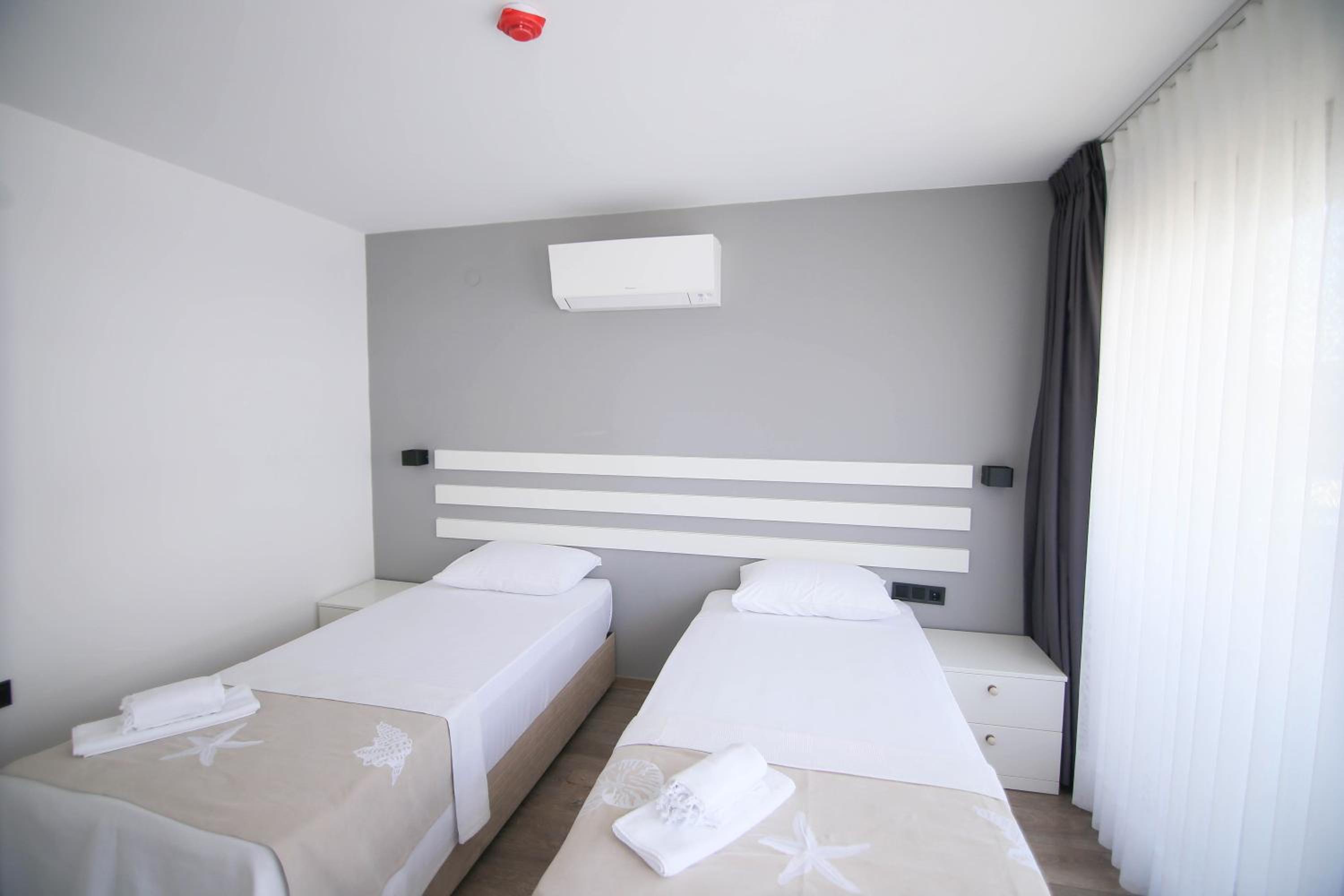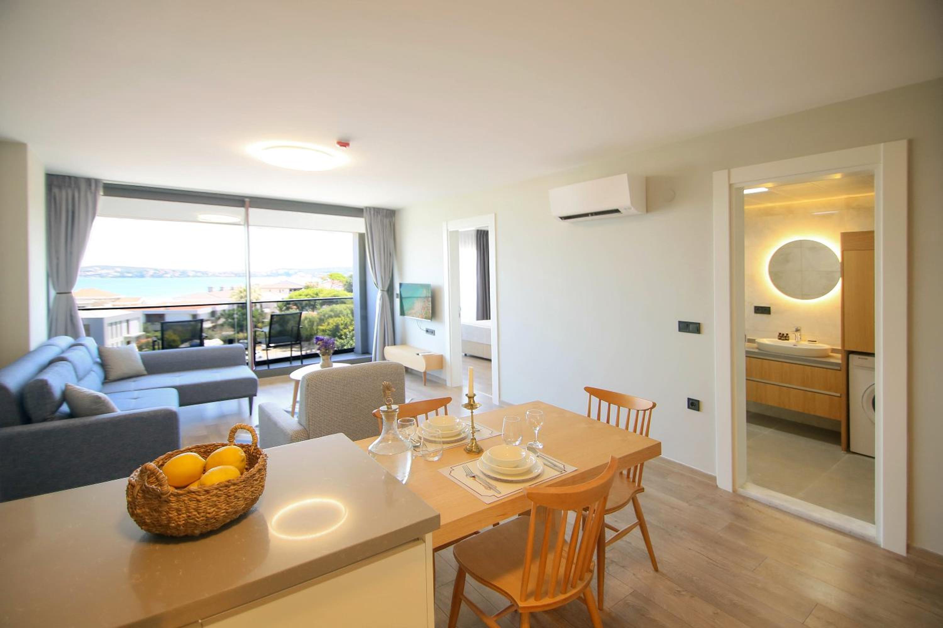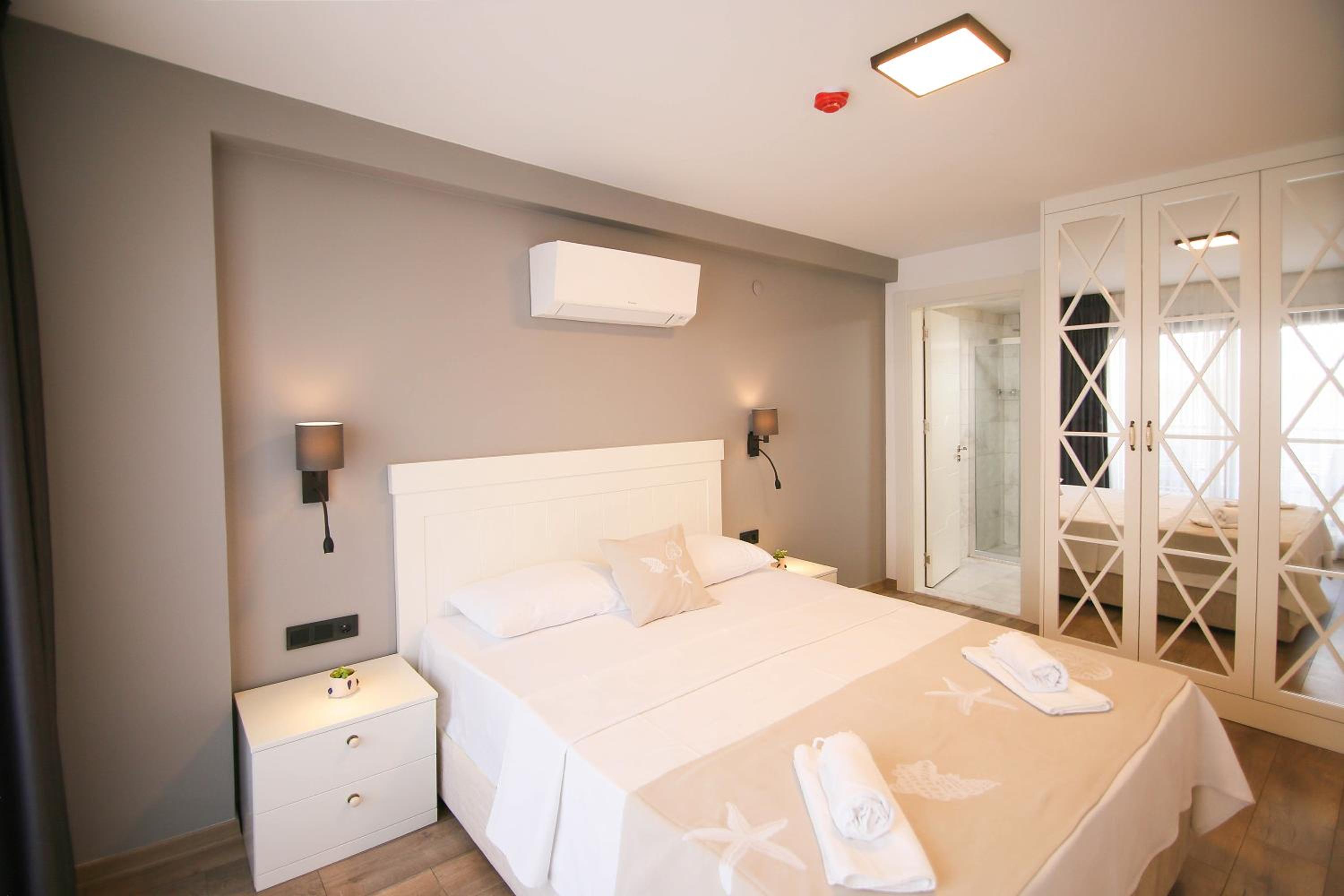 The Krem Marin Otel offers air-conditioned guest rooms with a fully equipped kitchen, flat-screen TV, and comfortable seating area. The units also feature a private bathroom with complimentary WiFi, ensuring a relaxing stay for all guests.