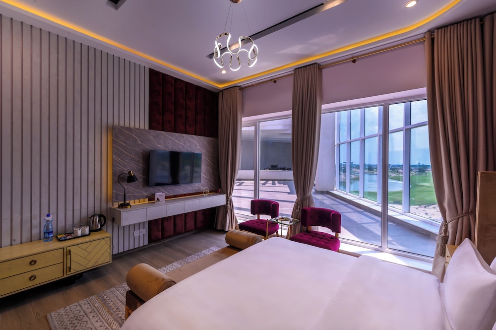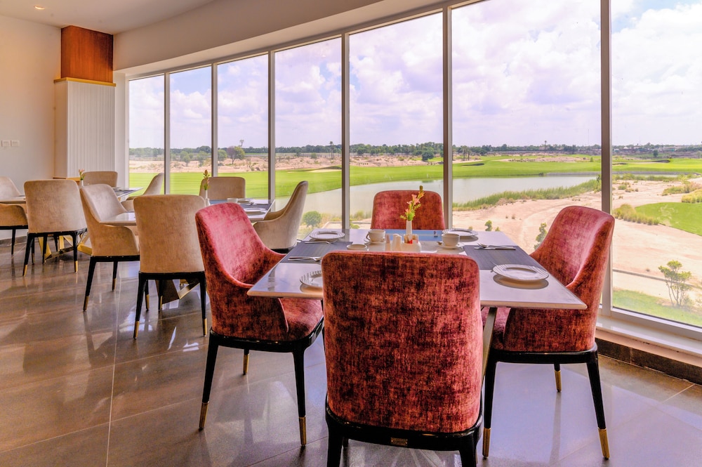 This hotel is located in a Golf and Country Club. It opened less than a year ago. All the amenities are world-class. The room was modern and spacious. The hotel is very quiet, and there are two excellent dining choices.