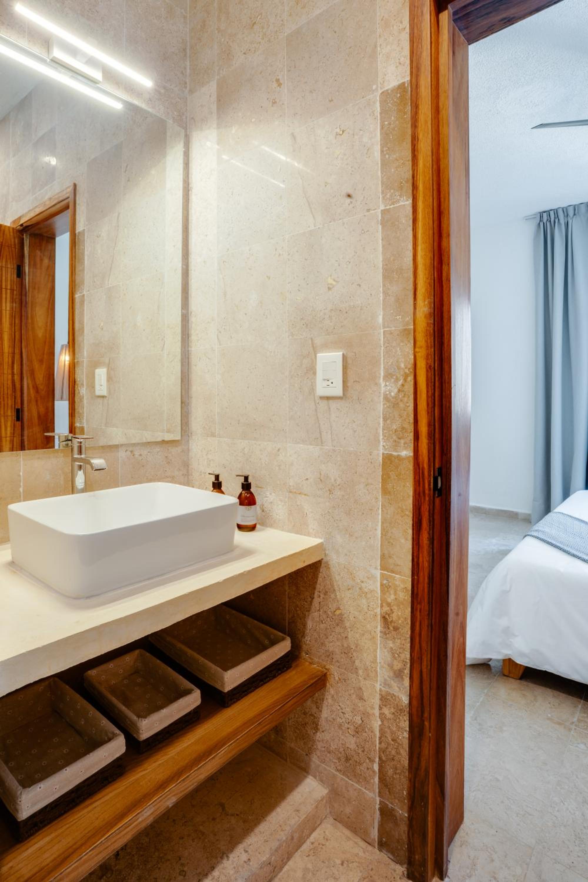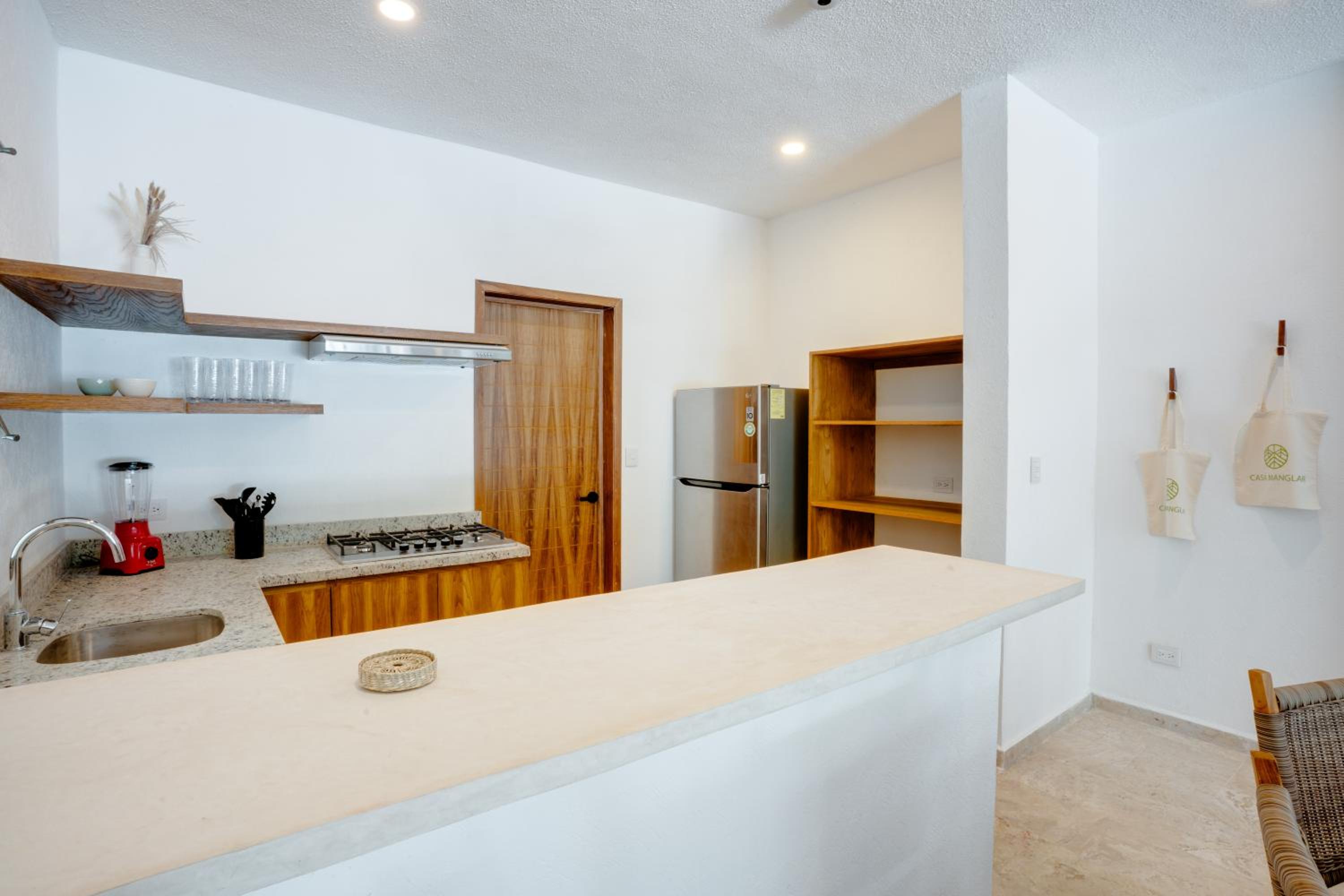 Casa Manglar Riviera Maya offers air-conditioned units with modern amenities like a kitchen, flat-screen TV, and private bathroom. Some units also feature a balcony with pool views, providing guests with a relaxing and comfortable stay.