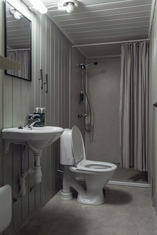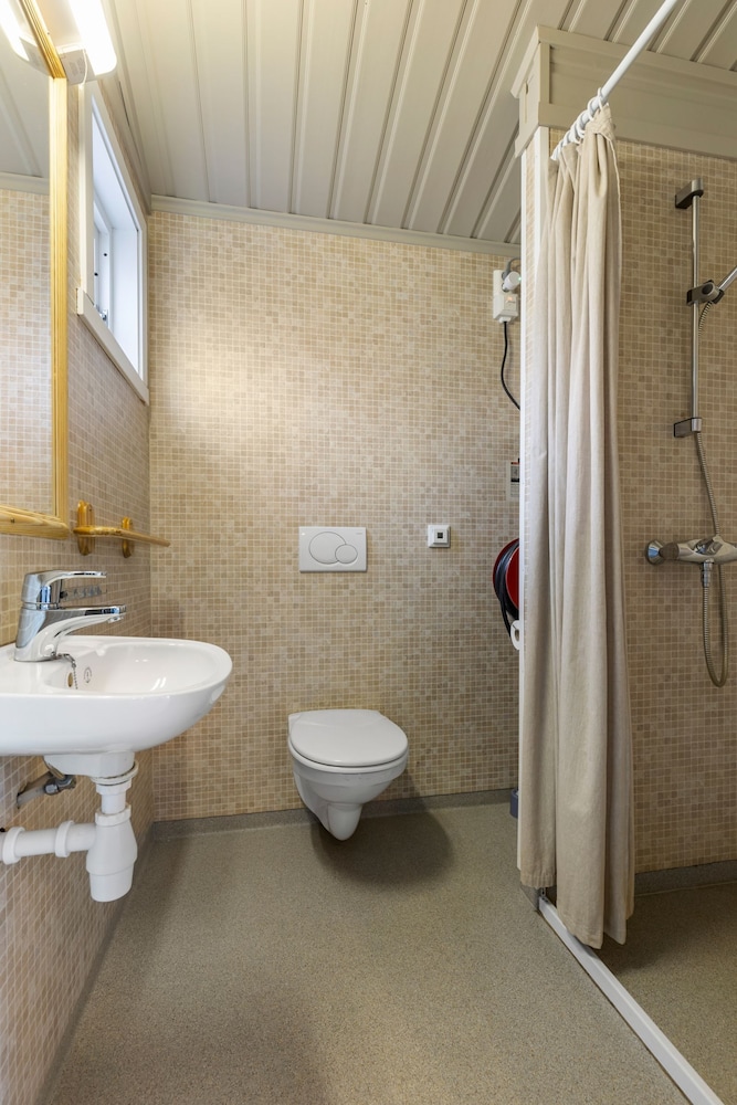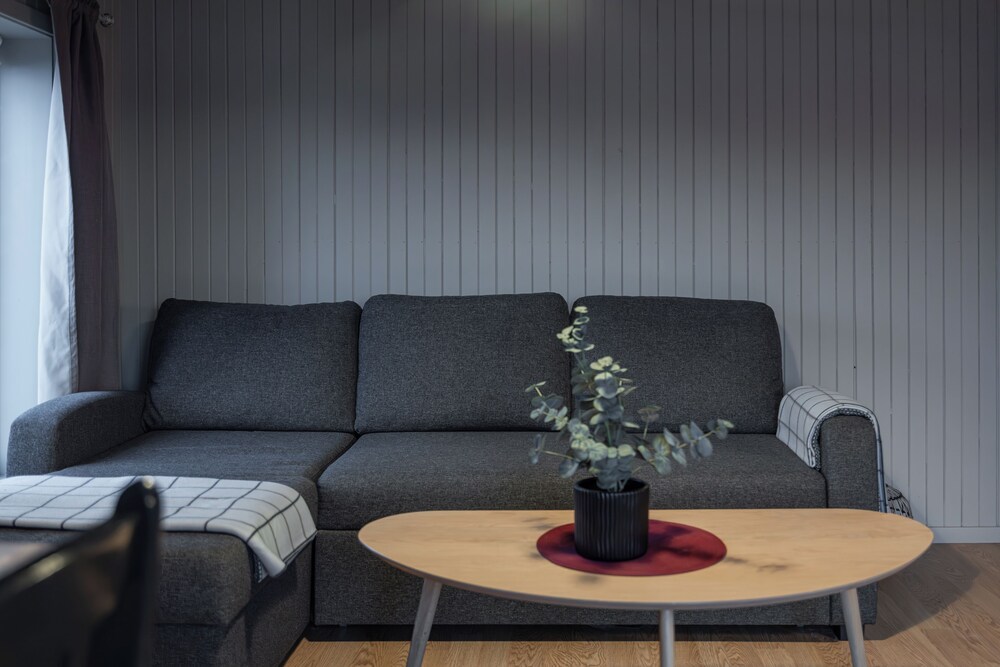 Norges beste camping-hytter! Vi hadde en leilighet med balkong som hang utover havet med nyyydelig utsikt! Alt var rent og pent, godt utstyrt med dyner, sengetøy, kjøkkenutstyr og god såpe og shampoo. Fleksibel innsjekk med kode. Beste campingen jeg har overnatta på, og helt greie priser for overnatting.