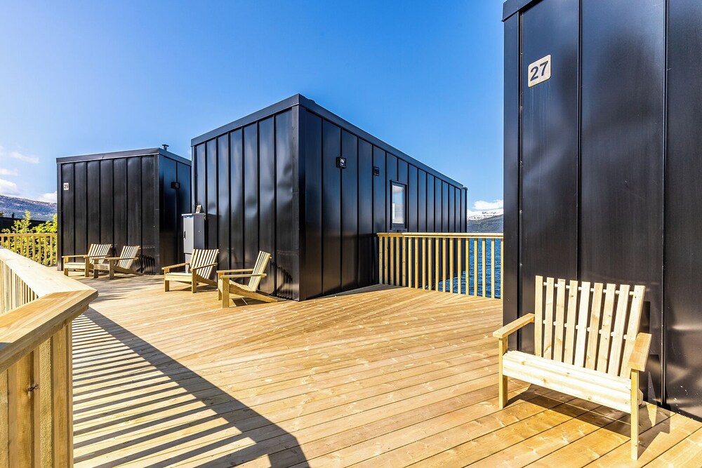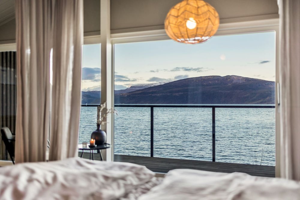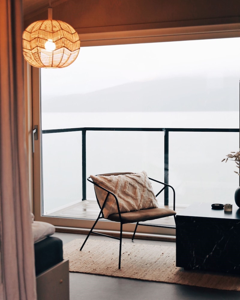 Fantastiskt fint och speciellt boende med utsikt ut över fjorden. Stugan ligger ända ut mot vattnet och har en fin balkong. Är vädret fint sitter man och njuter. Kan verkligen rekommendera.