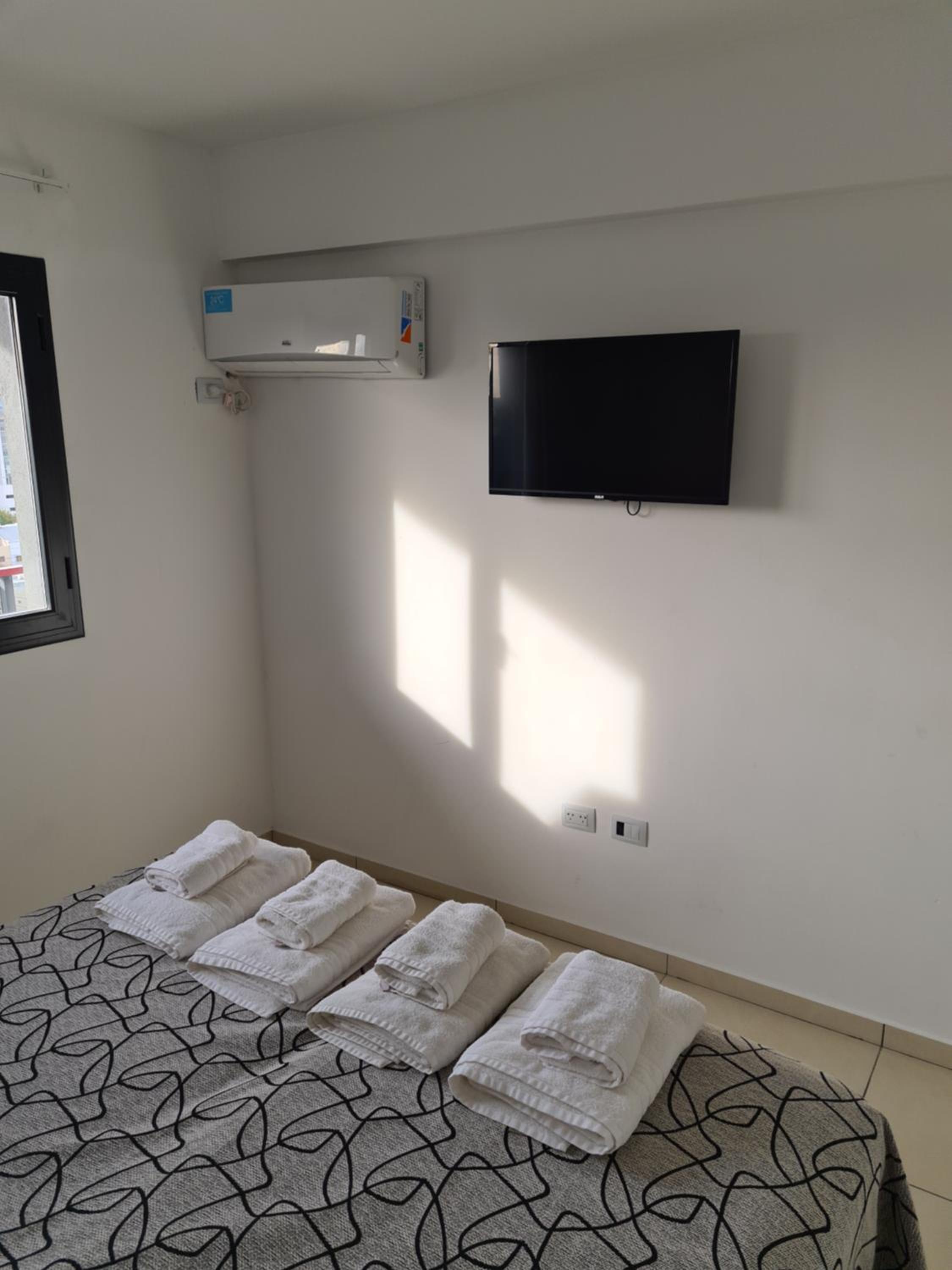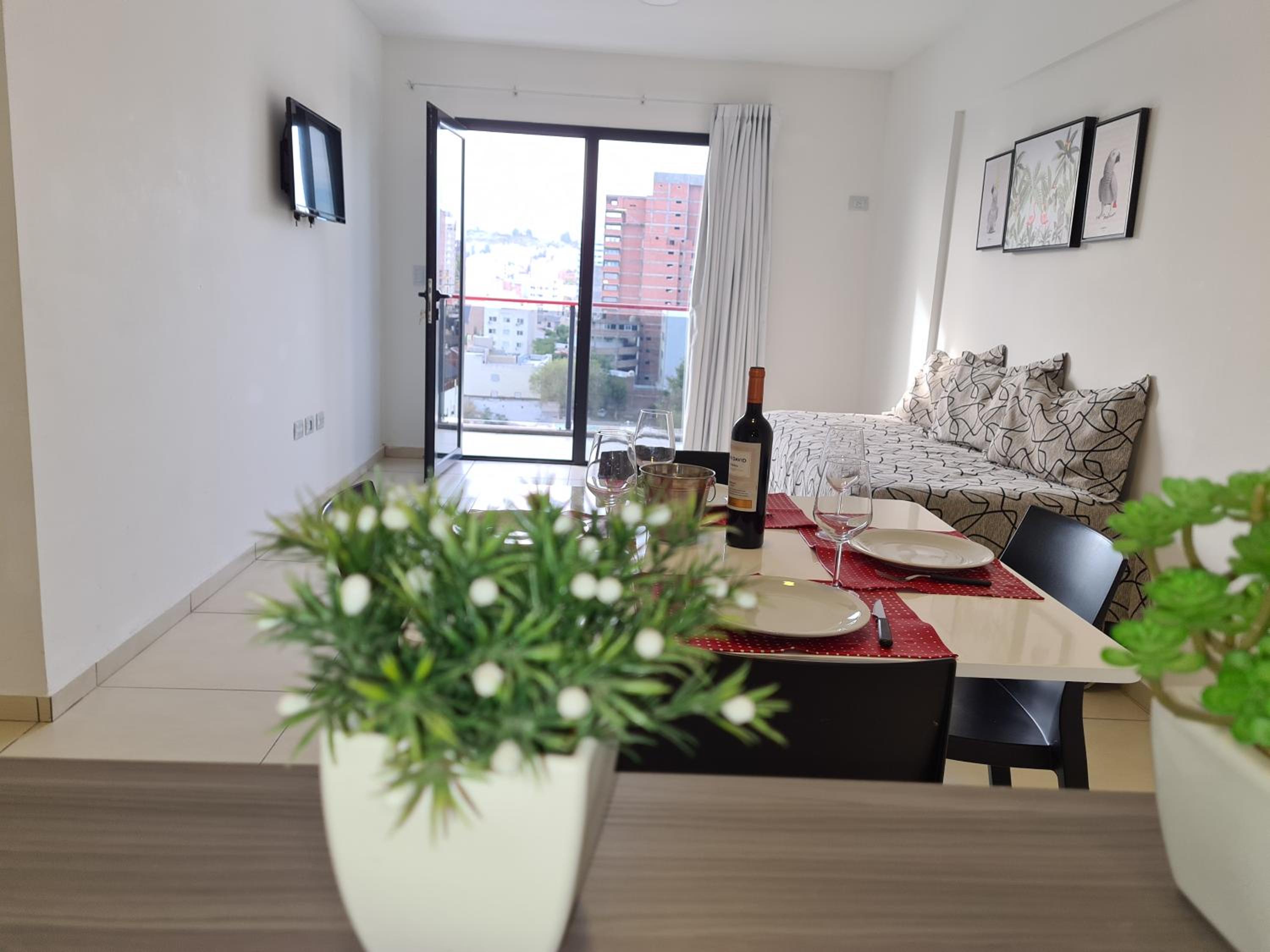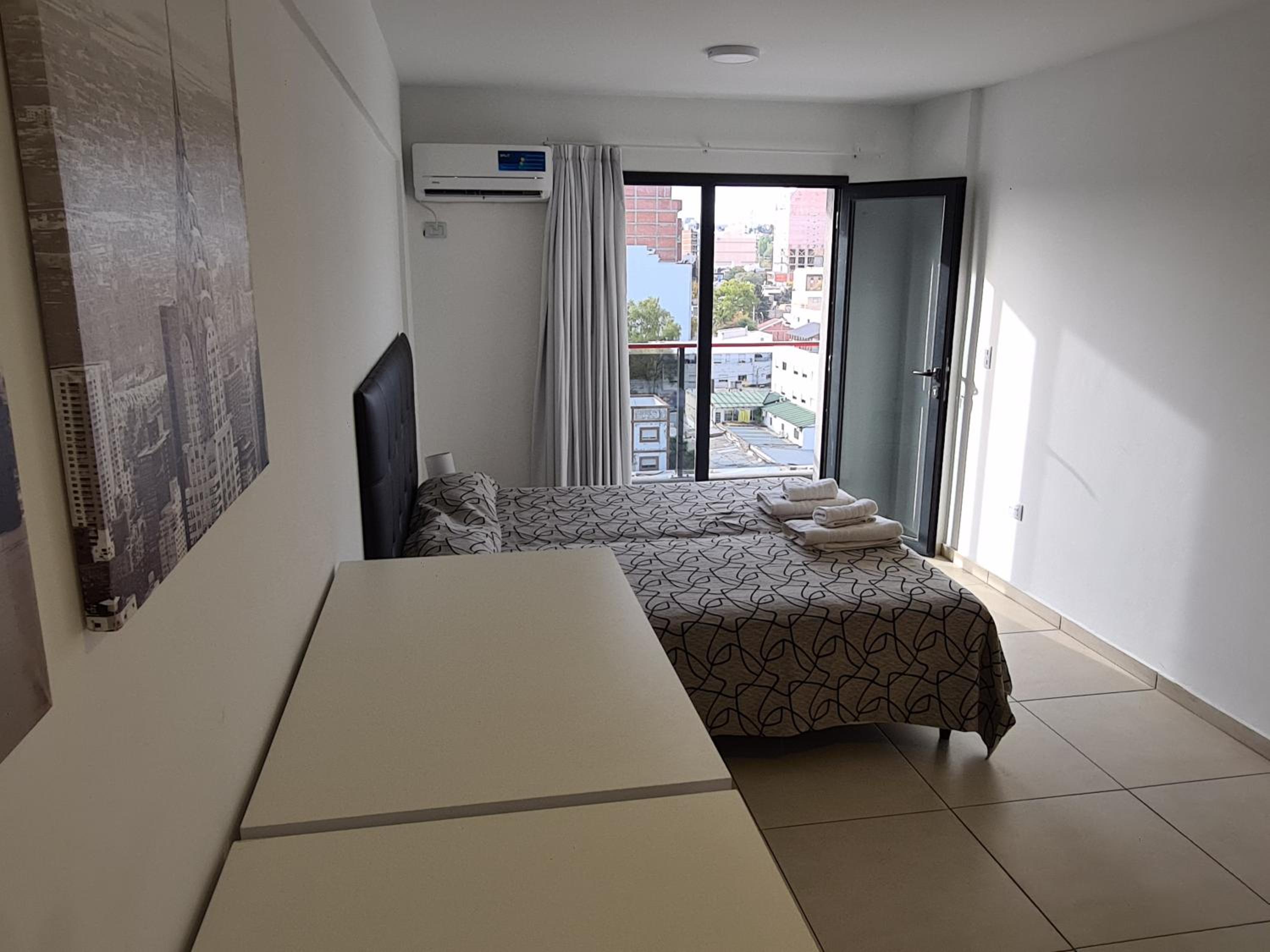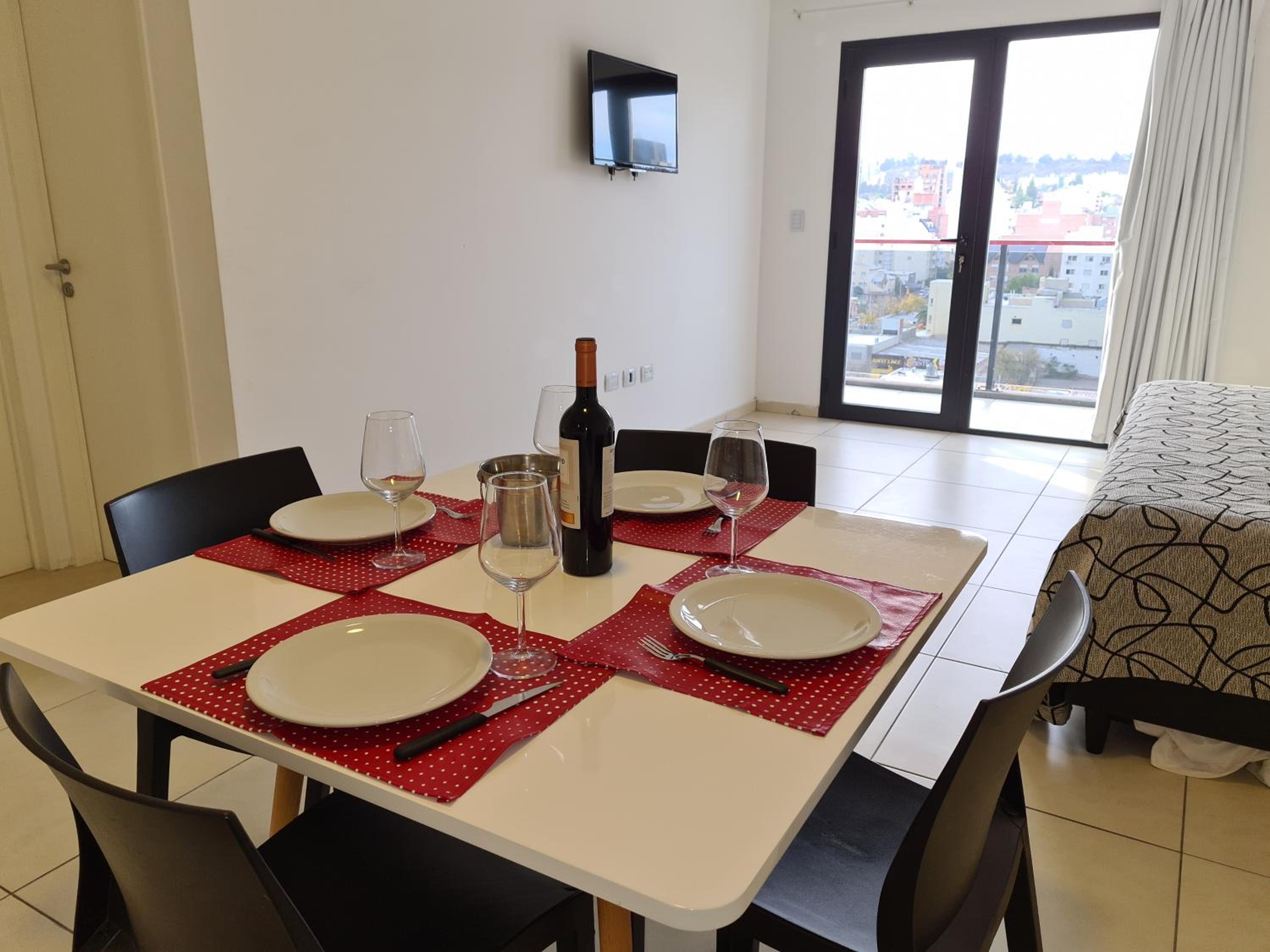 No contábamos con alojamiento en Neuquén para pasar la noche, y pudimos reservar aquí a último momento. Nos recibieron muy bien (el lugar es un edificio con departamentos para alquilar, y en la recepción había siempre un encargado). Nos indicaron dónde estacionar nuestro vehículo porque el garaje que tenían ya estaba lleno. El departamento contaba con cocina, vajilla, cubiertos, té y café. Había toallas, y el baño estaba bien. Las camas eran cómodas, TV y aire acondicionado en la habitación y TV en el comedor, pero sin aire acondicionado ahí. Como la noche estaba fresca, abrimos la puerta del balcón y fue suficiente.
