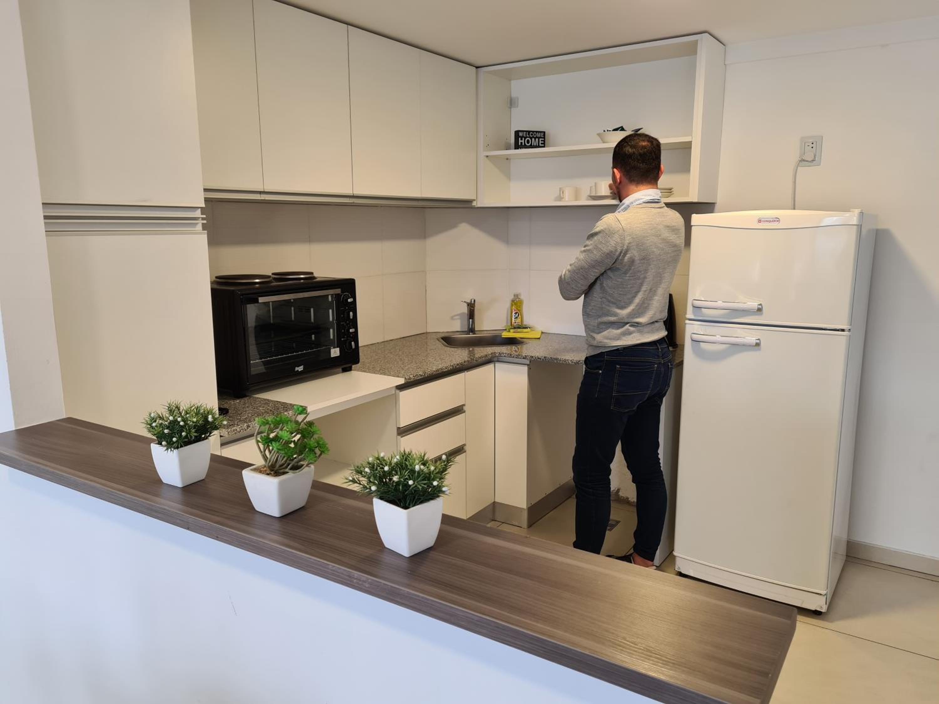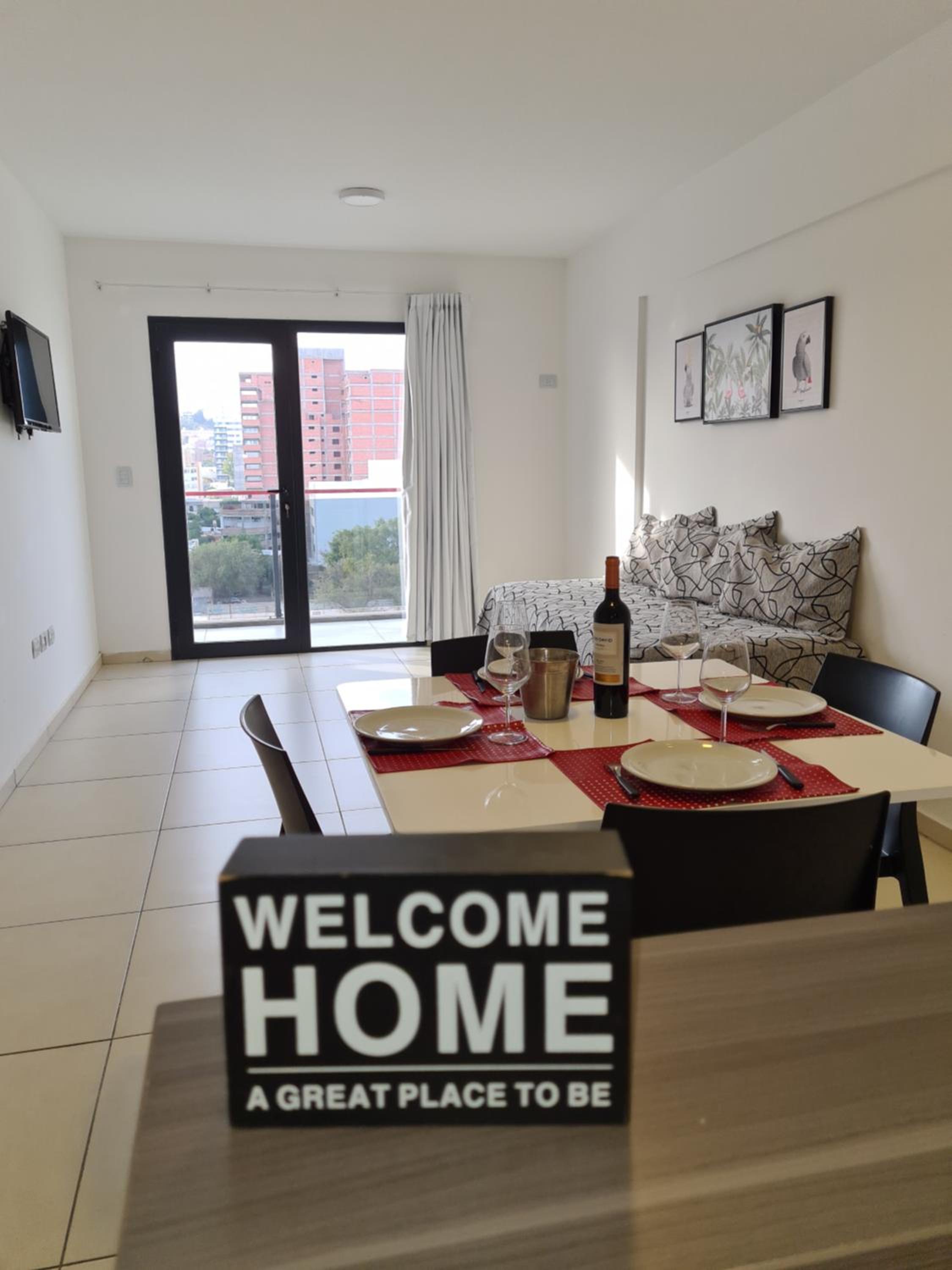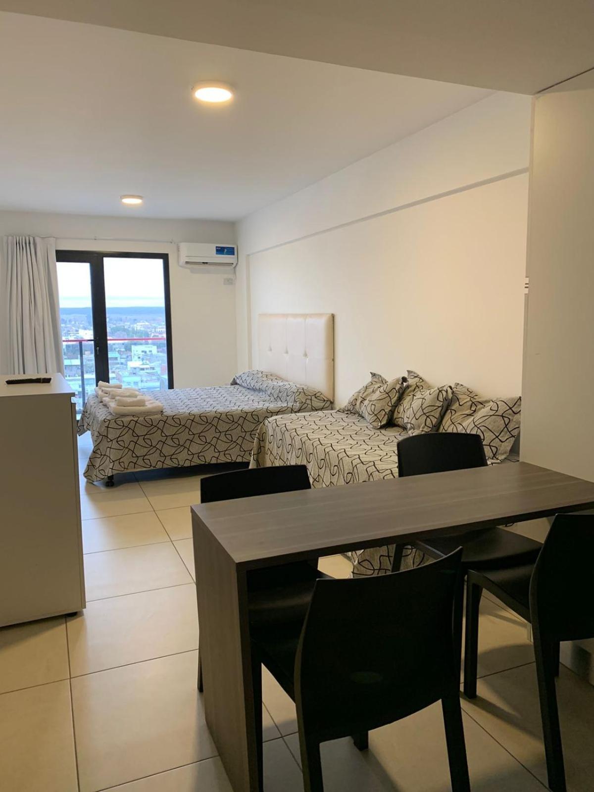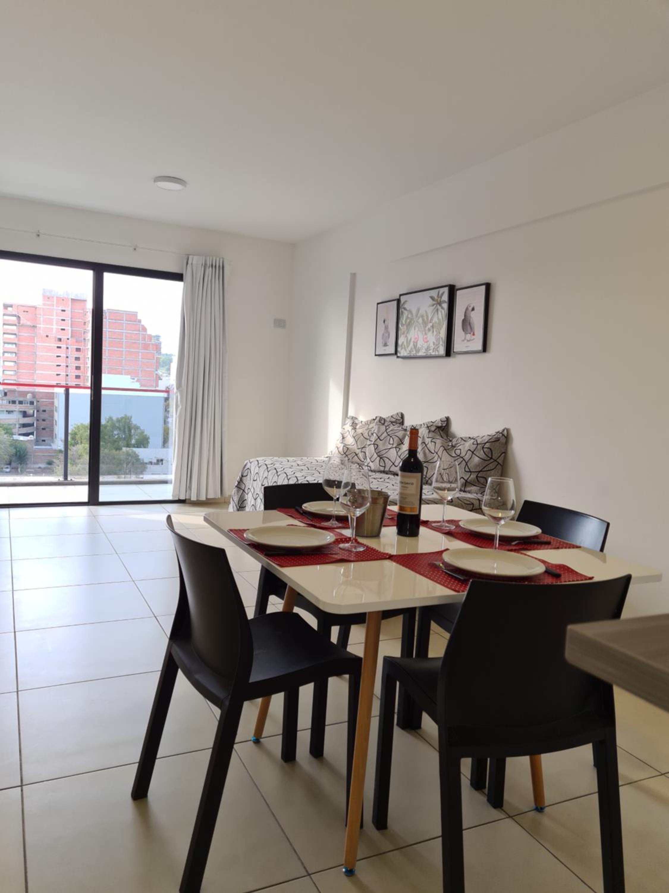 No contábamos con alojamiento en Neuquén para pasar la noche, y pudimos reservar aquí a último momento. Nos recibieron muy bien (el lugar es un edificio con departamentos para alquilar, y en la recepción había siempre un encargado). Nos indicaron dónde estacionar nuestro vehículo porque el garaje que tenían ya estaba lleno. El departamento contaba con cocina, vajilla, cubiertos, té y café. Había toallas, y el baño estaba bien. Las camas eran cómodas, TV y aire acondicionado en la habitación y TV en el comedor, pero sin aire acondicionado ahí. Como la noche estaba fresca, abrimos la puerta del balcón y fue suficiente.