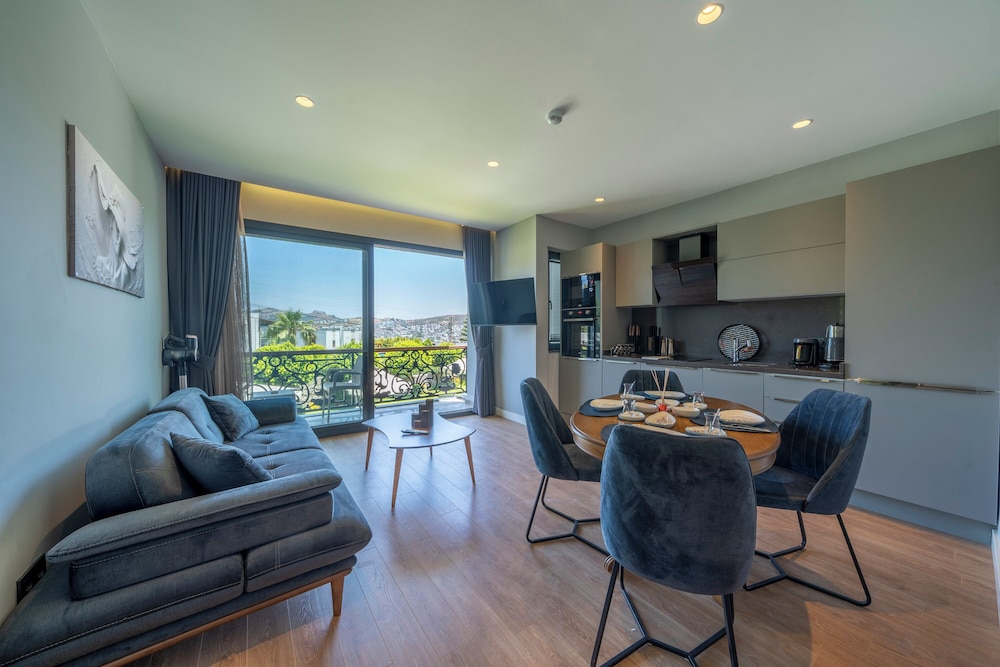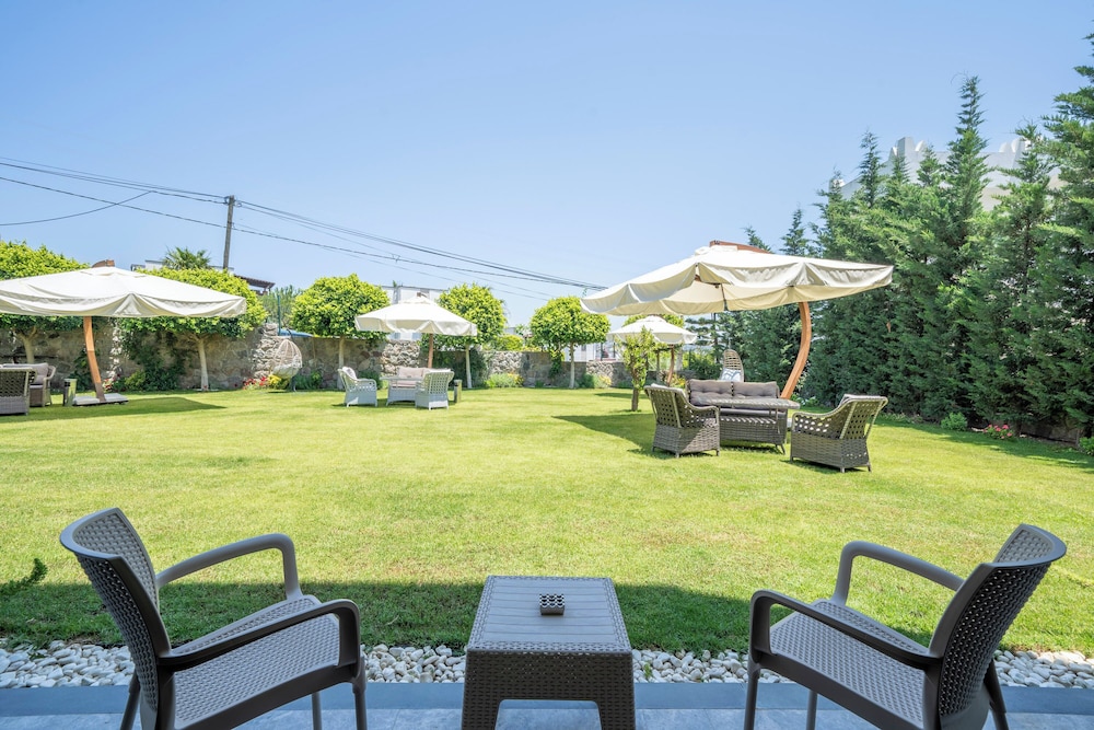 Unwind by the seasonal outdoor pool or soak in the beautiful garden views during your stay at Gündoğan Suites.