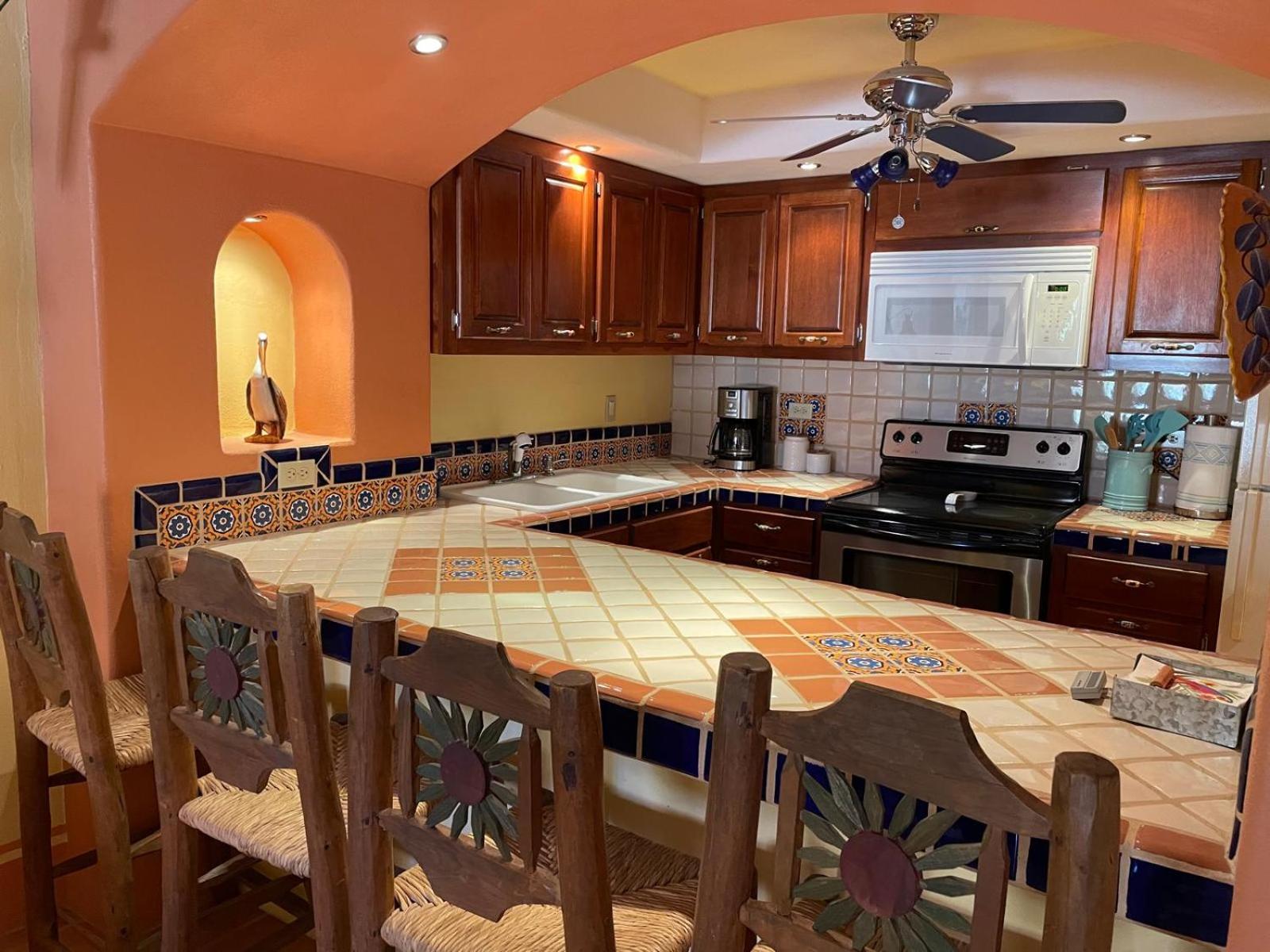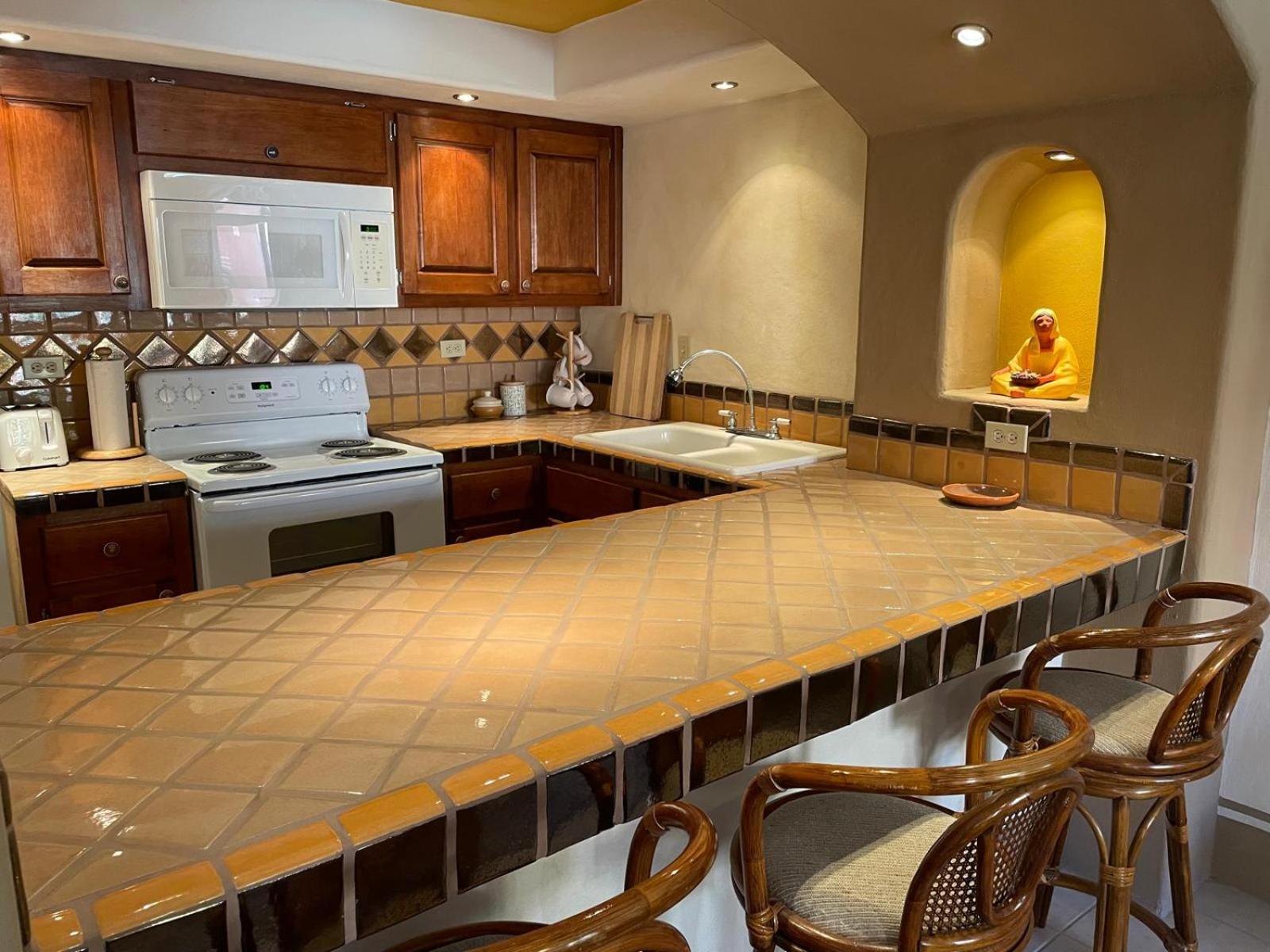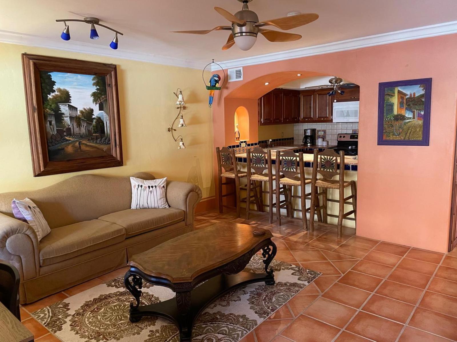 I enjoyed the high ceilings and Mexican flair. The plumbing for the bath needs repair. The water trickles out. Strange entrance/exit procedures. Too noisy especially at night. The smells are sick and overwhelming at times. It was advertised on beach front....I saw no beach...Refund requested...