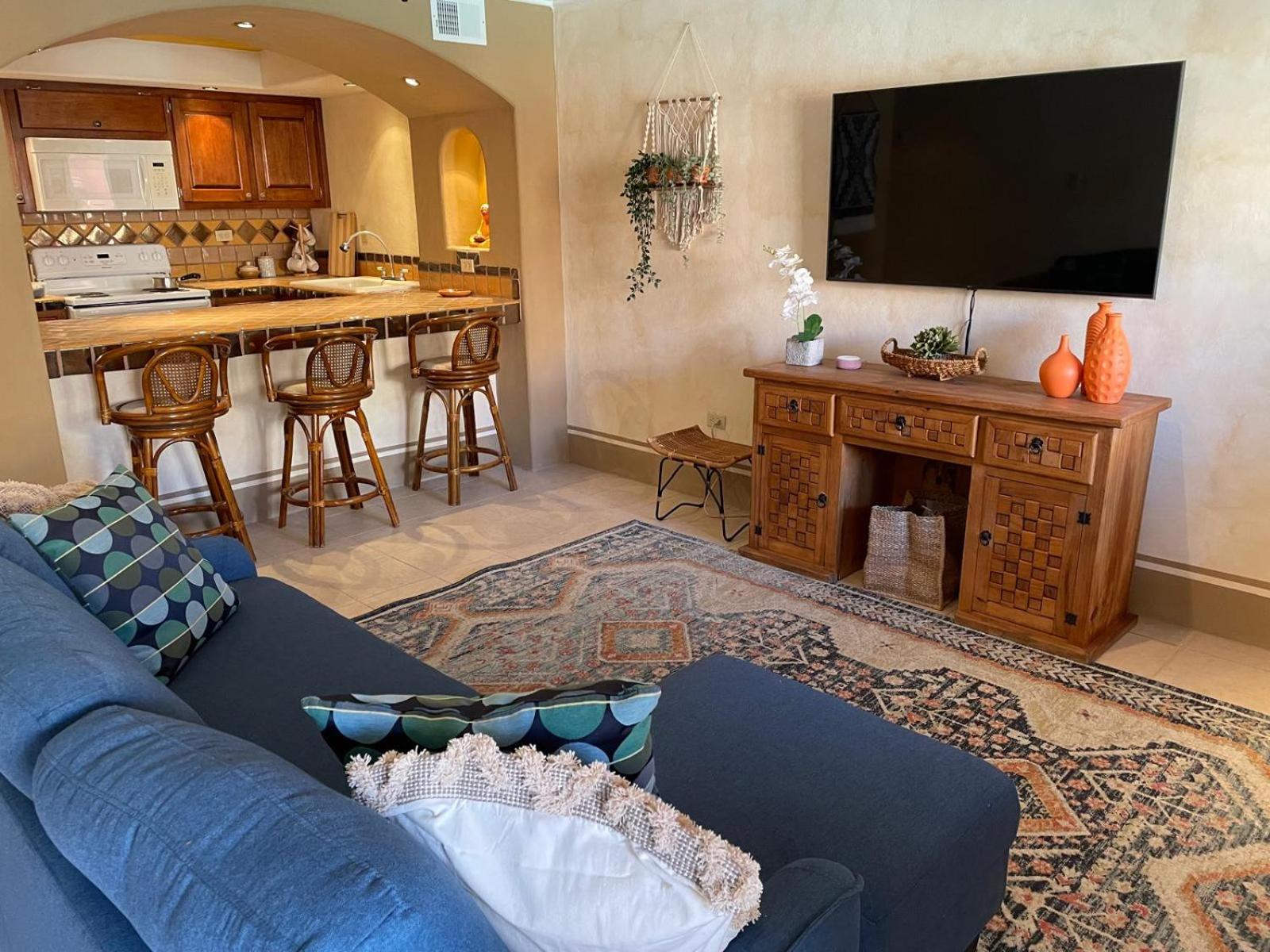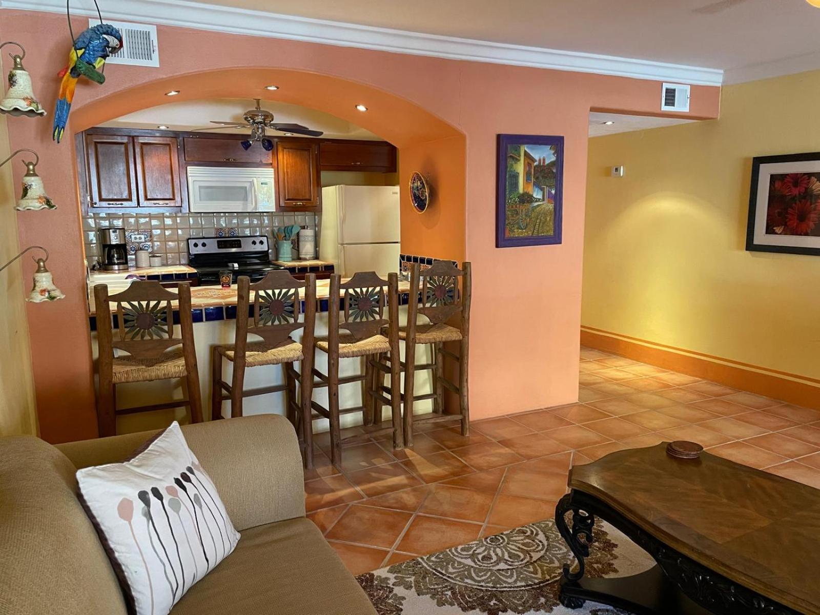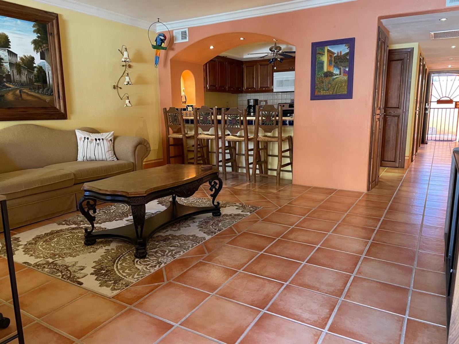The condo size was bigger than anticipated. It’s advertised as a studio but it does have a bedroom, hallway, bathroom, full kitchen and large family room. The decor inside and outside the condo was inviting.
