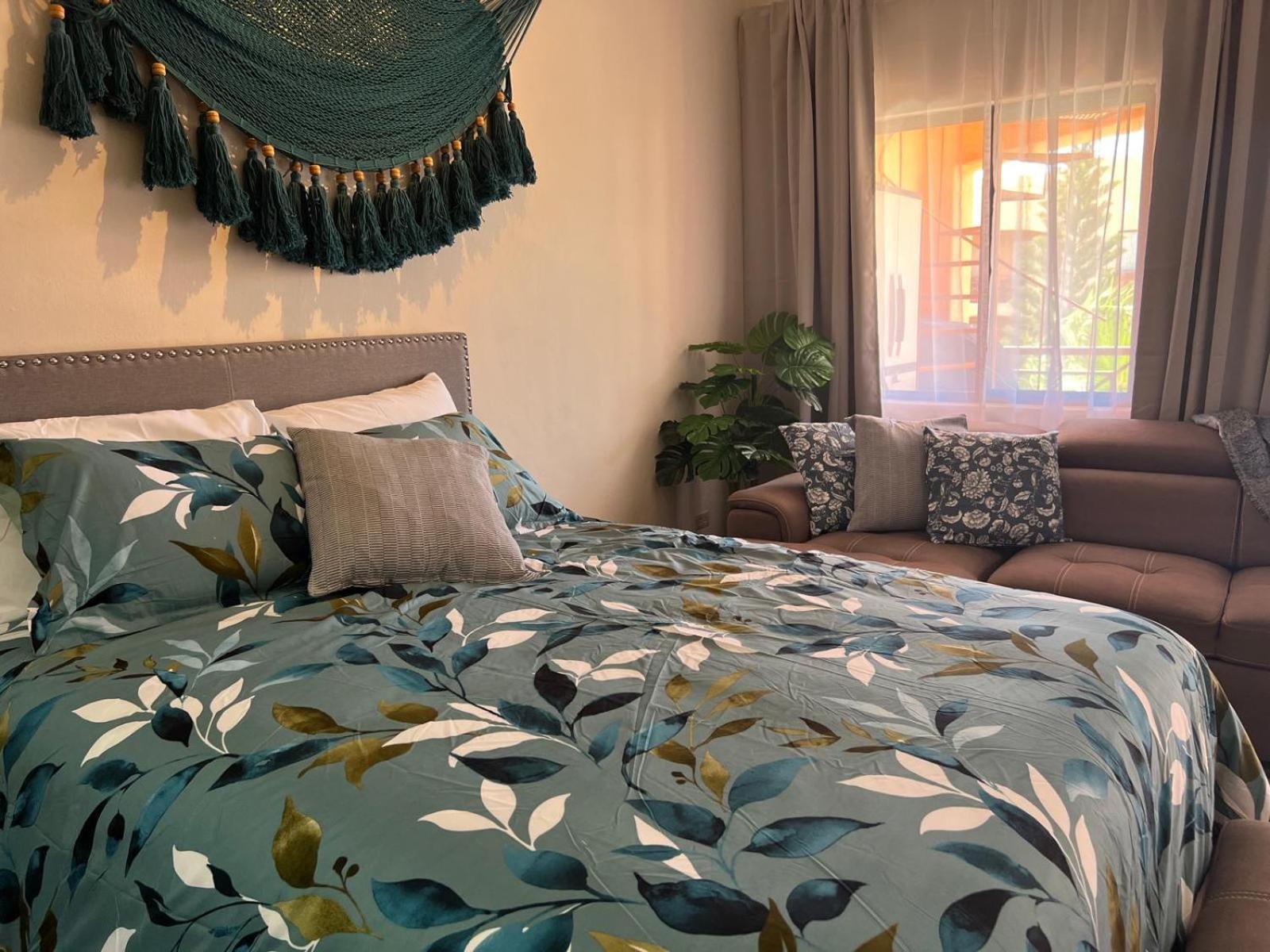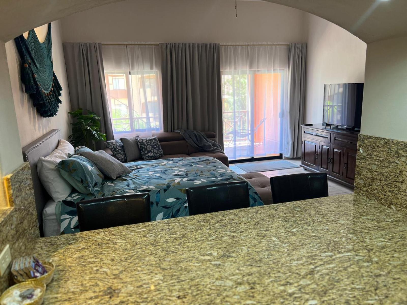 great place to stay. enough space for 4 people. Room is clean, property is clean. the pool is great. the property is gated and secure. close to Al Capone's restaurant (awesome) and Oxxo for snacks/drinks. beach bar 5 minute walk. Could use a TV in the bedroom, and more towels for the bathroom.