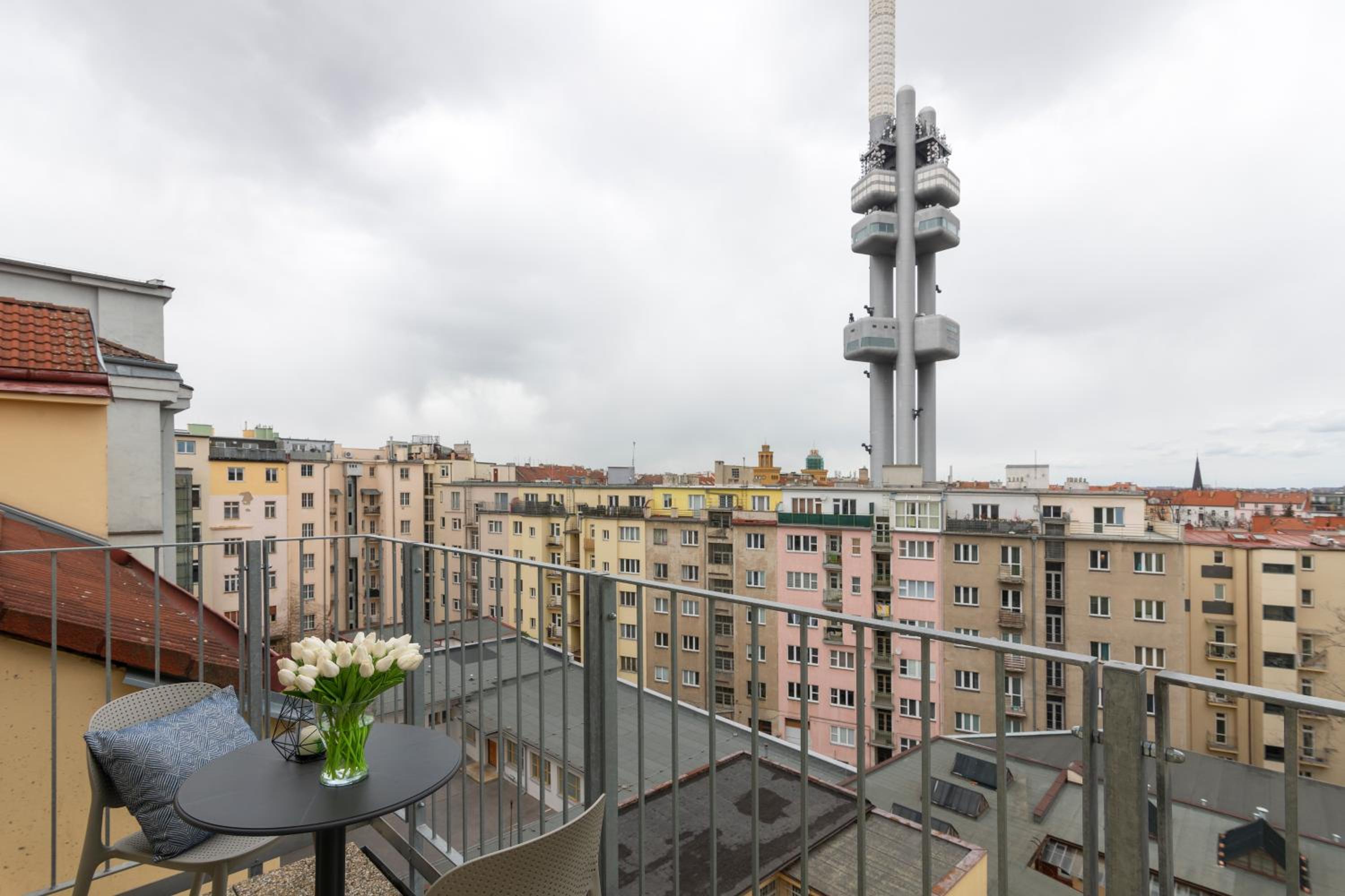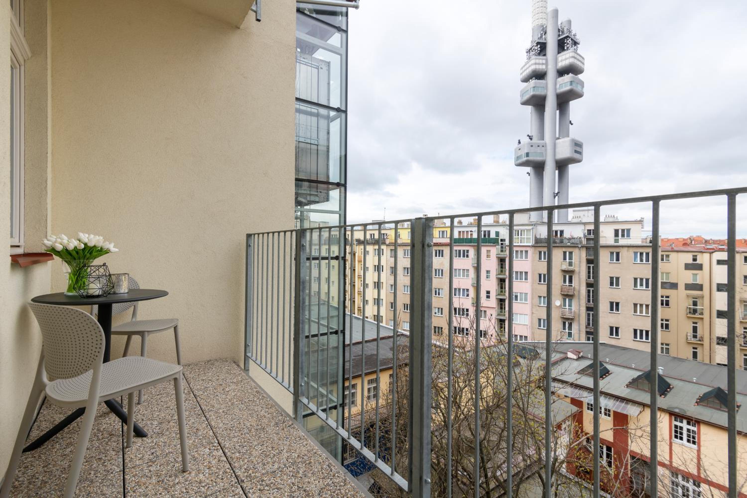 Понравилось местоположение, рядом башня, на высоте 93 м можно сделать обзор Праги, очень красиво. В аппартаментах все новое, очень чисто, есть все необходимое, постельное белье очень белое, приятно спать.