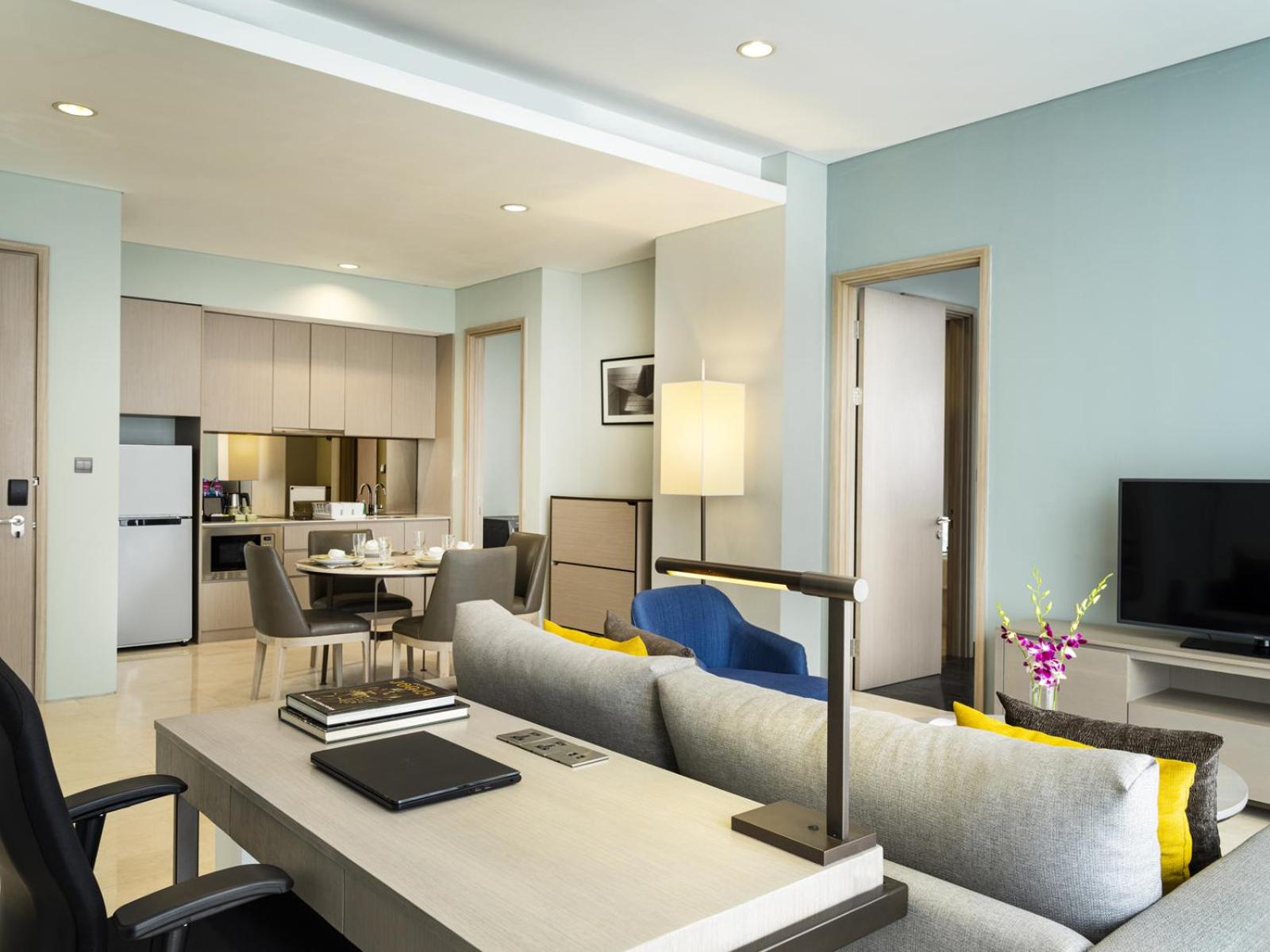 Minus: at the time there was several electricity/elevator problem so we could not go up and down the elevator, or we need to be picked up by staff to use service elevator. Also it’s better if there are unlimited drink water since it’s quite crucial (to cook as well). It could also be quite confusing to find which building the residence by lorin is in Mangkuluhur complex, we kept dealing with lost taxis.