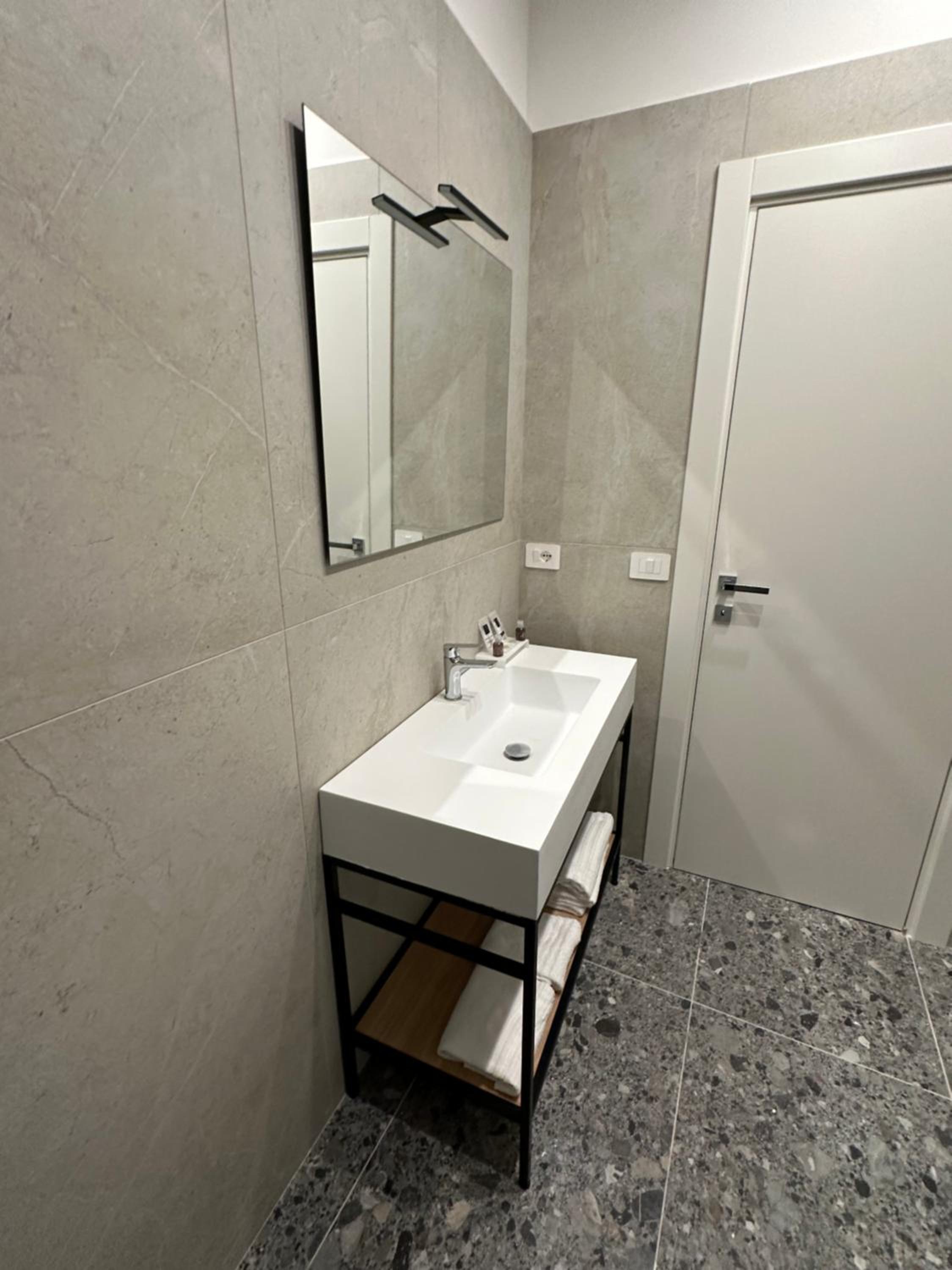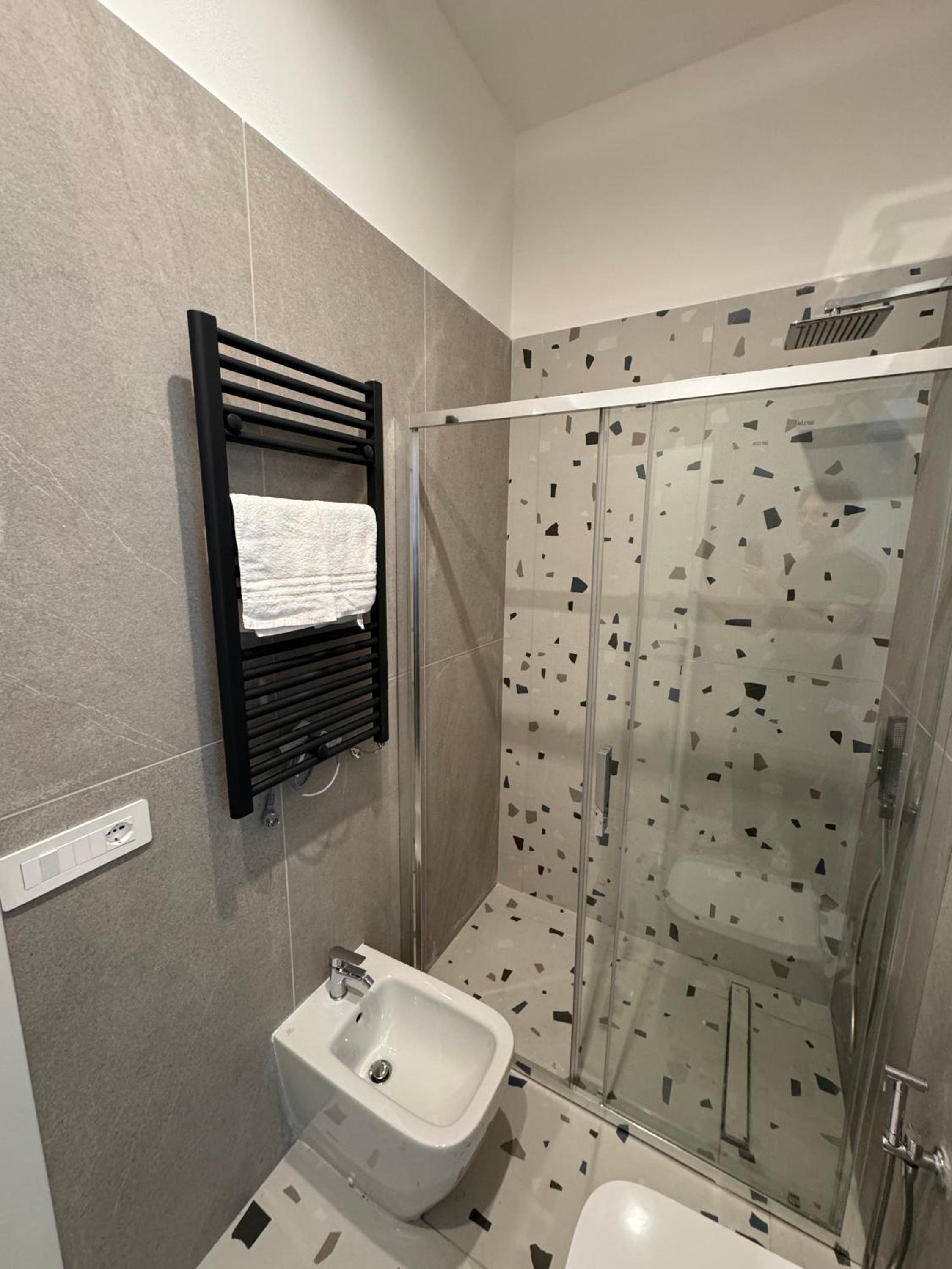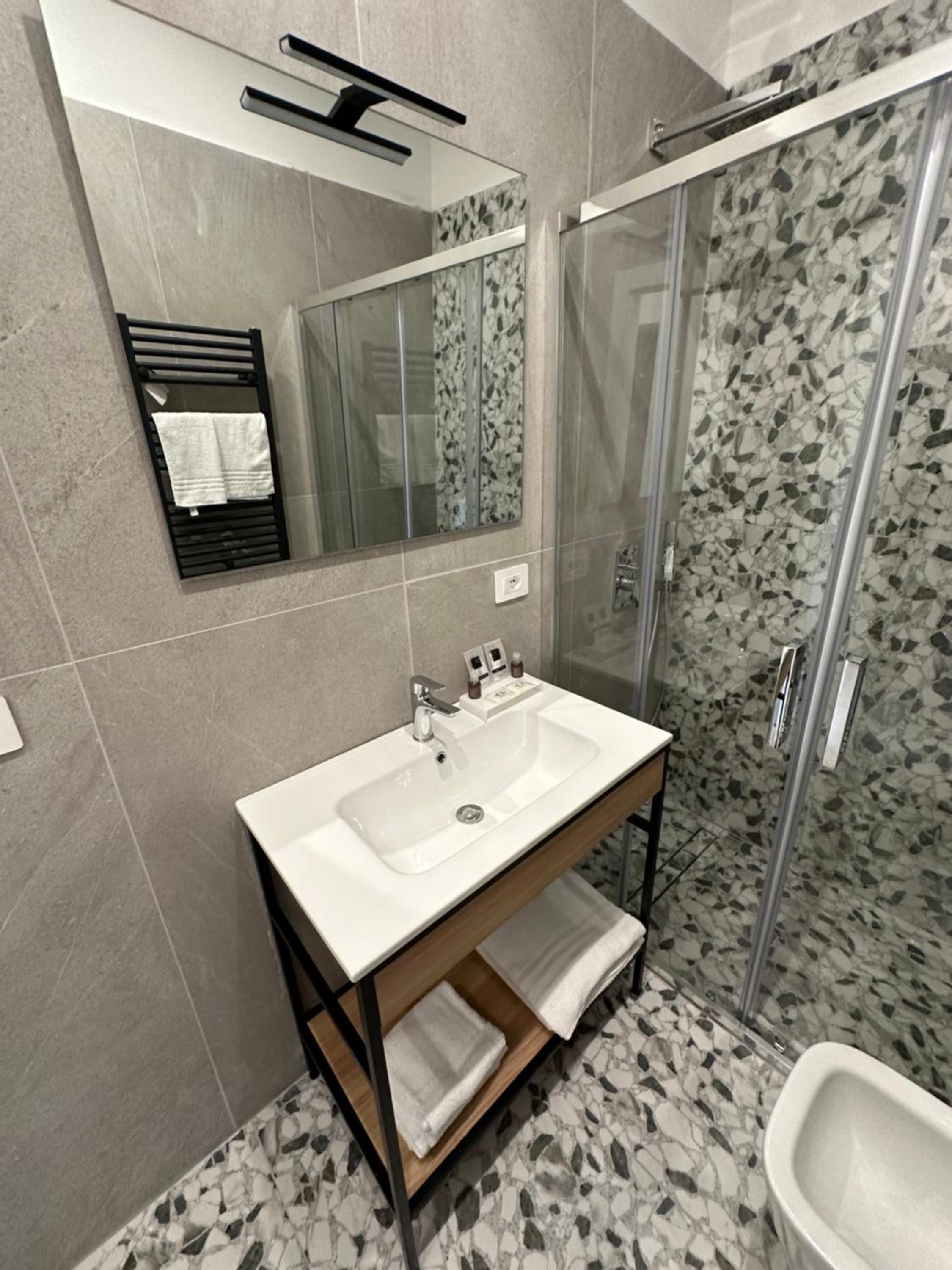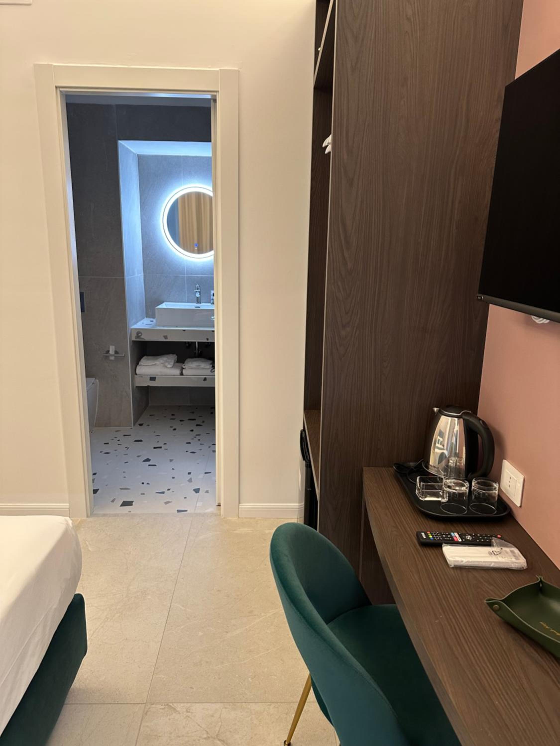 Heel modern en schoon ingerichte kamer en badkamer. Centraal gelegen dichtbij alle bezienswaardigheden. Bij het ontbijt was een super vriendelijke dame Mariarca die vertelde over de bezienswaardigheden en telkens vroeg of we tevreden waren. Ze zorgde zelfs op ons verzoek voor yogert zonder toevoegingen en probeerde ons het naar de zin te maken. Heel persoonlijk en bijzonder attent!