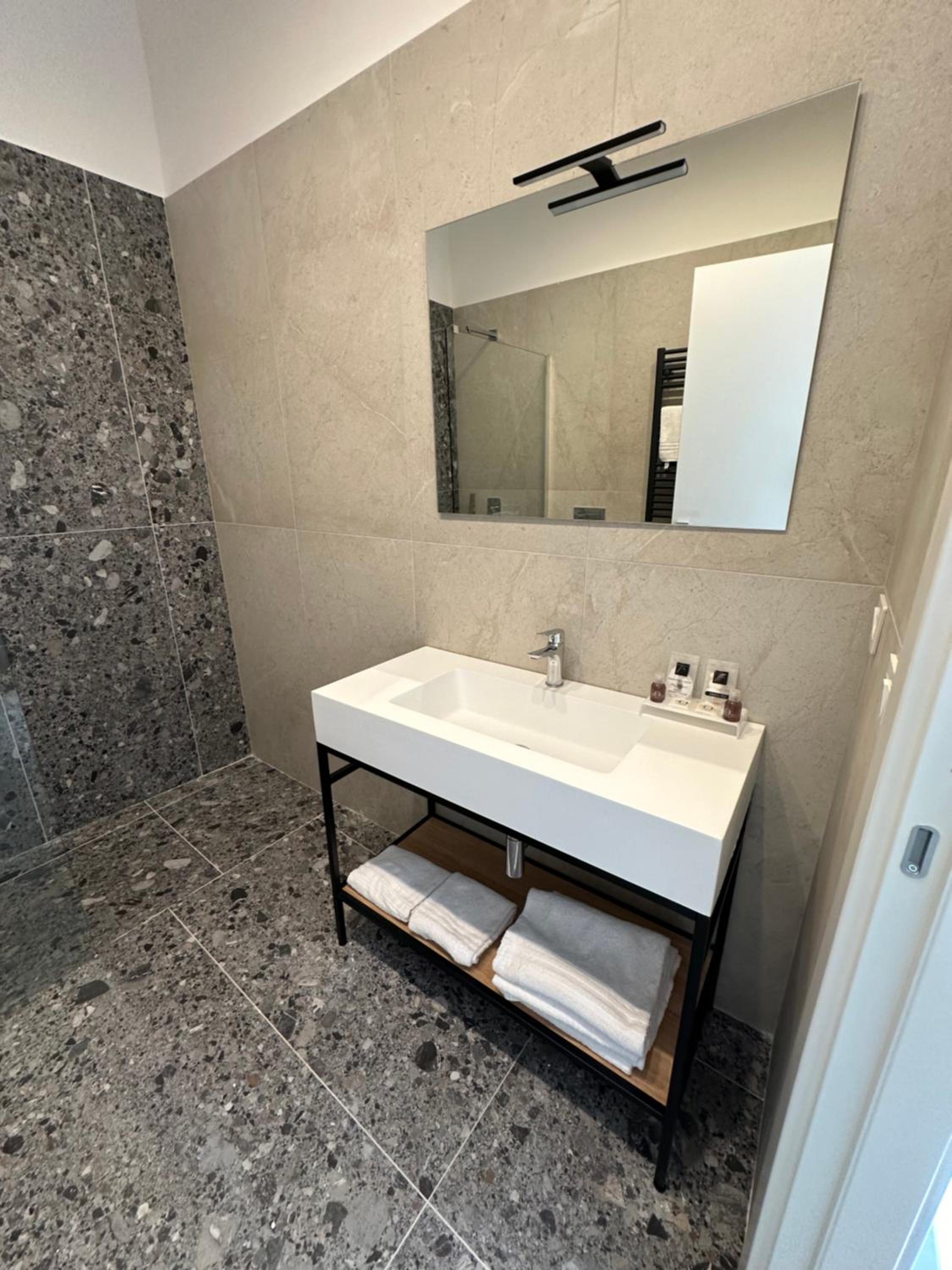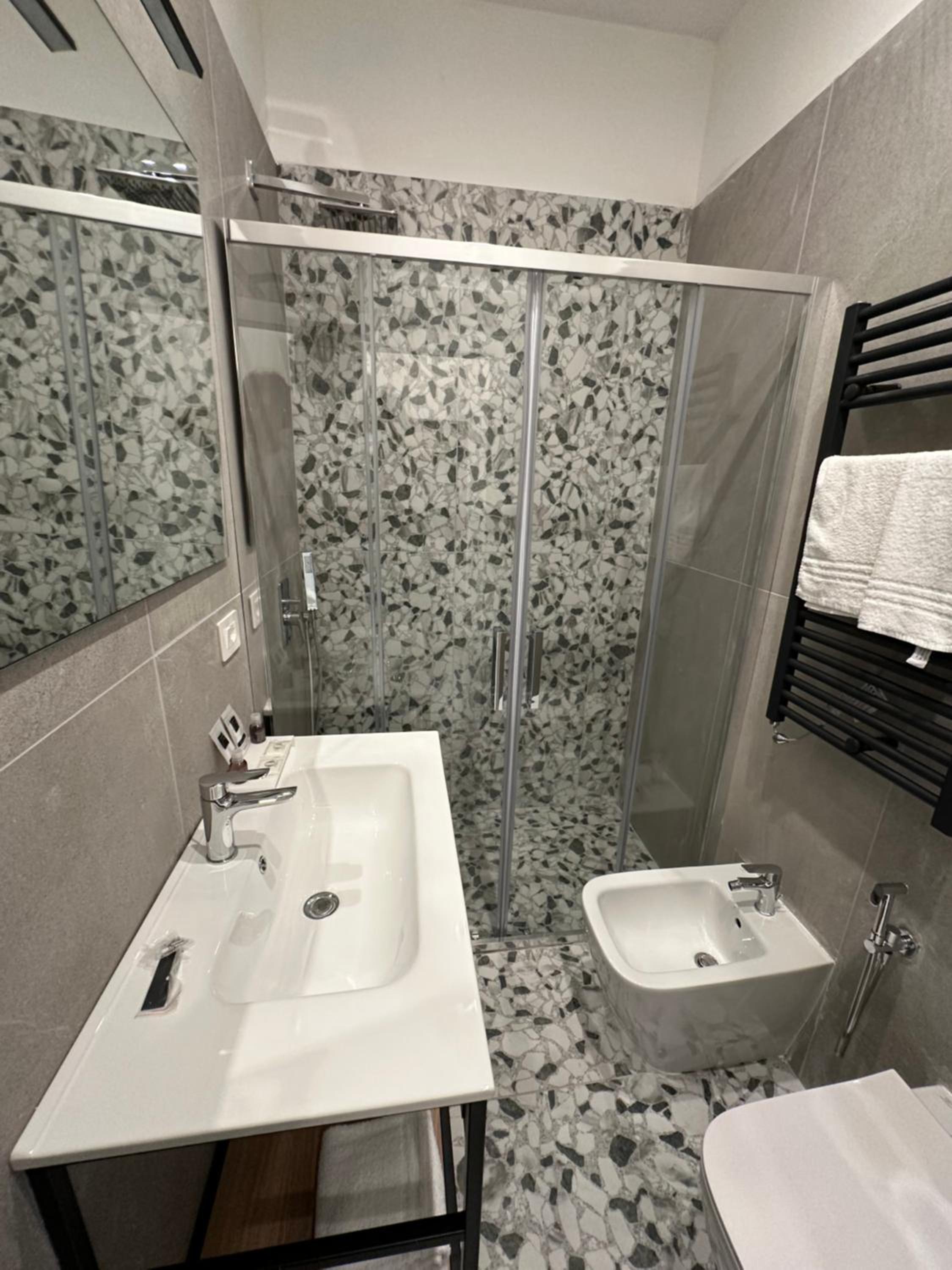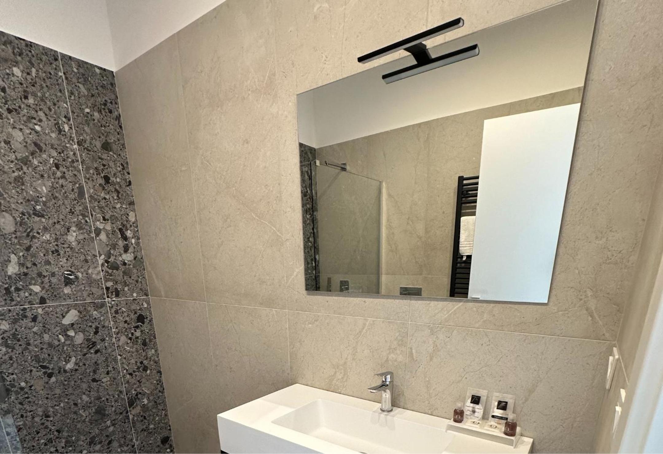 Heel modern en schoon ingerichte kamer en badkamer. Centraal gelegen dichtbij alle bezienswaardigheden. Bij het ontbijt was een super vriendelijke dame Mariarca die vertelde over de bezienswaardigheden en telkens vroeg of we tevreden waren. Ze zorgde zelfs op ons verzoek voor yogert zonder toevoegingen en probeerde ons het naar de zin te maken. Heel persoonlijk en bijzonder attent!