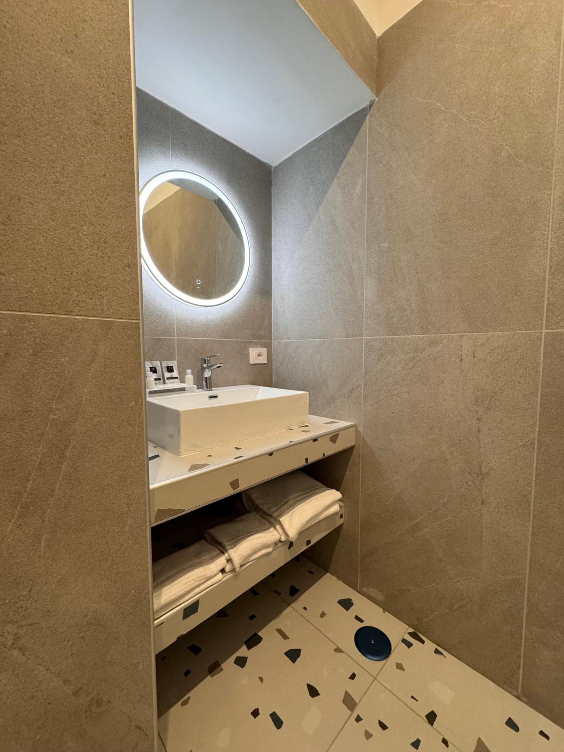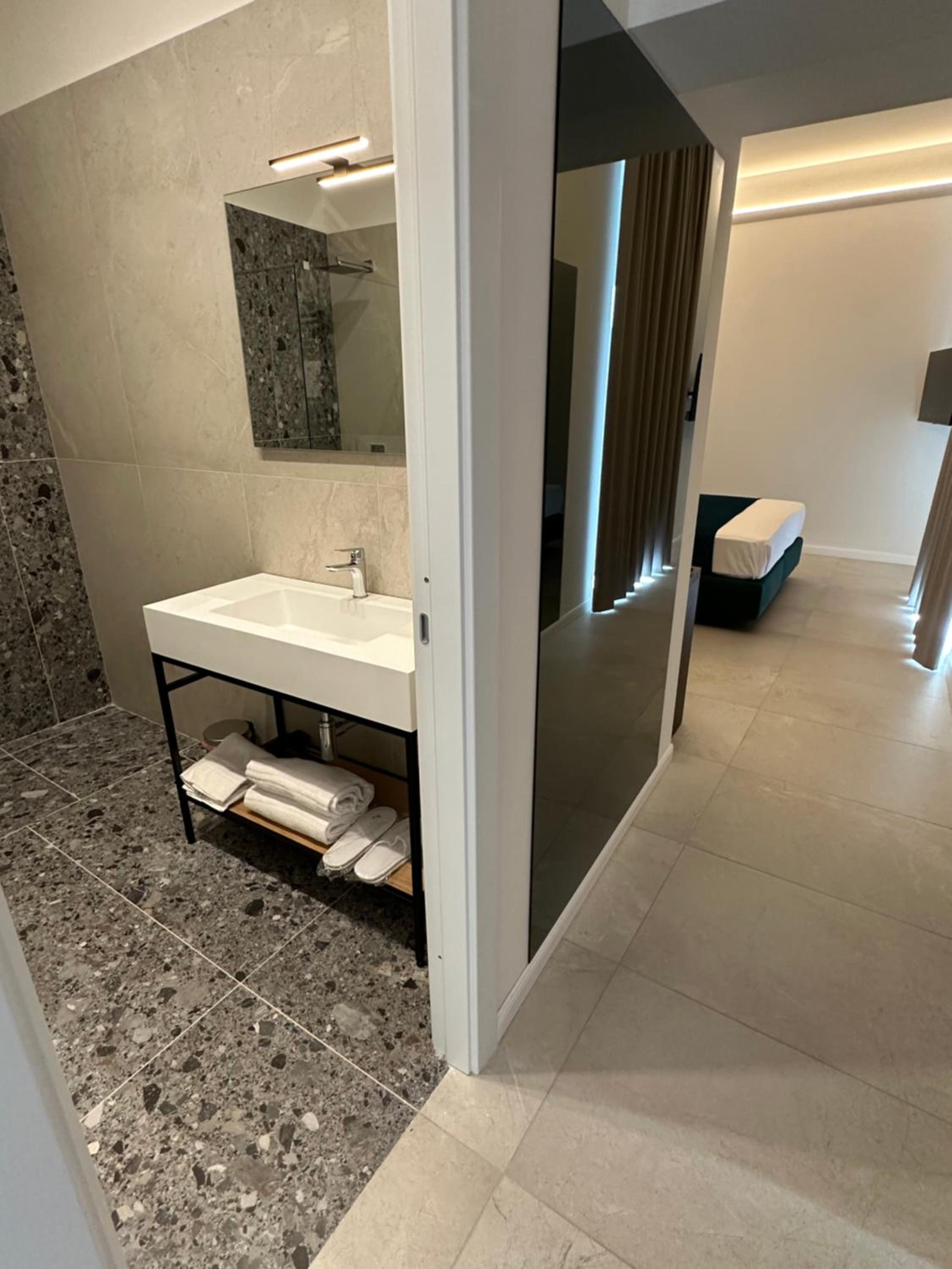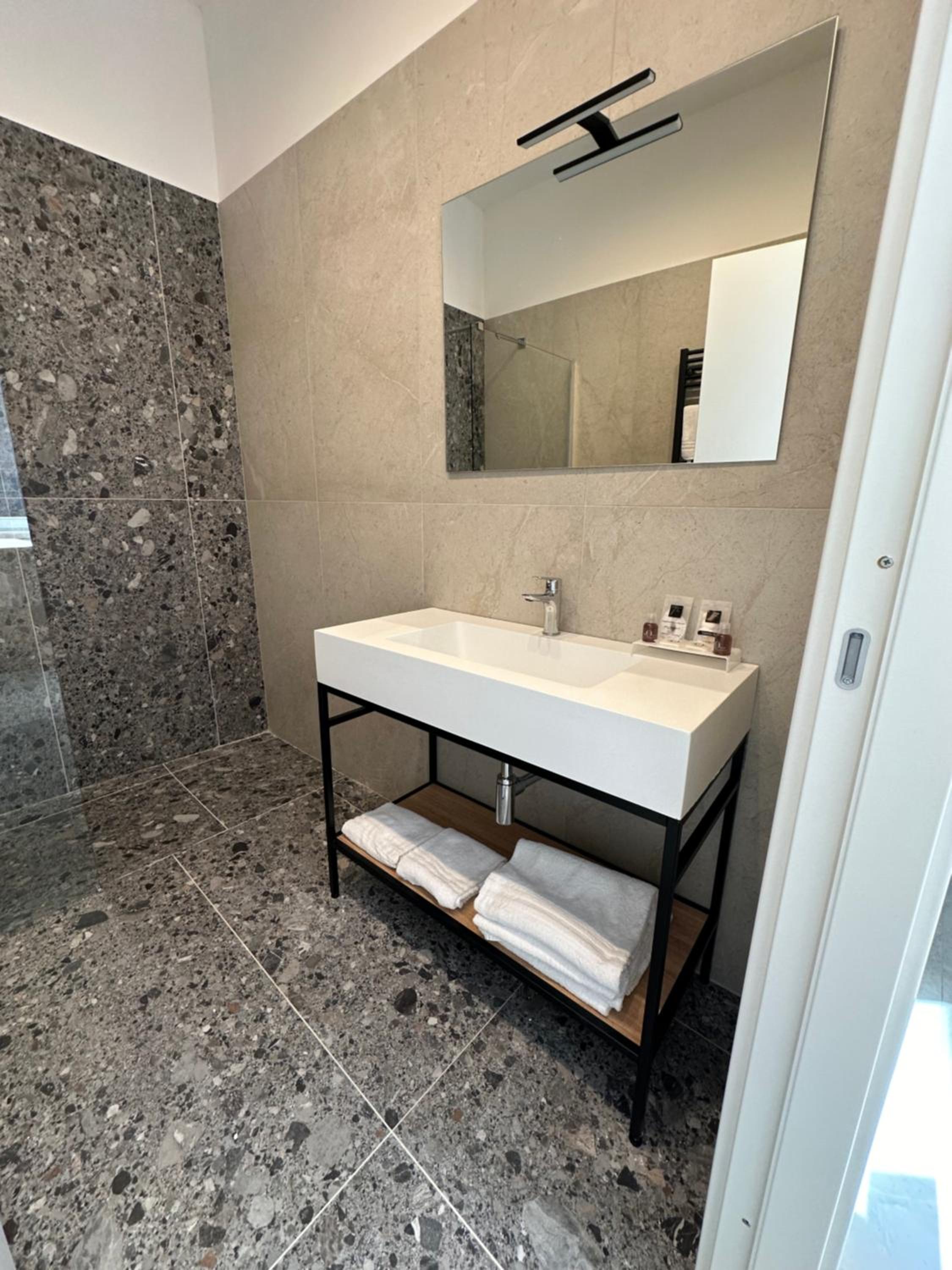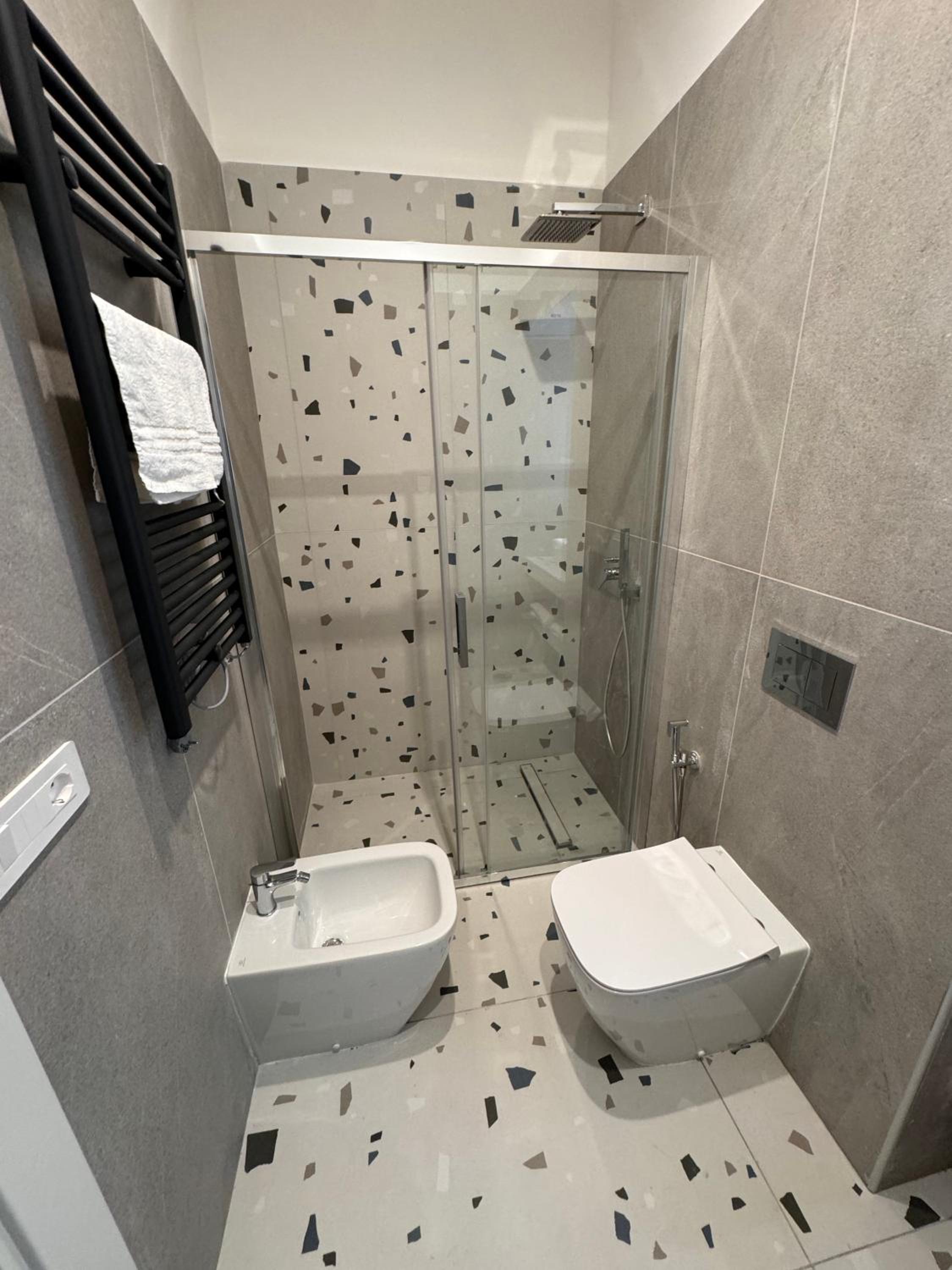 Heel modern en schoon ingerichte kamer en badkamer. Centraal gelegen dichtbij alle bezienswaardigheden. Bij het ontbijt was een super vriendelijke dame Mariarca die vertelde over de bezienswaardigheden en telkens vroeg of we tevreden waren. Ze zorgde zelfs op ons verzoek voor yogert zonder toevoegingen en probeerde ons het naar de zin te maken. Heel persoonlijk en bijzonder attent!