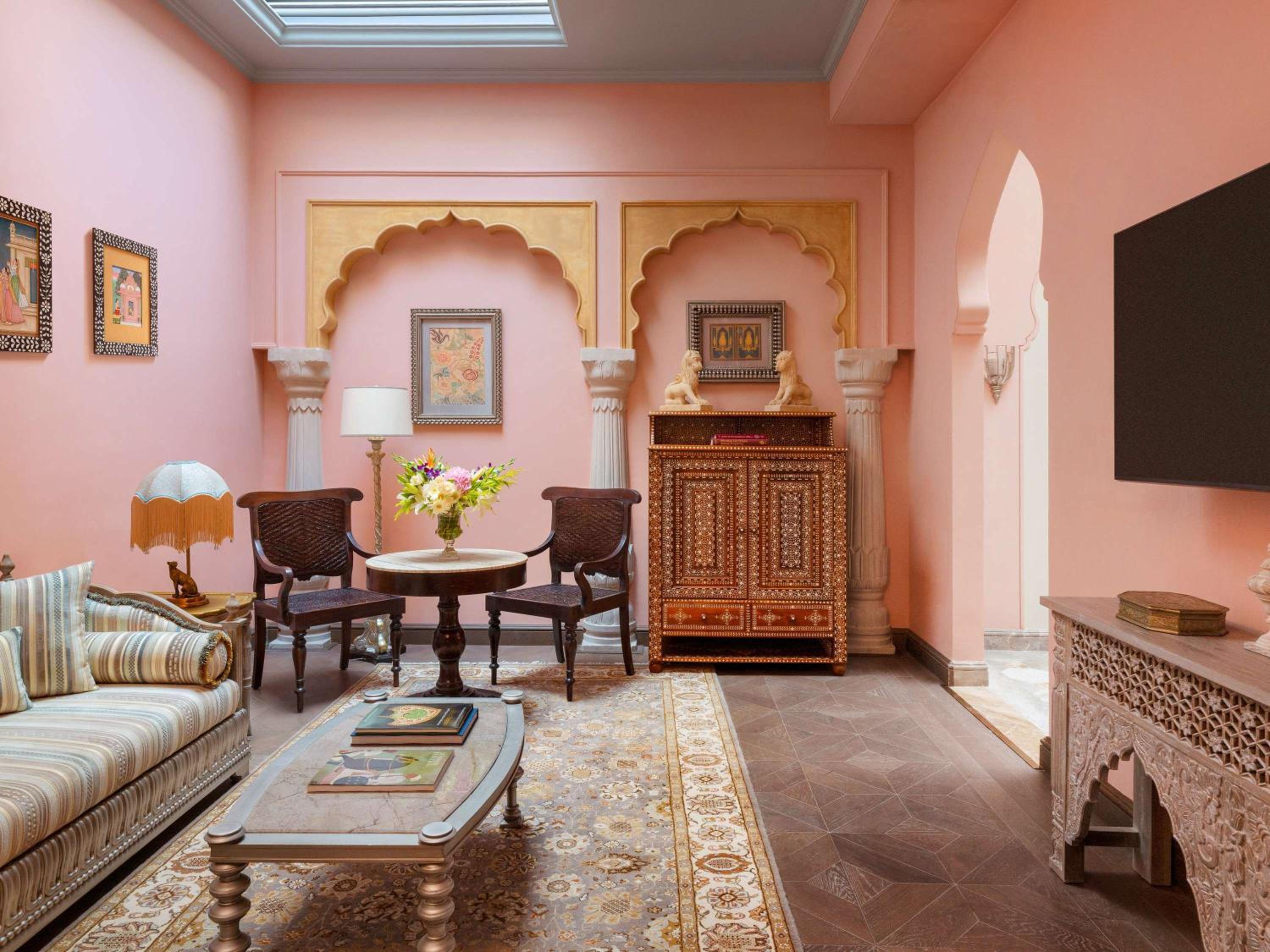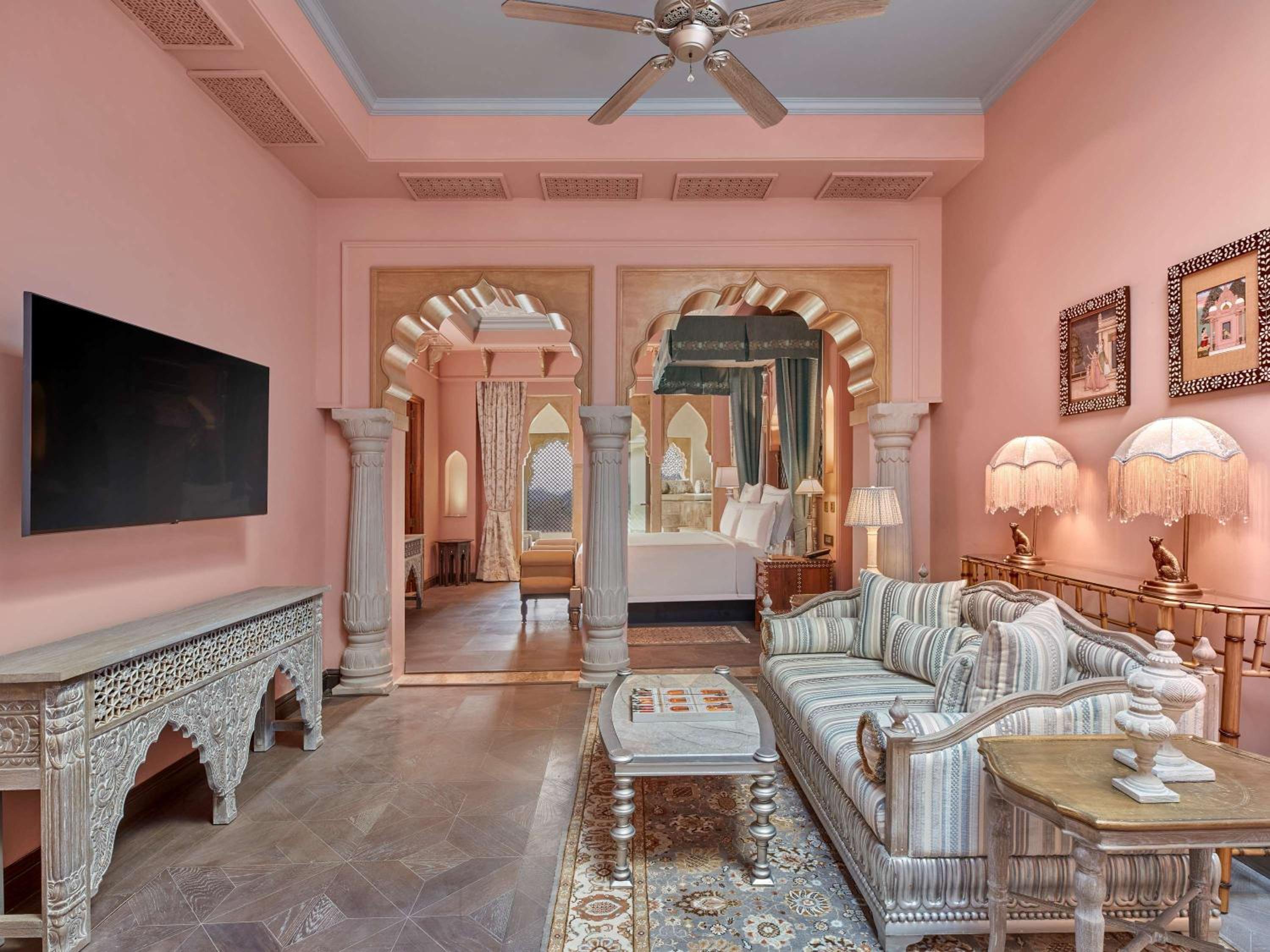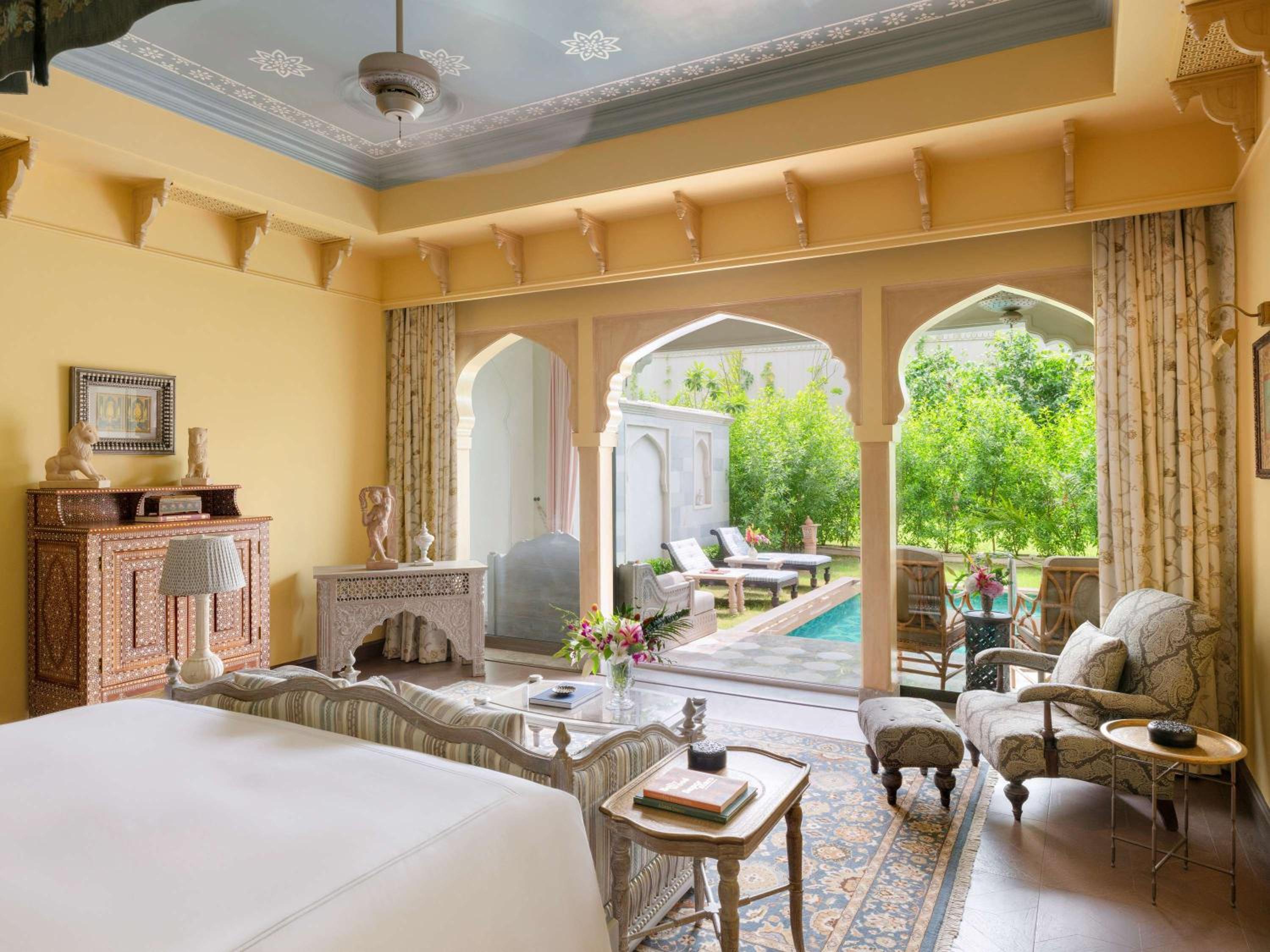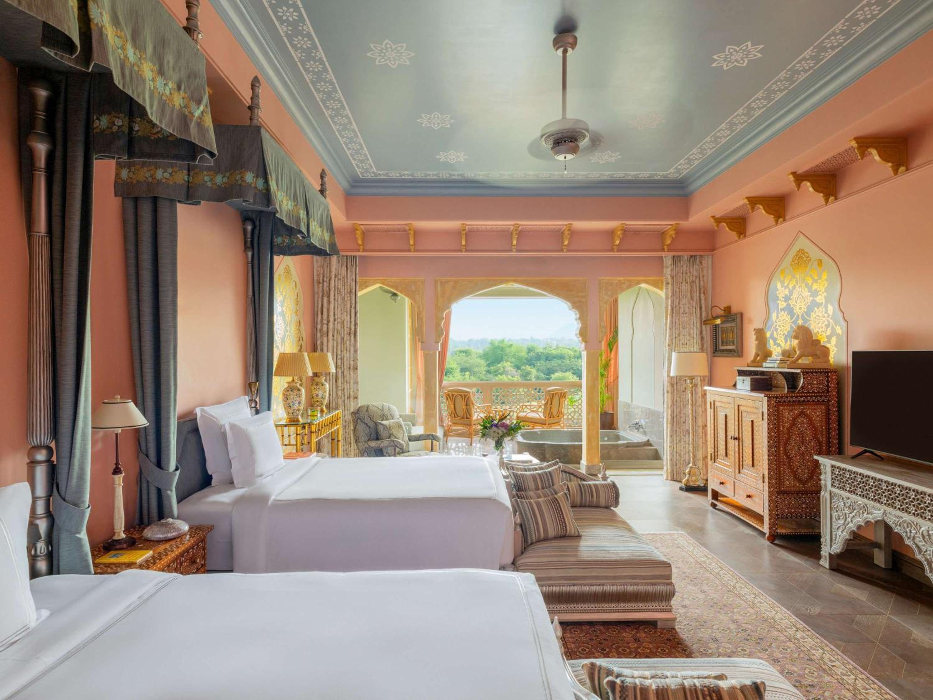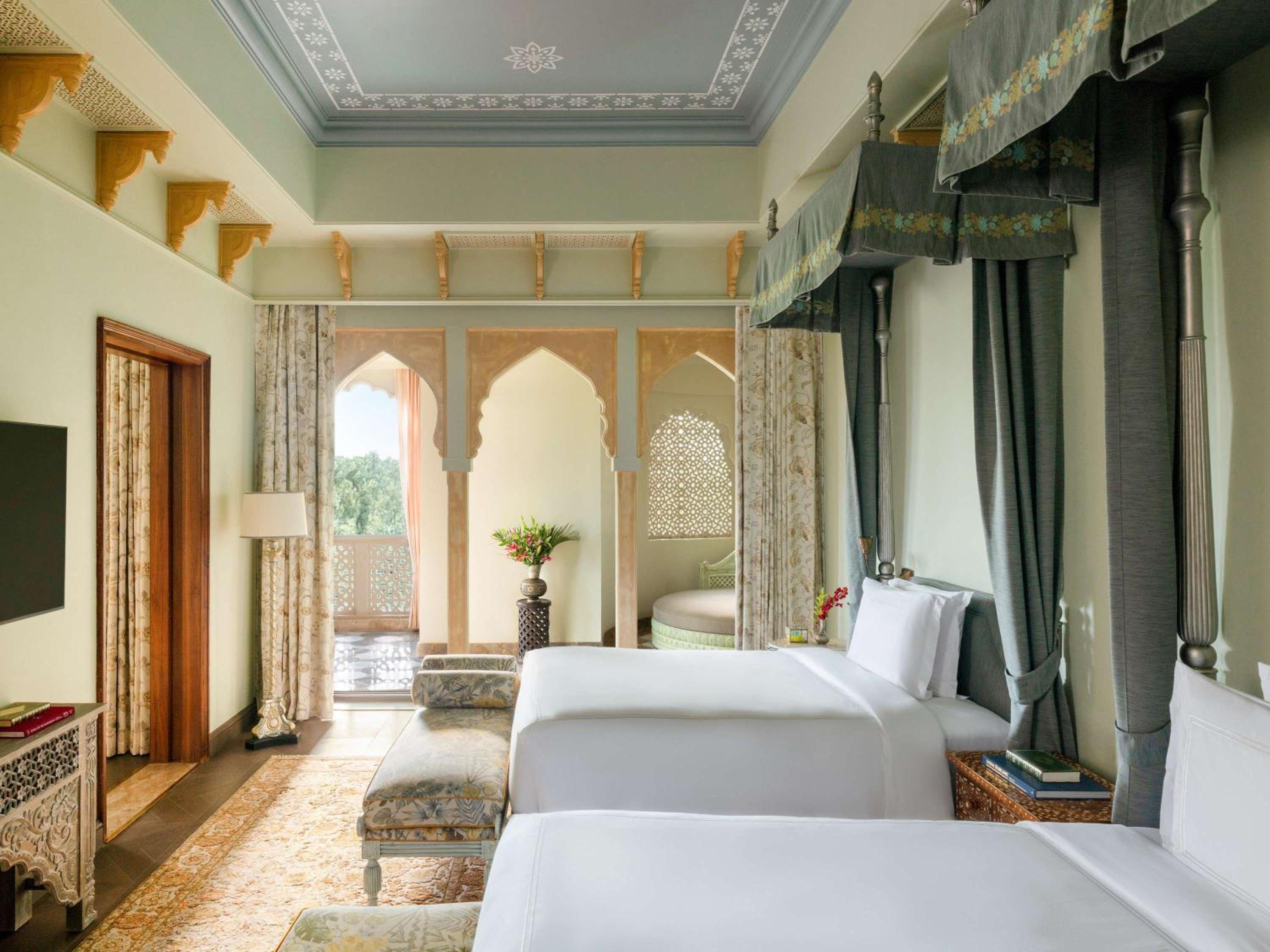 Experience air-conditioned rooms with modern amenities and stunning views, along with impeccable service at Raffles Jaipur.