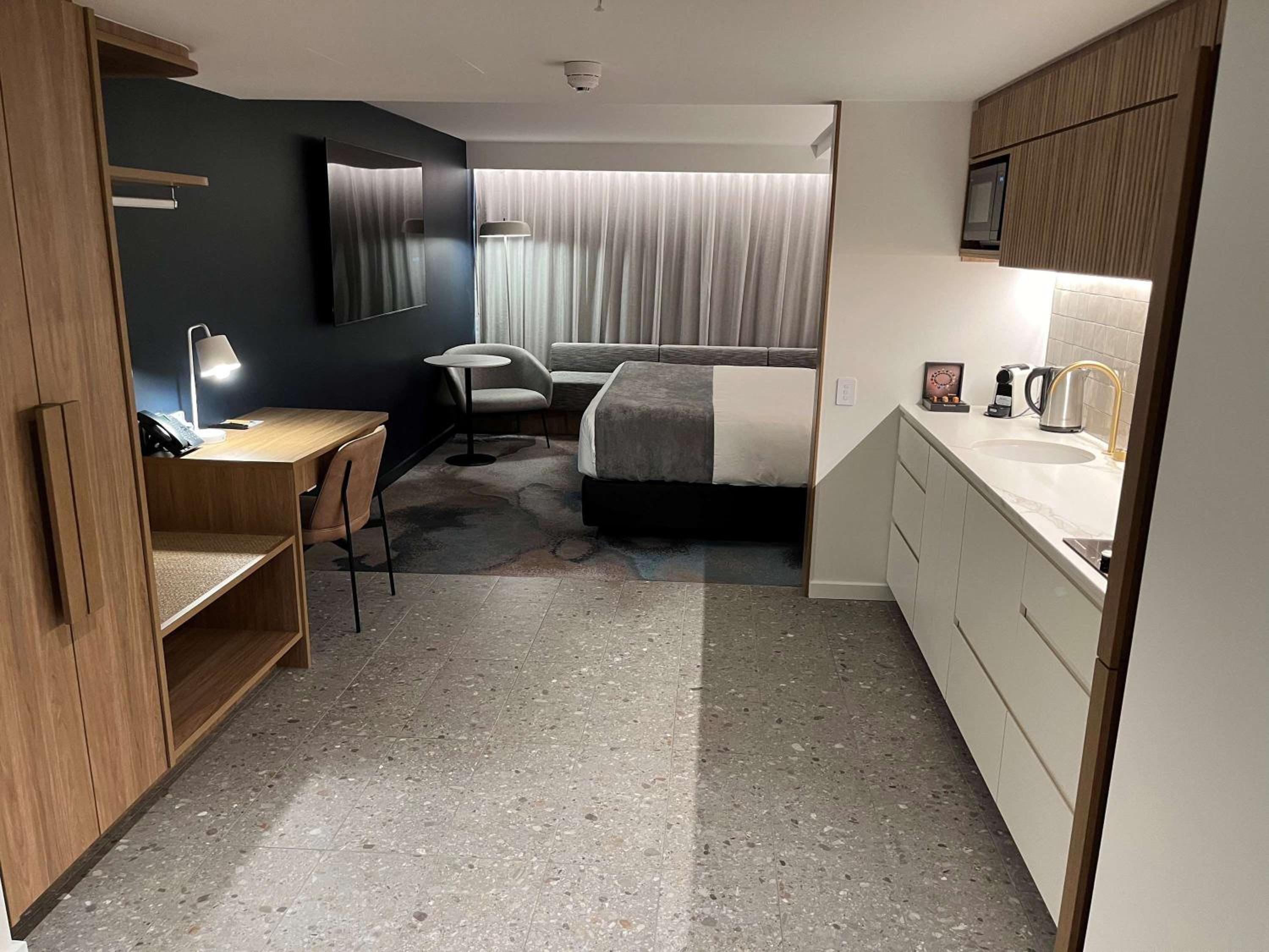New outfit, very comfortable bed, brilliant having a small kitchenette in room, free soft drinks, fast room service, good reception staff