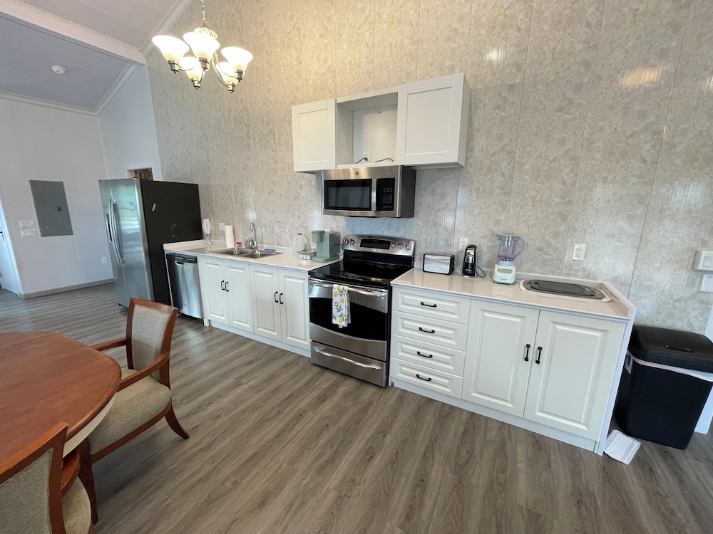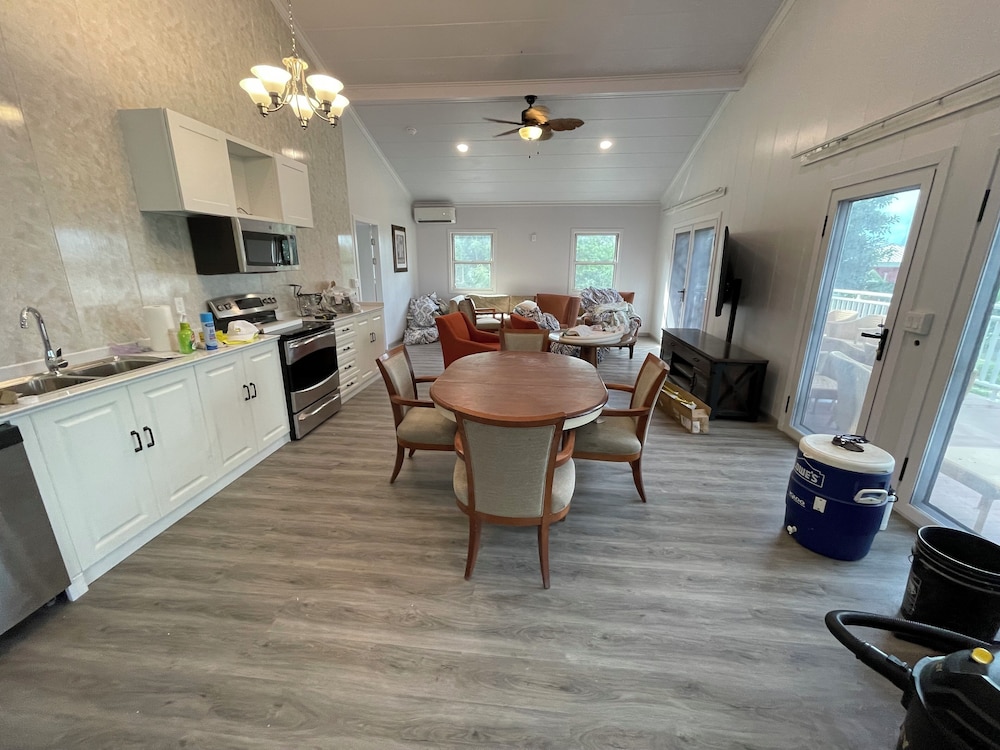The property boasts a beautiful view and is part of a new construction, which made everything feel fresh and modern. The air conditioning worked perfectly, and the space was generous—with a roomy kitchen, large bedrooms, a spacious family room, and a wide deck to enjoy the scenery. The internet was fast, and ceiling fans throughout the home added to the comfort, especially on warmer days. One of the standout features was how quiet the location was—great for relaxing or getting work done.