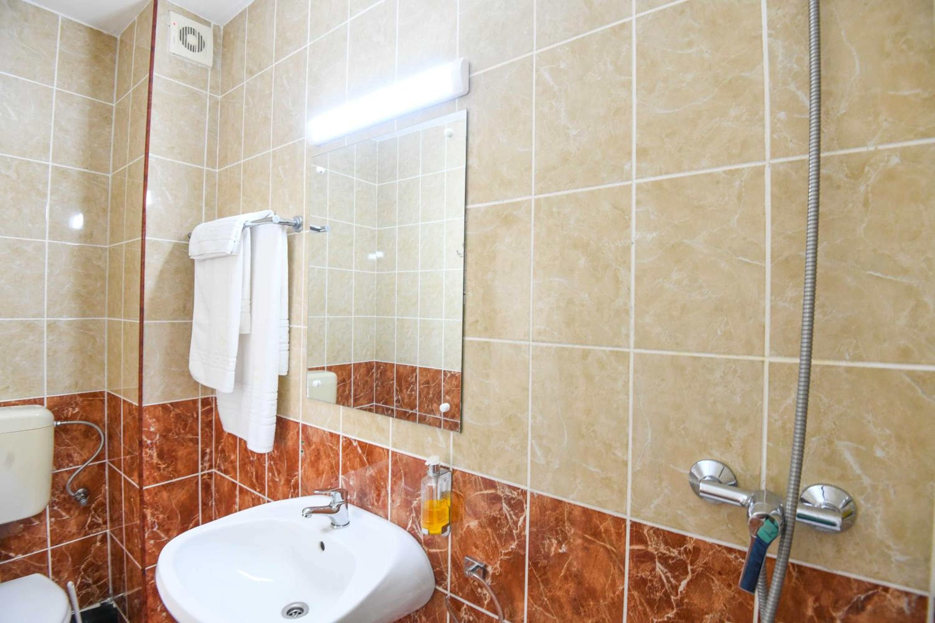 Înțeleg că investițiile presupun costuri mari și probabil hotelul are alte priorități în momentul de față din moment ce am regăsit anumite probleme semnalate în recenziile anterioare, însă minimul ar fi un ventilator mai puternic, cât și un suport în cabina de duș pentru săpun sau recipiente, cabina de duș nu este încăpătoare și singura variantă este să faci gimnastică cu recipientele pe ușile cabinei.