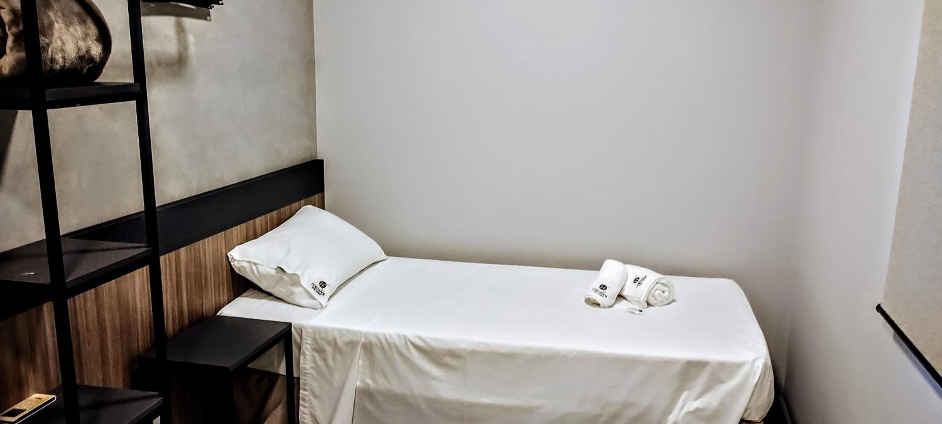 El lavamanos estaba al lado de la cama de la habitación.