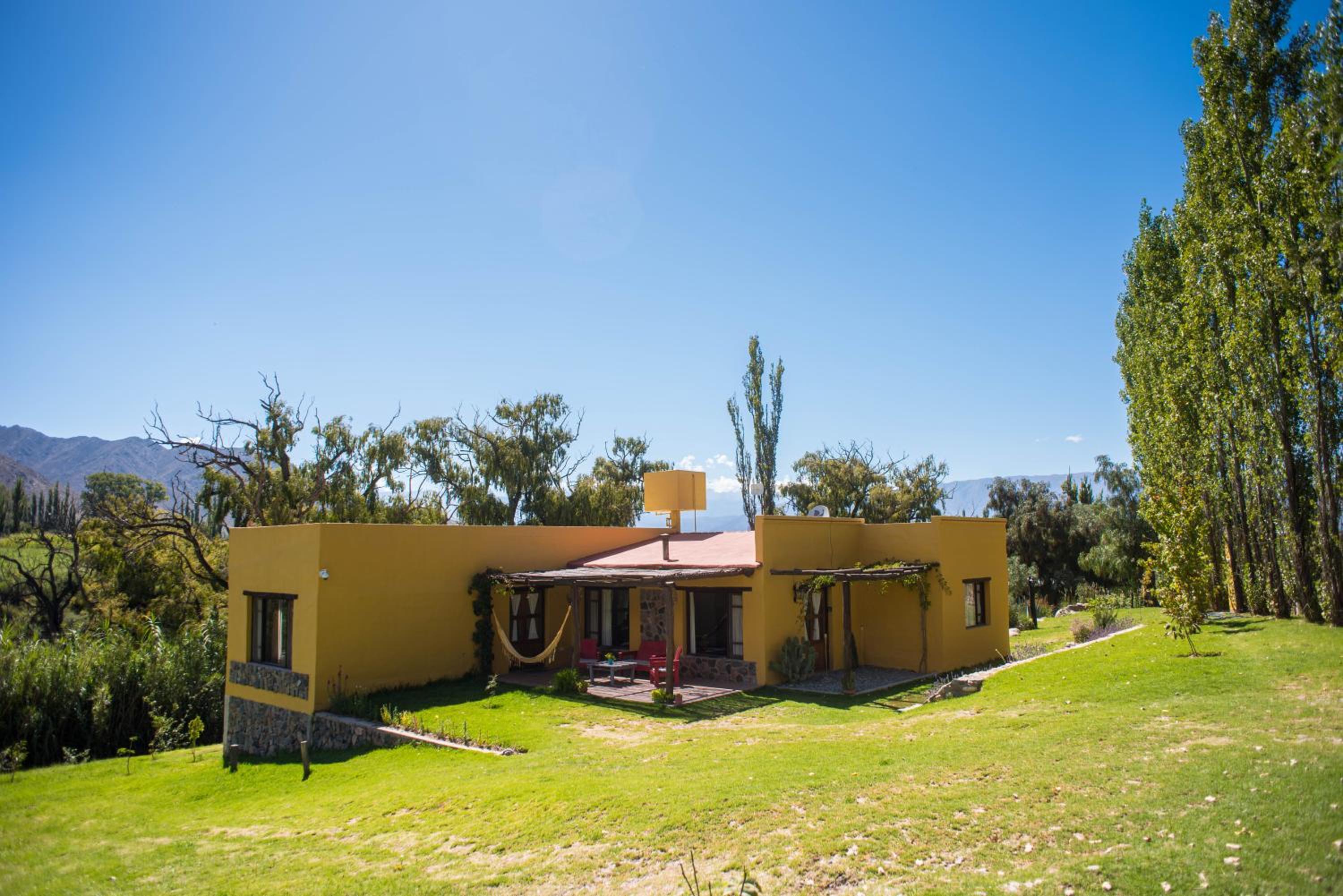 El lugar está ubicado en el medio de la naturaleza. Rodeada de verde y montaña. Es hermoso