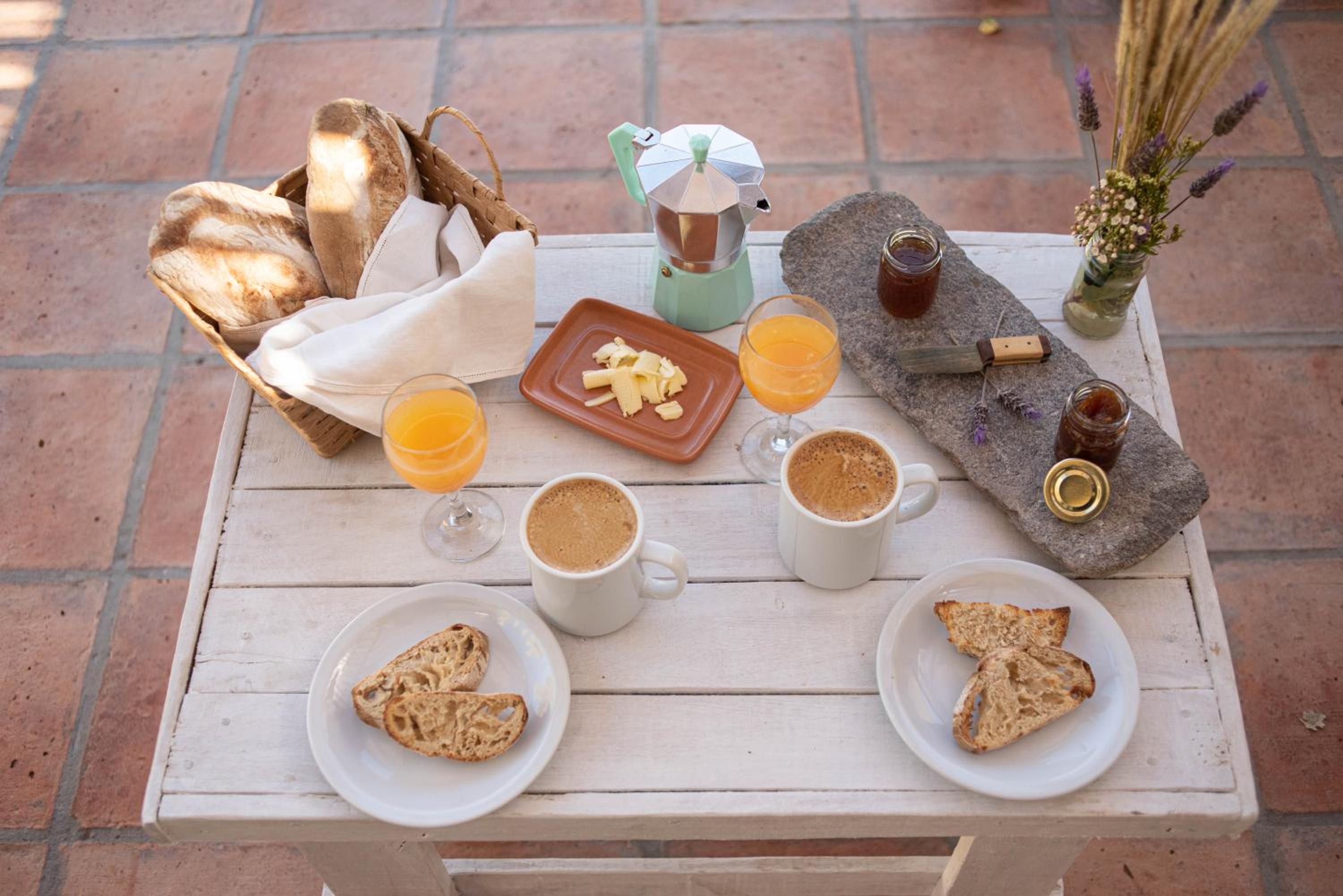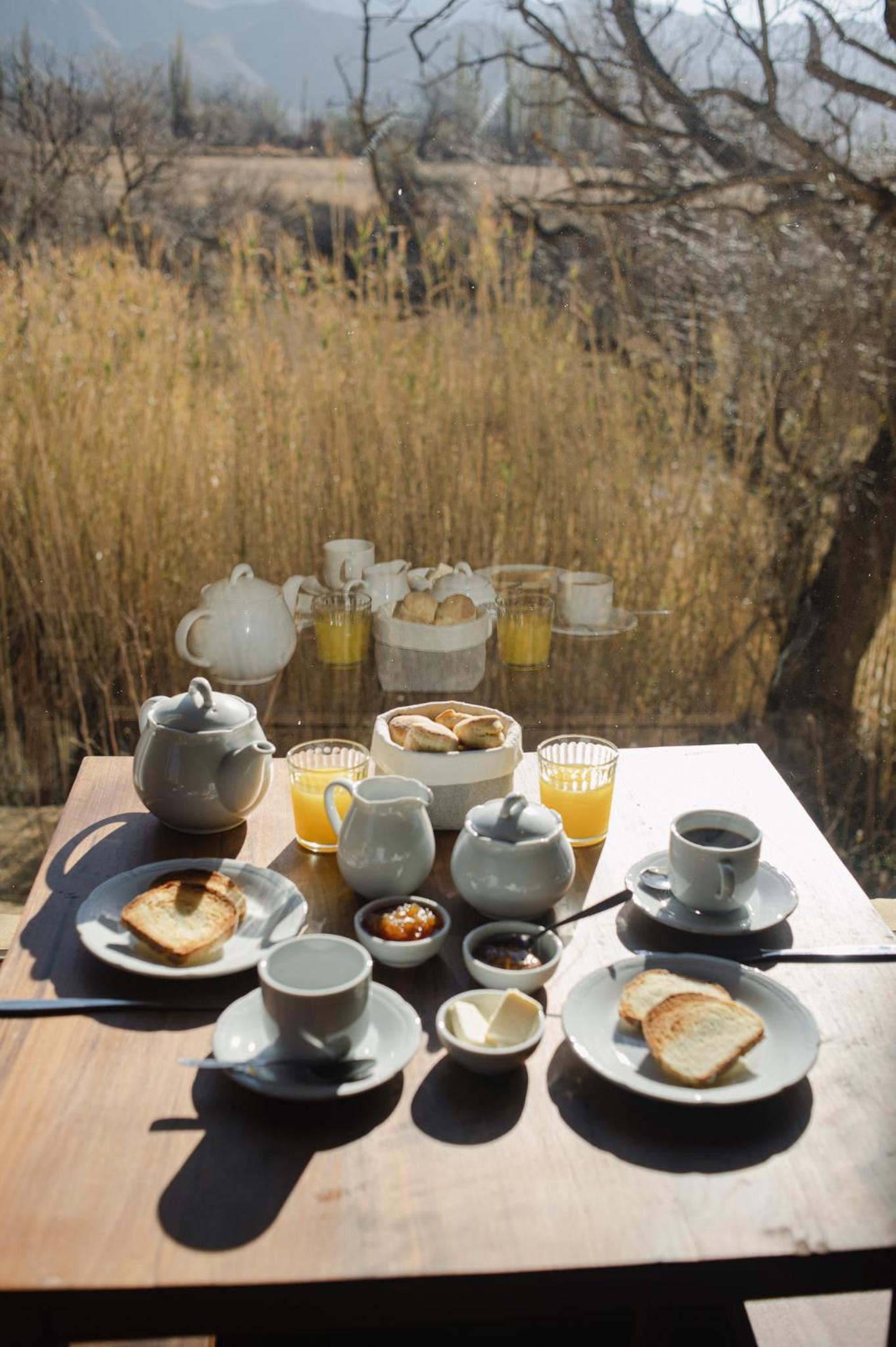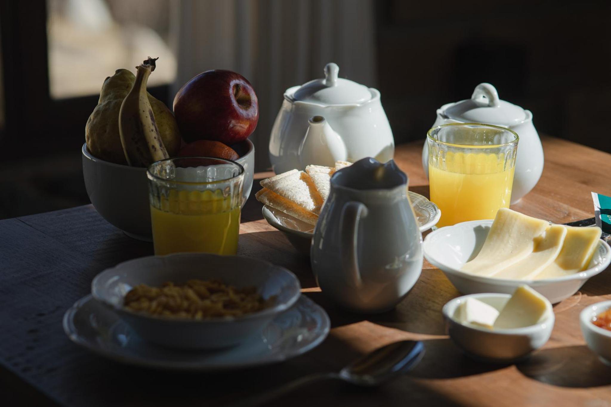 El desayuno muy rico, pan casero, pasta frola, pastel de zanahoria... preparados por Fabrizio, quien también cocina las exquisitas cenas.