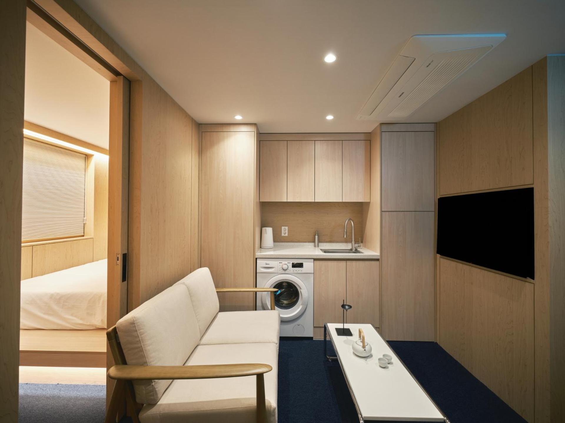 It has all the amenities we needed for longer term stay as a family, such as washing machine, kitchenette with microwave and eating utensils. Location was also excellent. The area is lovely and quiet, but walking distance to centre of Apgujeong and Garuso-gil shopping area. Great cafes, cool bars, and bakeries nearby.