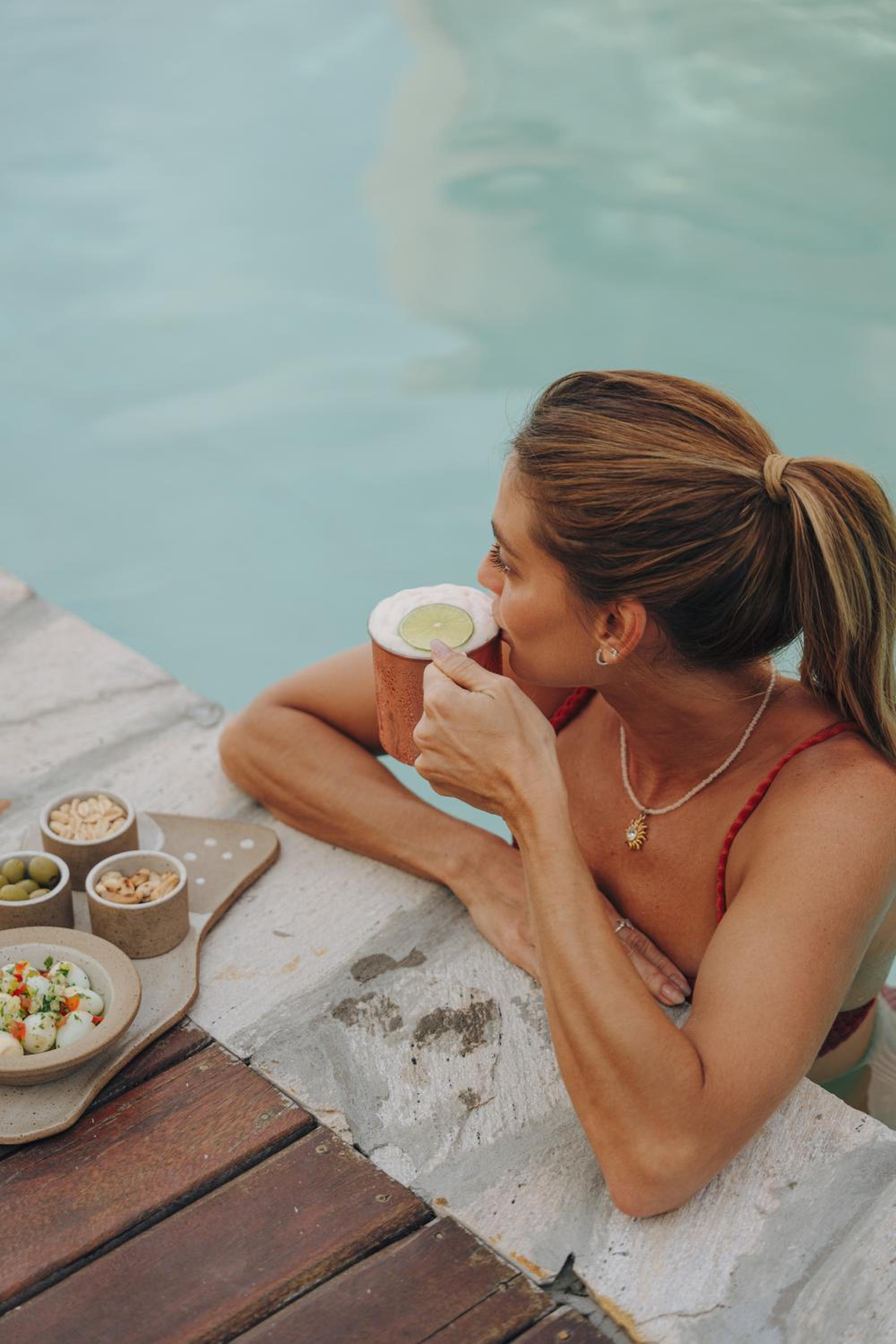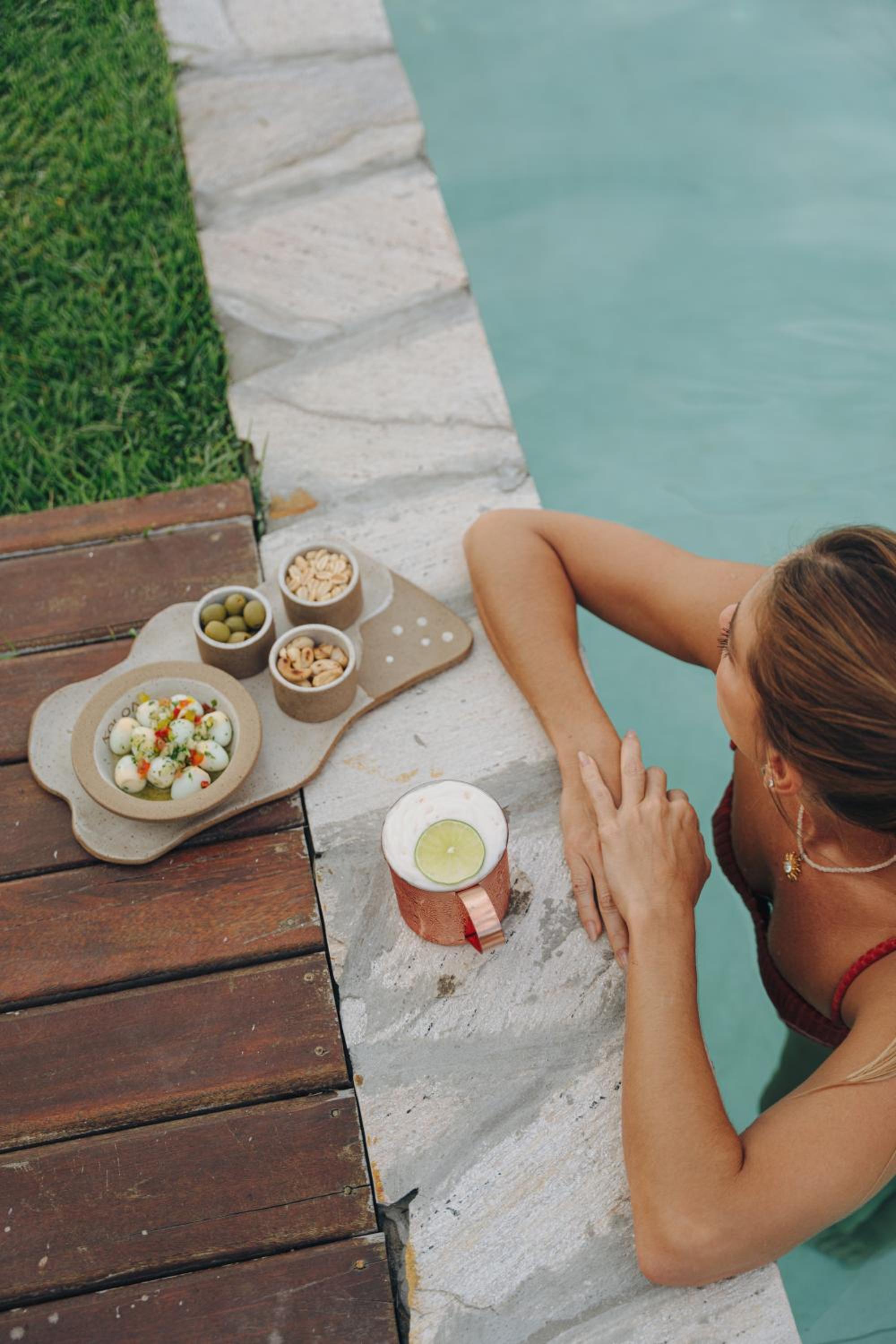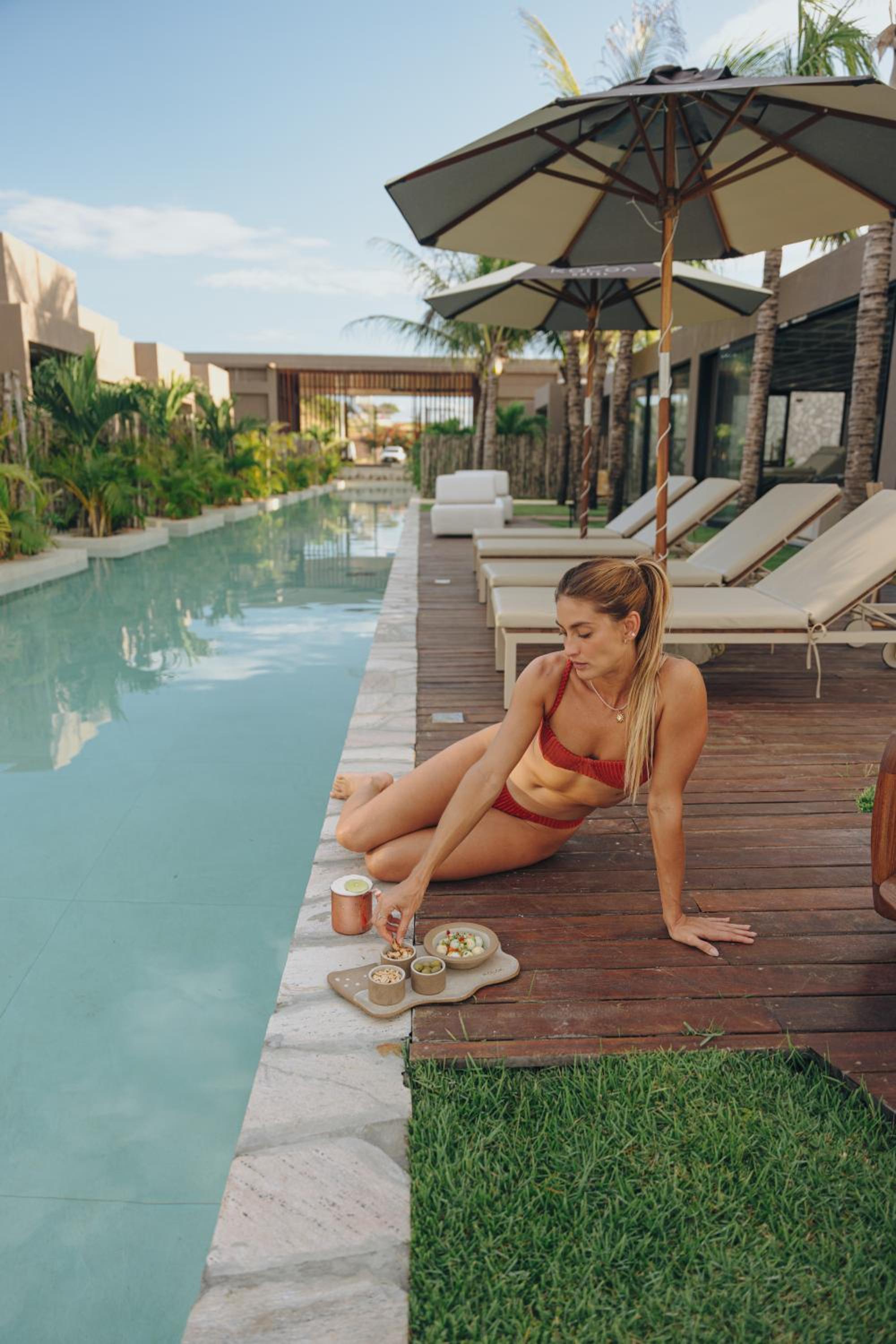 Piscina e toalhas.