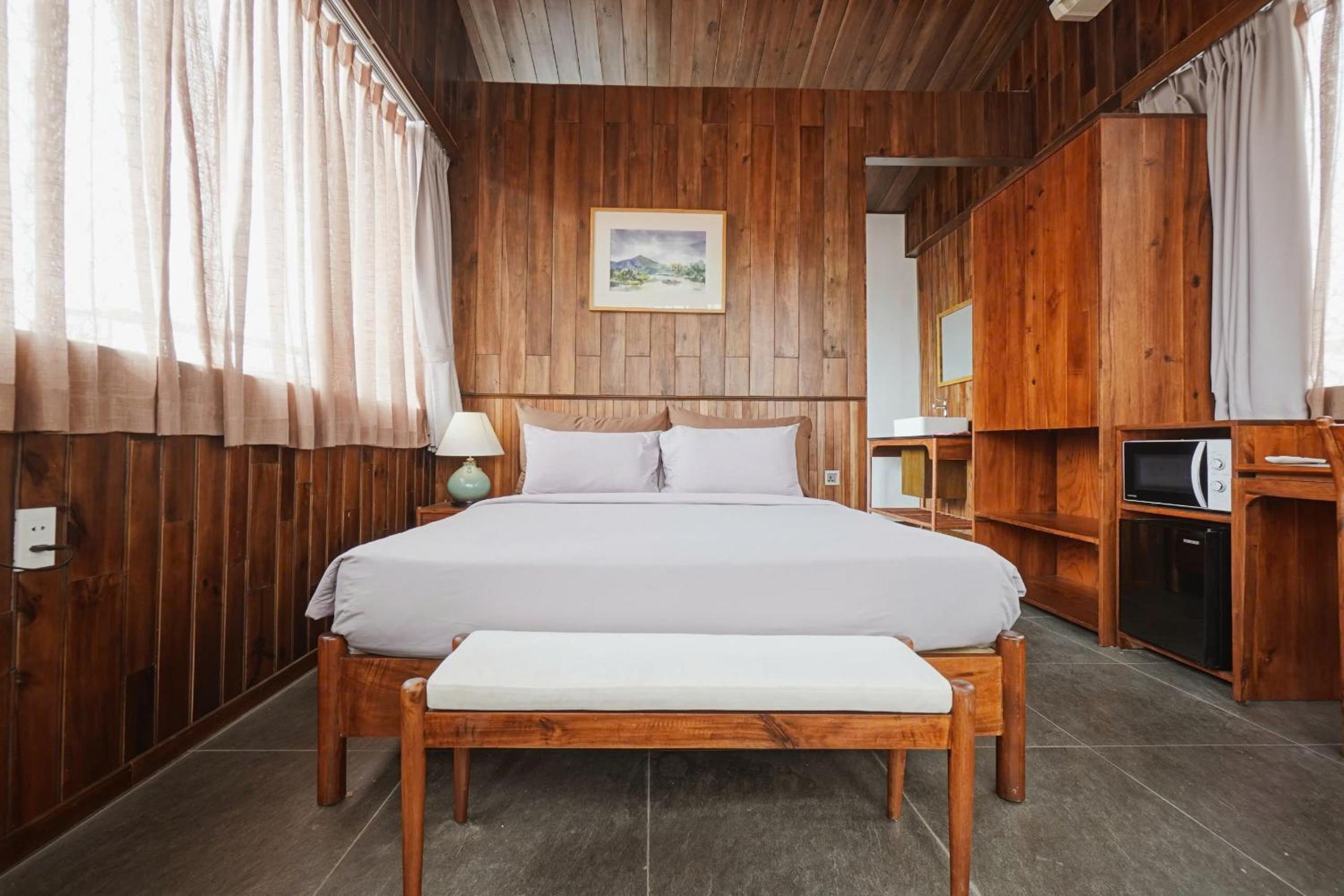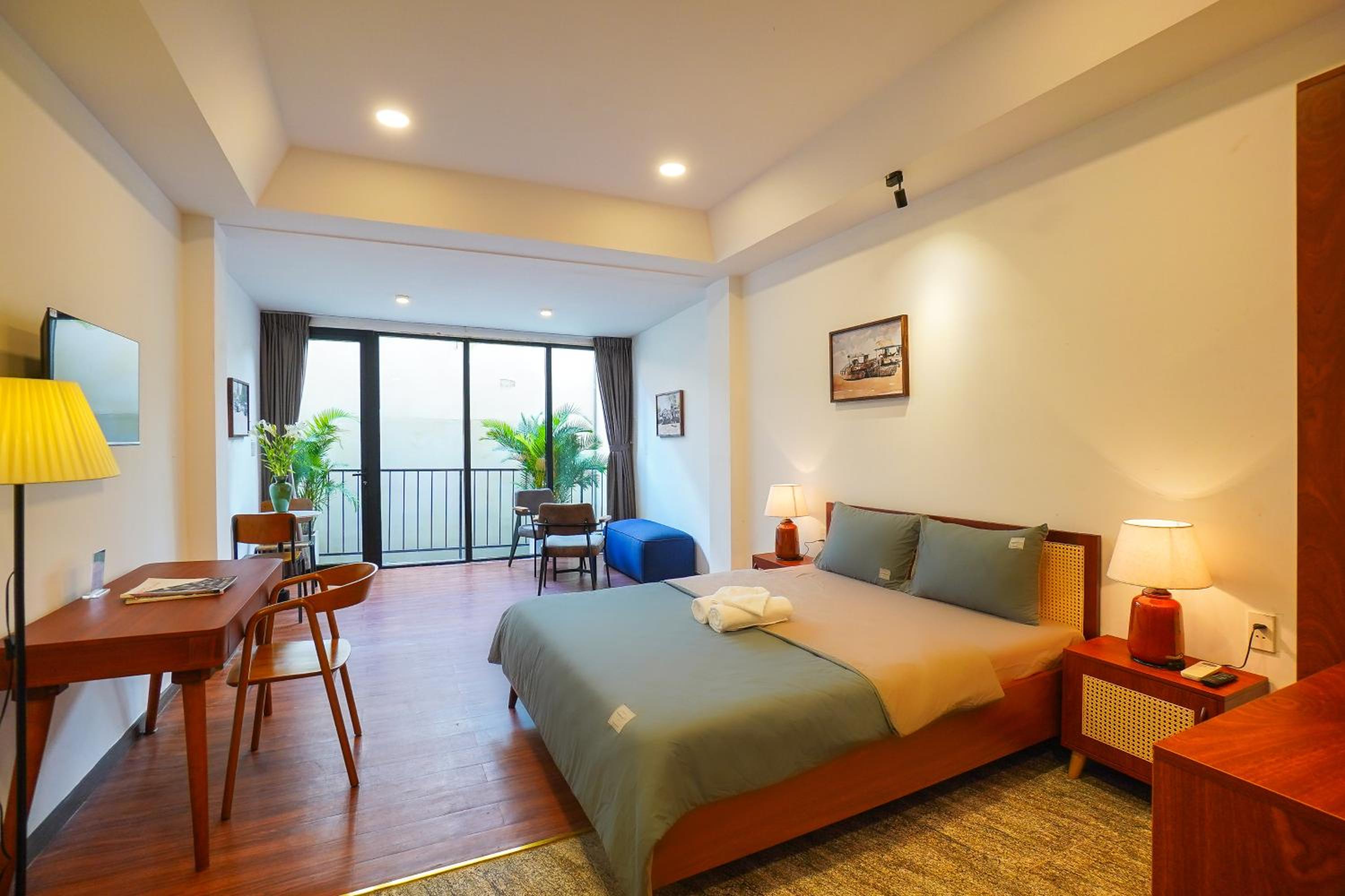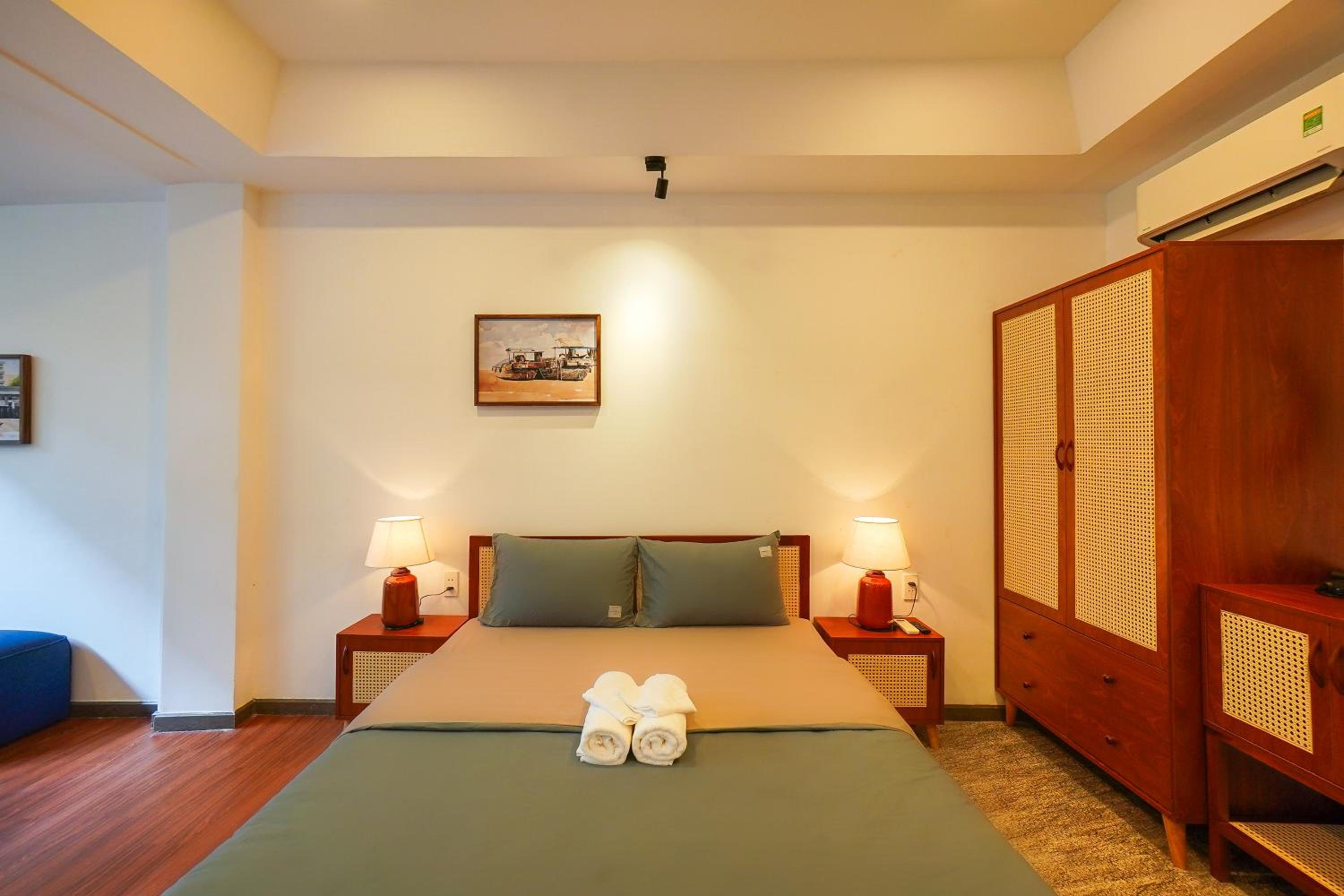 Solicitamos la habitación de arriba con vistas y sin ningún problema nos alojaron en ella. Todo muy limpio y sobre todo espacioso, con una decoración y vistas preciosas. De todos modos, lo mejor de la estancia ha sido Quoc Dat, siempre con una sonrisa y dispuesto a ayudarnos en todo.