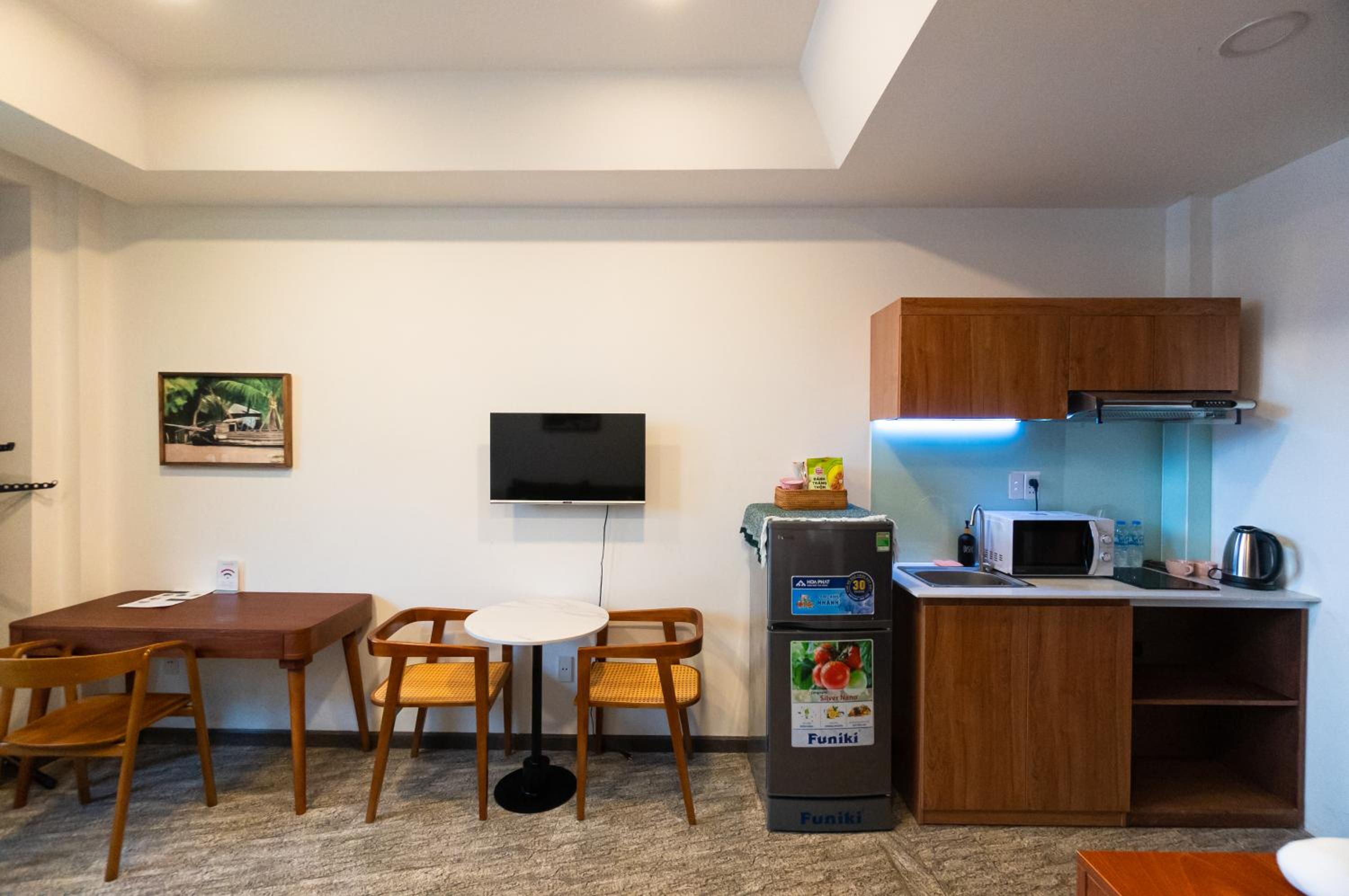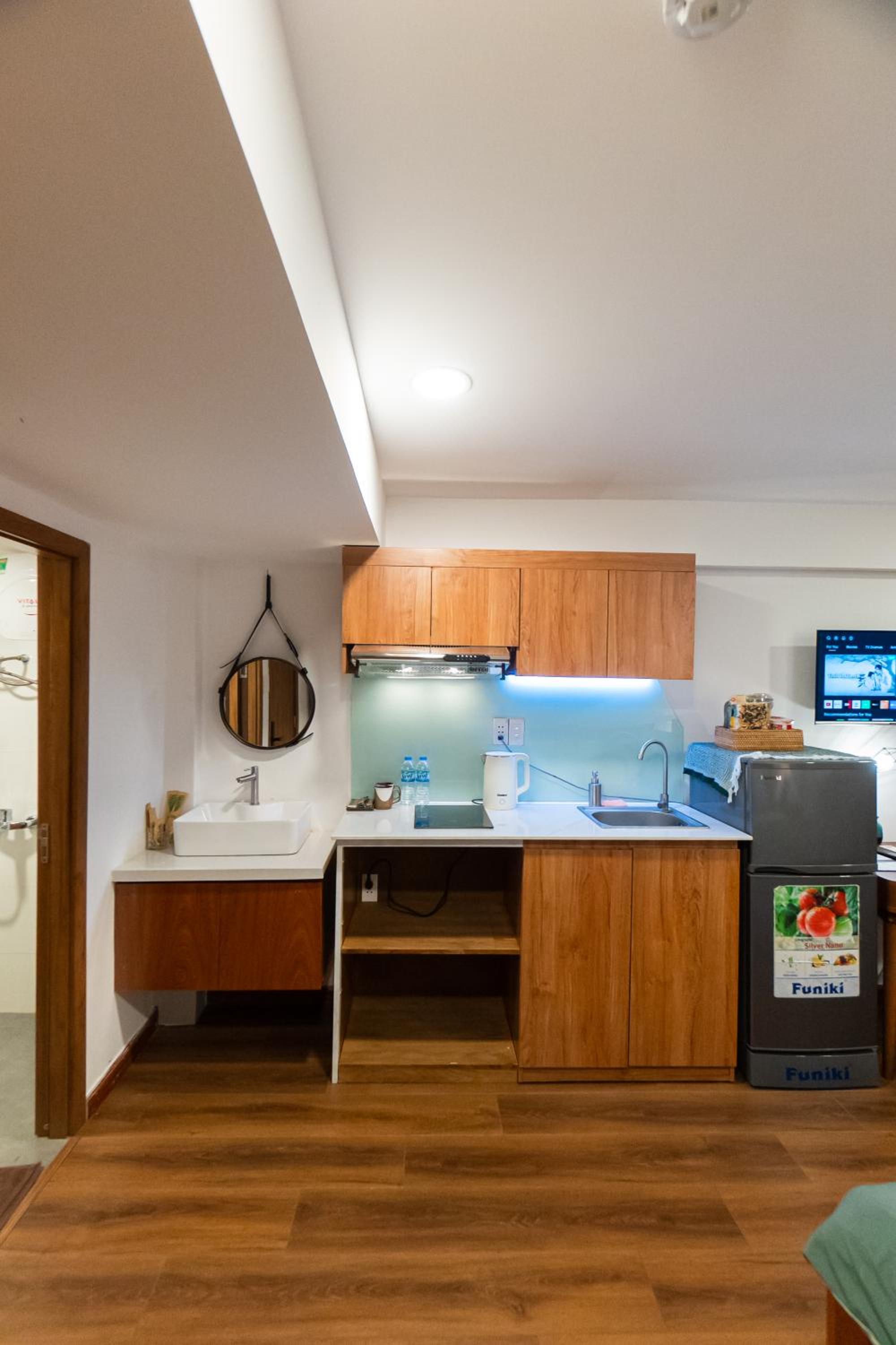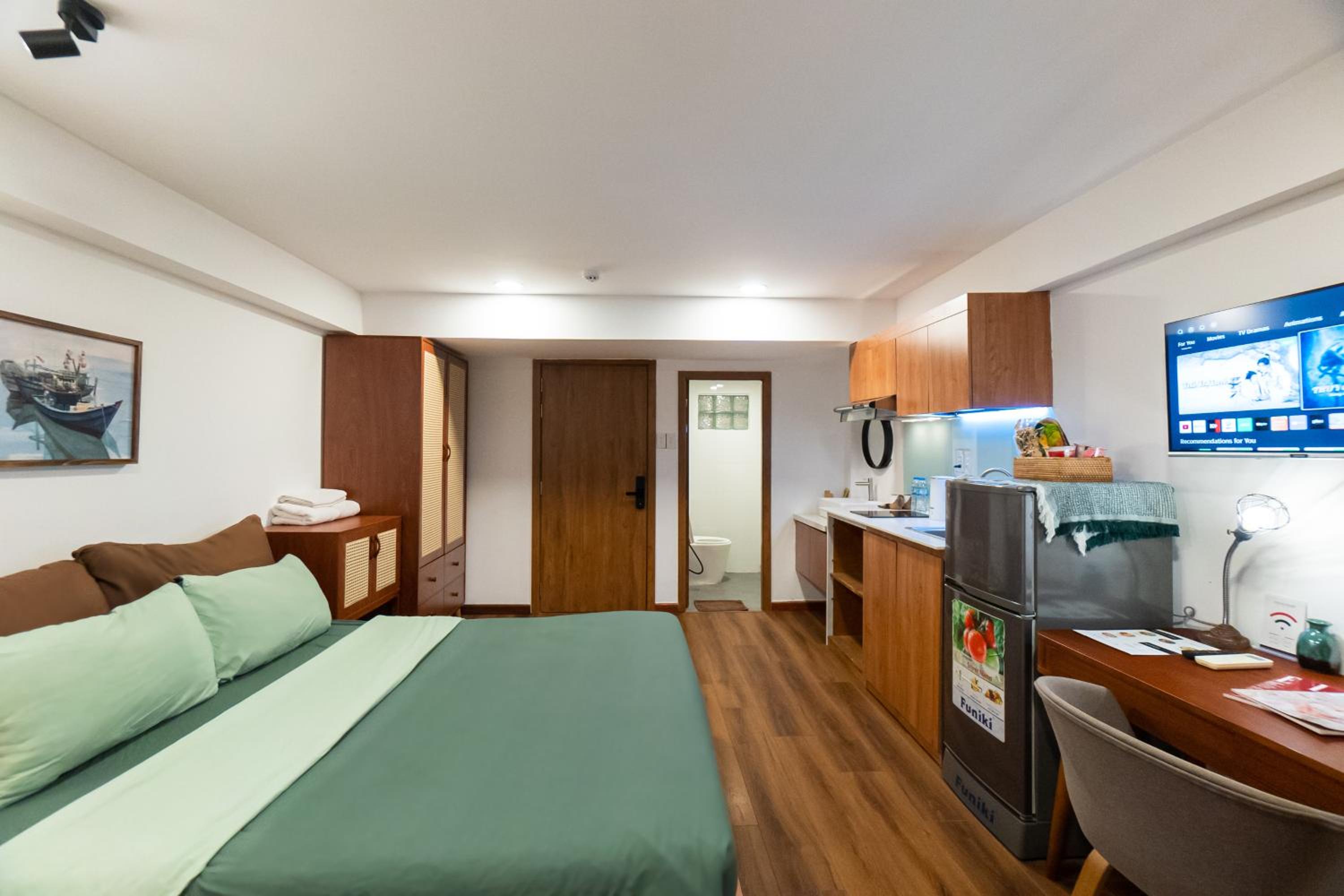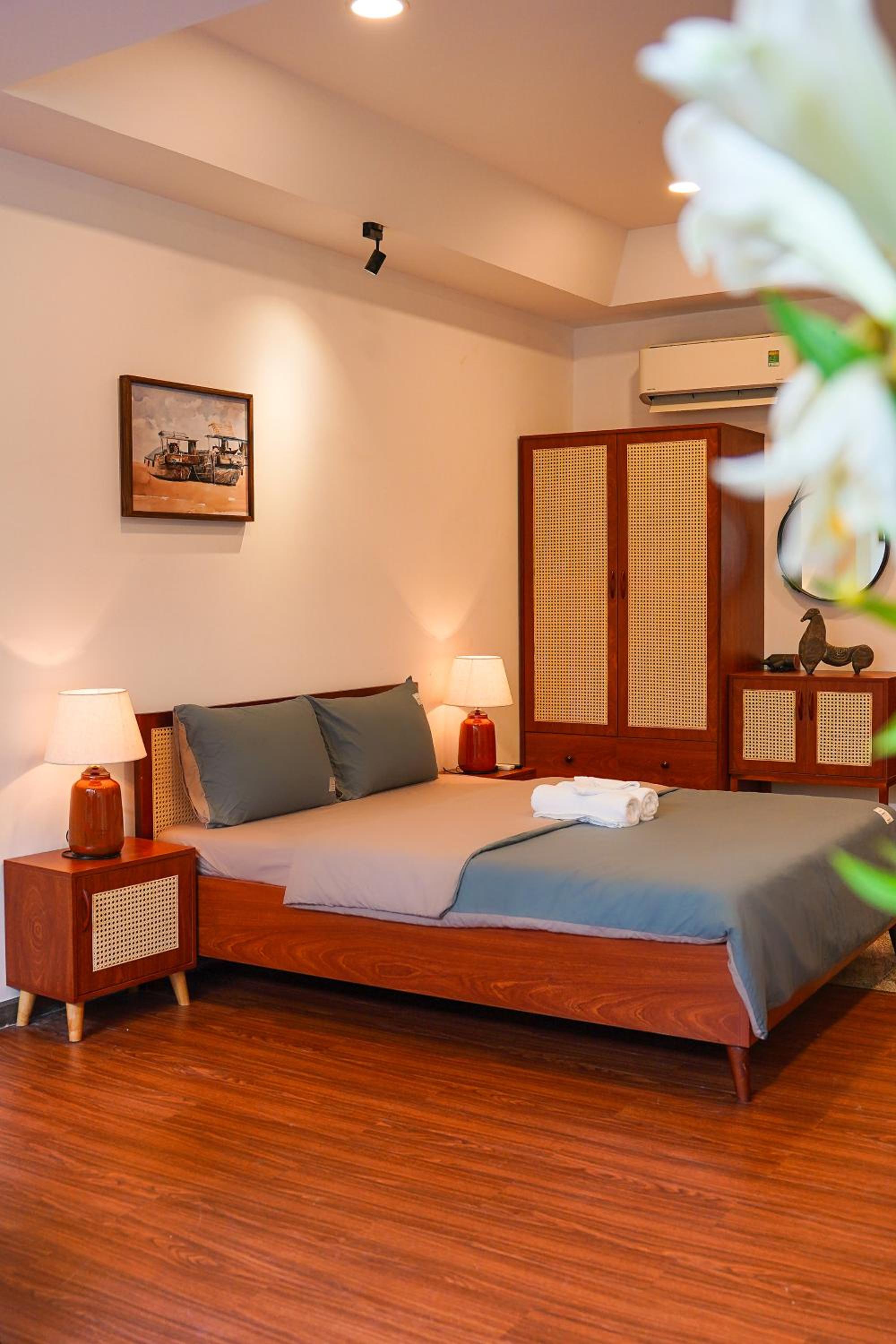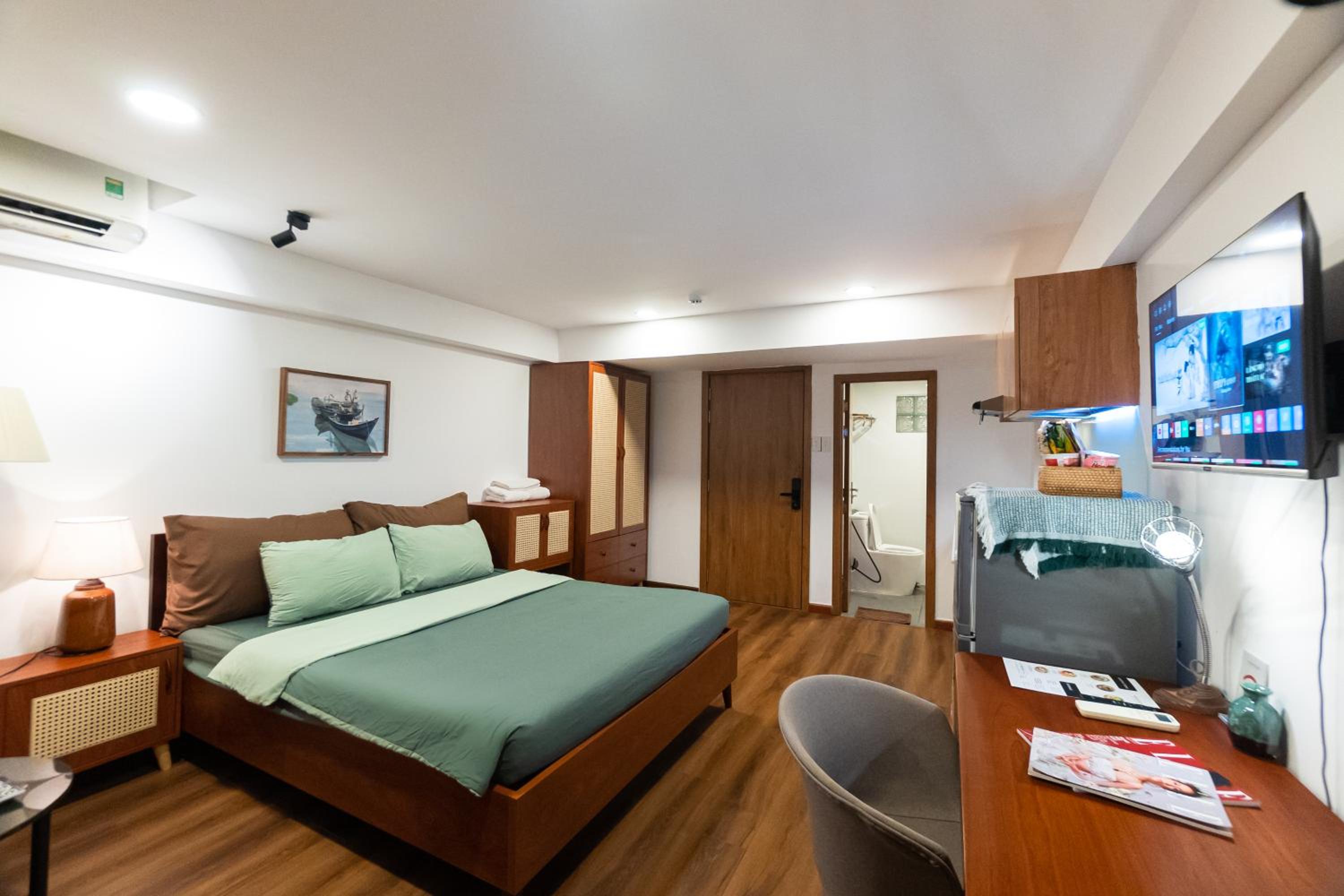 Nexus House Cây Điệp offers a luxurious stay in Ho Chi Minh City, boasting garden views and family rooms. The fully equipped kitchen, flat-screen TV with streaming services, and private bathroom with bathrobes ensure a comfortable stay. Guests can enjoy free WiFi and some rooms even feature a terrace. Bed linen and towels are provided in every unit, adding to the convenience.