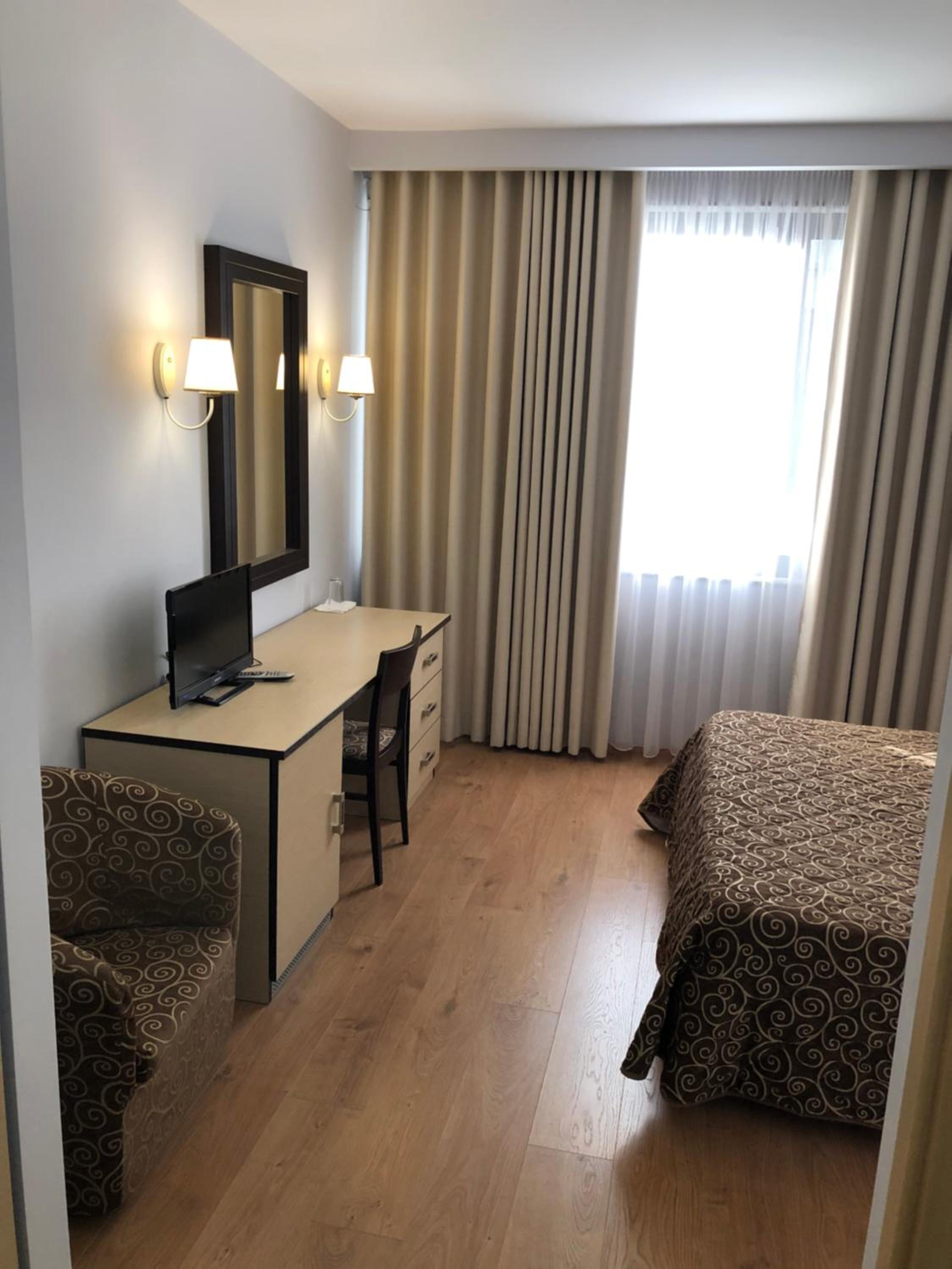 Το δωμάτιο δυστυχώς και το μπάνιο ήταν σχετικά λίγο βρώμικα δεν διέθετε ένα δεύτερο χαρτί υγείας..Τα κρεβάτια ήτανε πάρα πολύ μικρά για ένα άτομο ύψους 1,75 τα πόδια μας κρεμόντουσαν από το κρεβάτι. Έμπαινε το φως υπερβολικά κάτω τις πόρτες. Το πρωινό για τεσσάρων αστέρων ξενοδοχείο πολύ έλειπες δεν είχε σχεδόν τίποτα και ήταν όλα μπαγιάτικα. Διαθέτει πάρκινγκ αλλά έχει πάρα πολύ περιορισμένο χώρο.Τα αυτοκίνητα πραγματικά τα βάζουνε το ένα πάνω στο άλλο ζητάνε να αφήσεις τα κλειδιά εμείς δεν τα αφήσαμε αλλά υπάρχει κόσμος που αφήνει τα κλειδιά στον άνθρωπο που είναι κάτω ώστε να το μετακινεί για να μπορούν να φύγουν τα άλλα αυτοκίνητα.