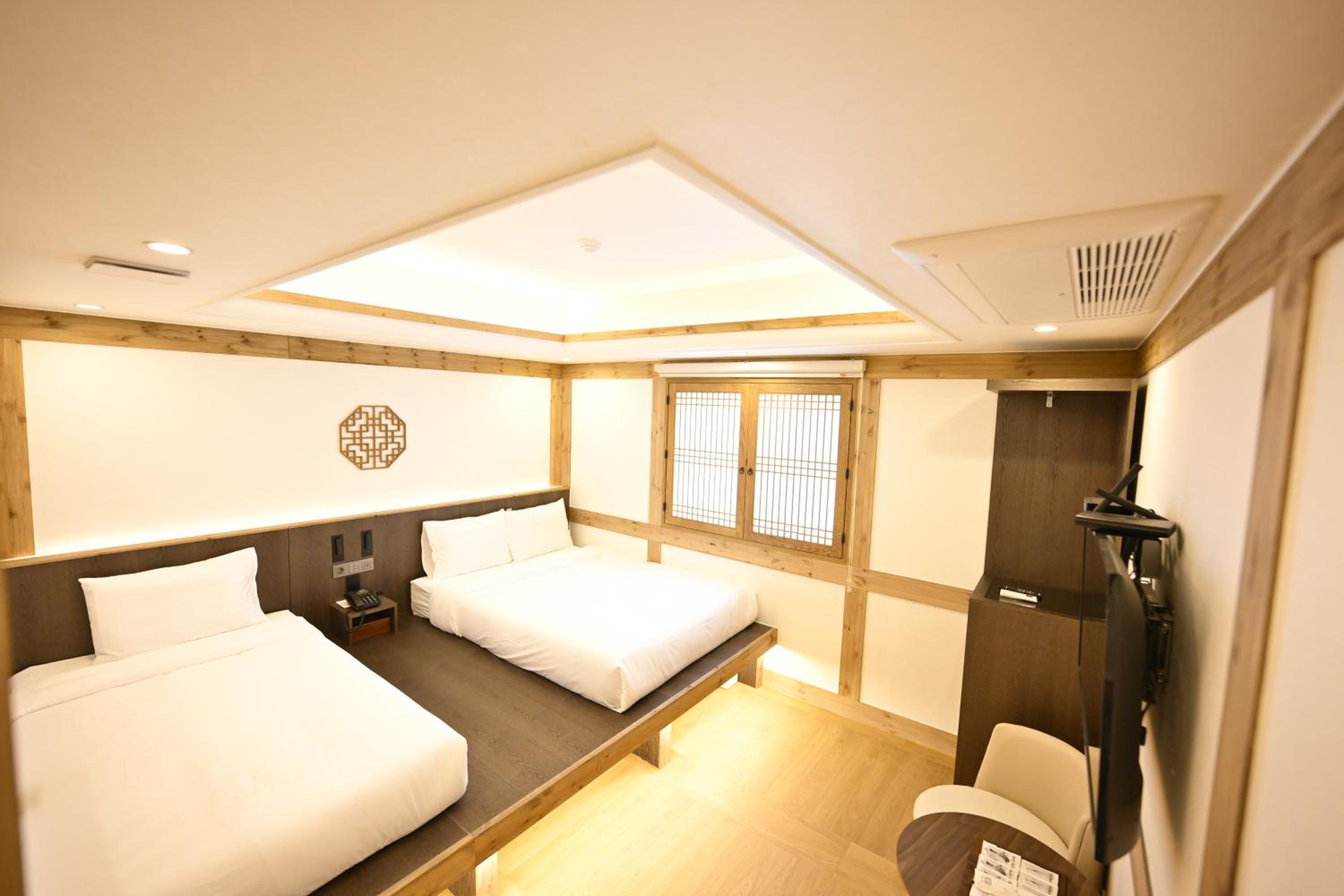 立地が安国で最寄り駅までも差ほど遠くなく韓屋風で韓国に来た事を実感出来る。ホテル自体も明るく清潔で朝食付きはお得感がある。