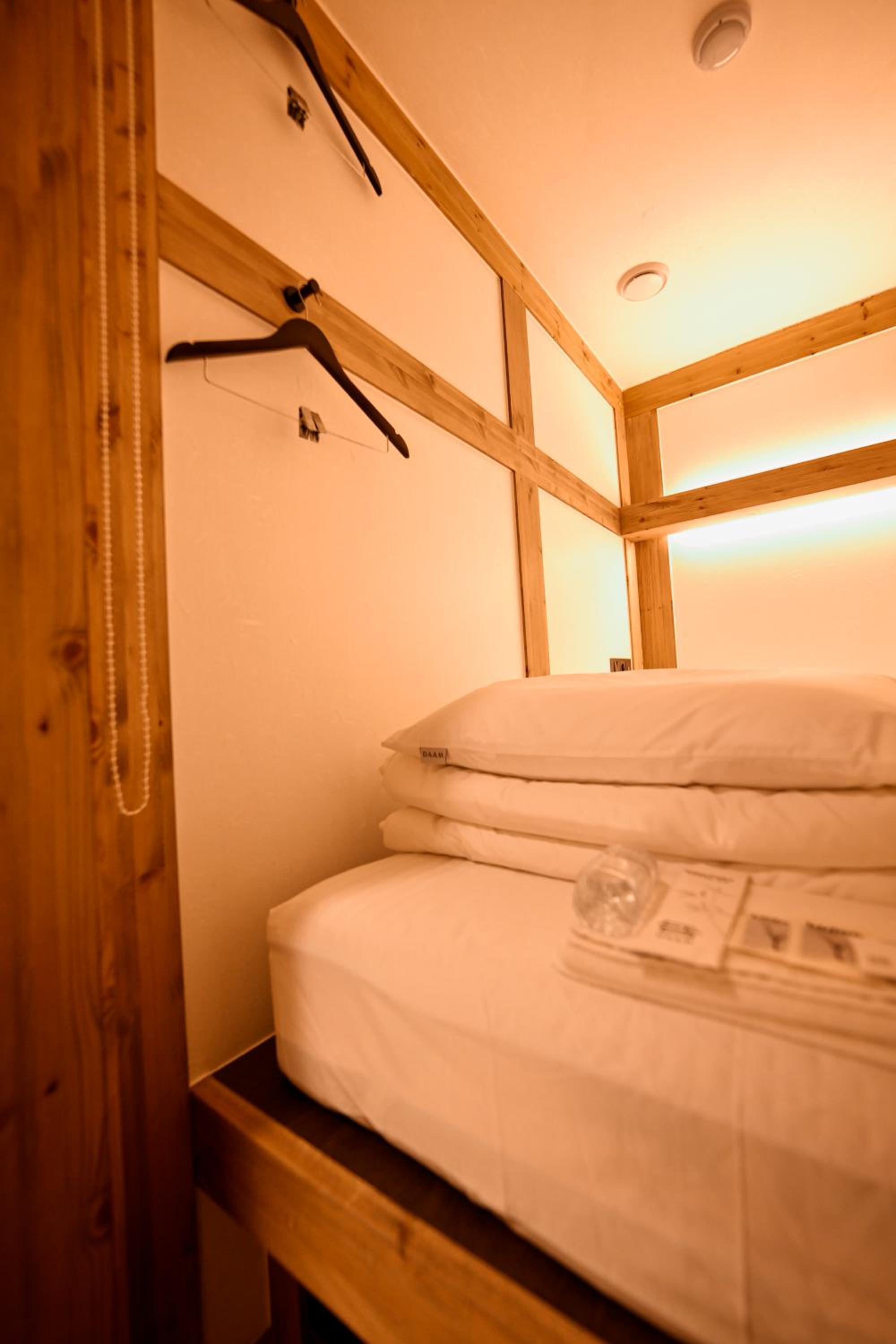 The light to the sleeping quarter is at the back , not in front. You need to climb onto the bed to turn on the light.