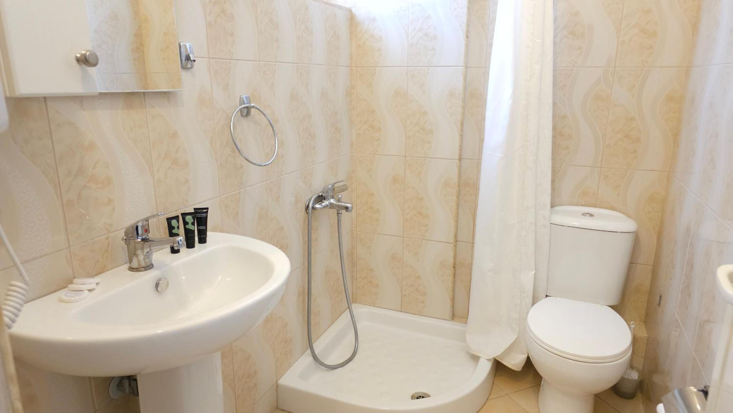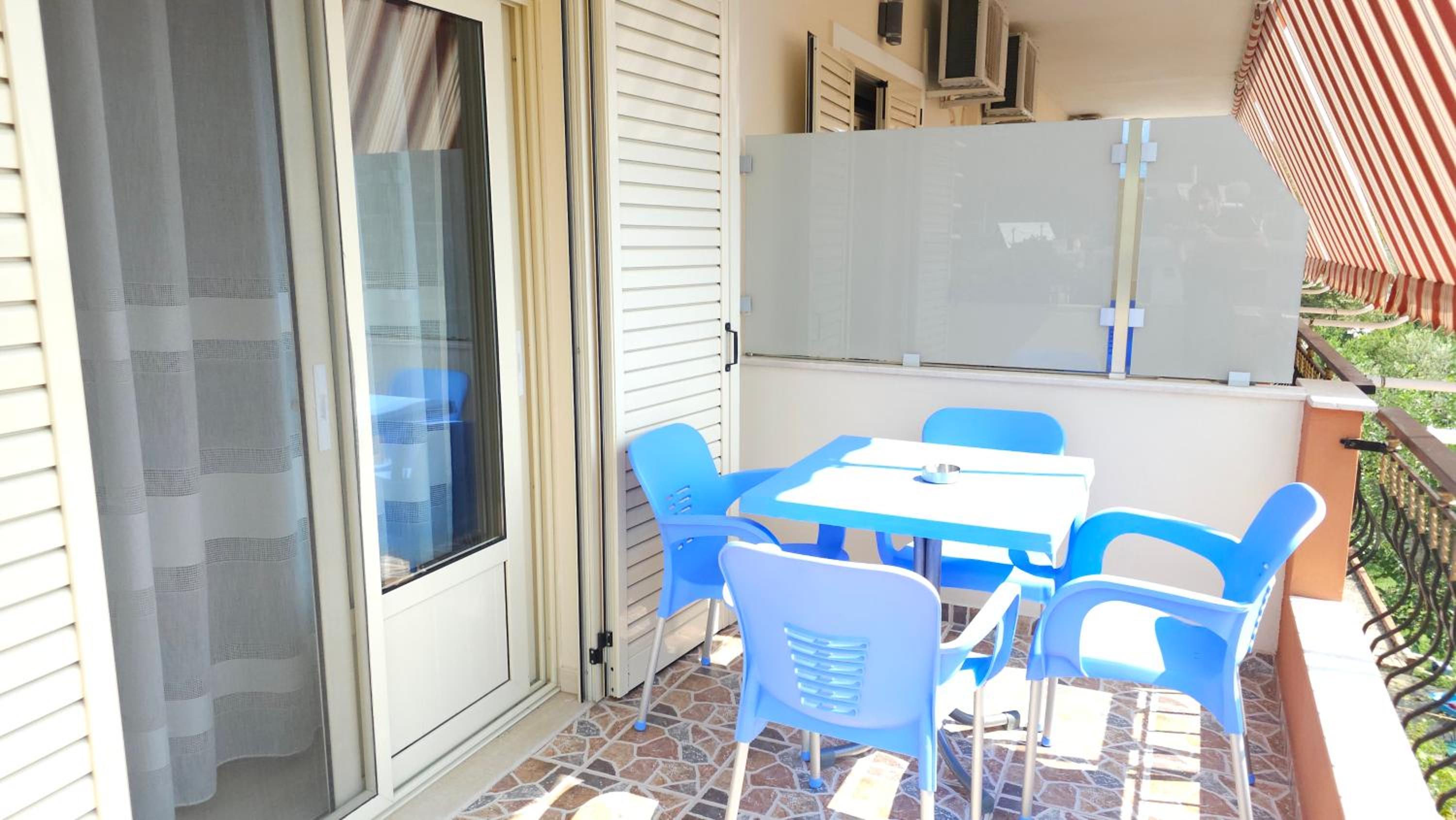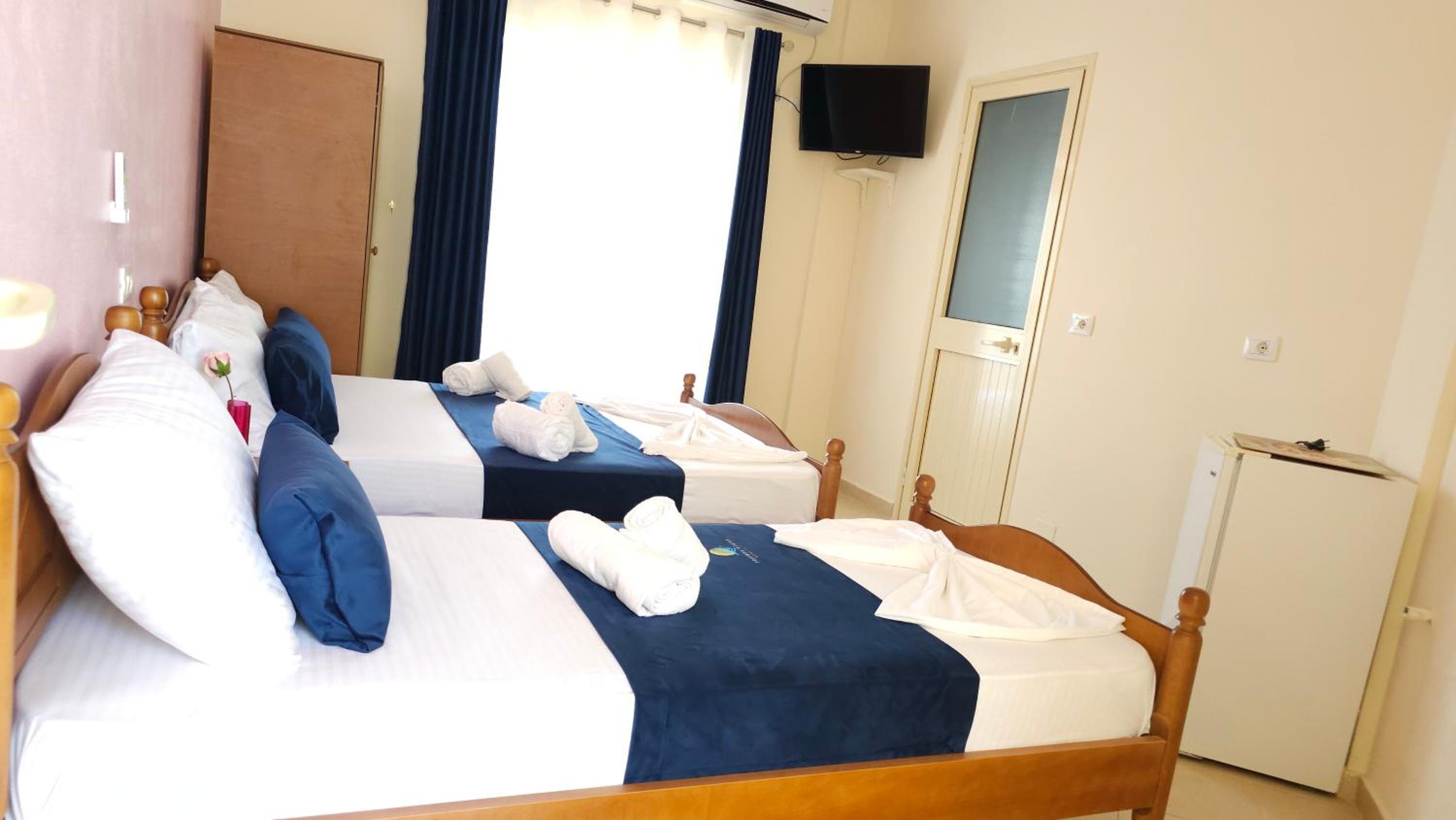 Very good hotel, spacious rooms and everything a family needs. Large balcony with a very beautiful view. The host who welcomed us was very kind and ready to help out. There is also a minimarket and a first aid ambulance near the hotel. It is very close to the village and 15-20 minutes on foot to go to the beach. The rooms and the hotel outside are very clean.