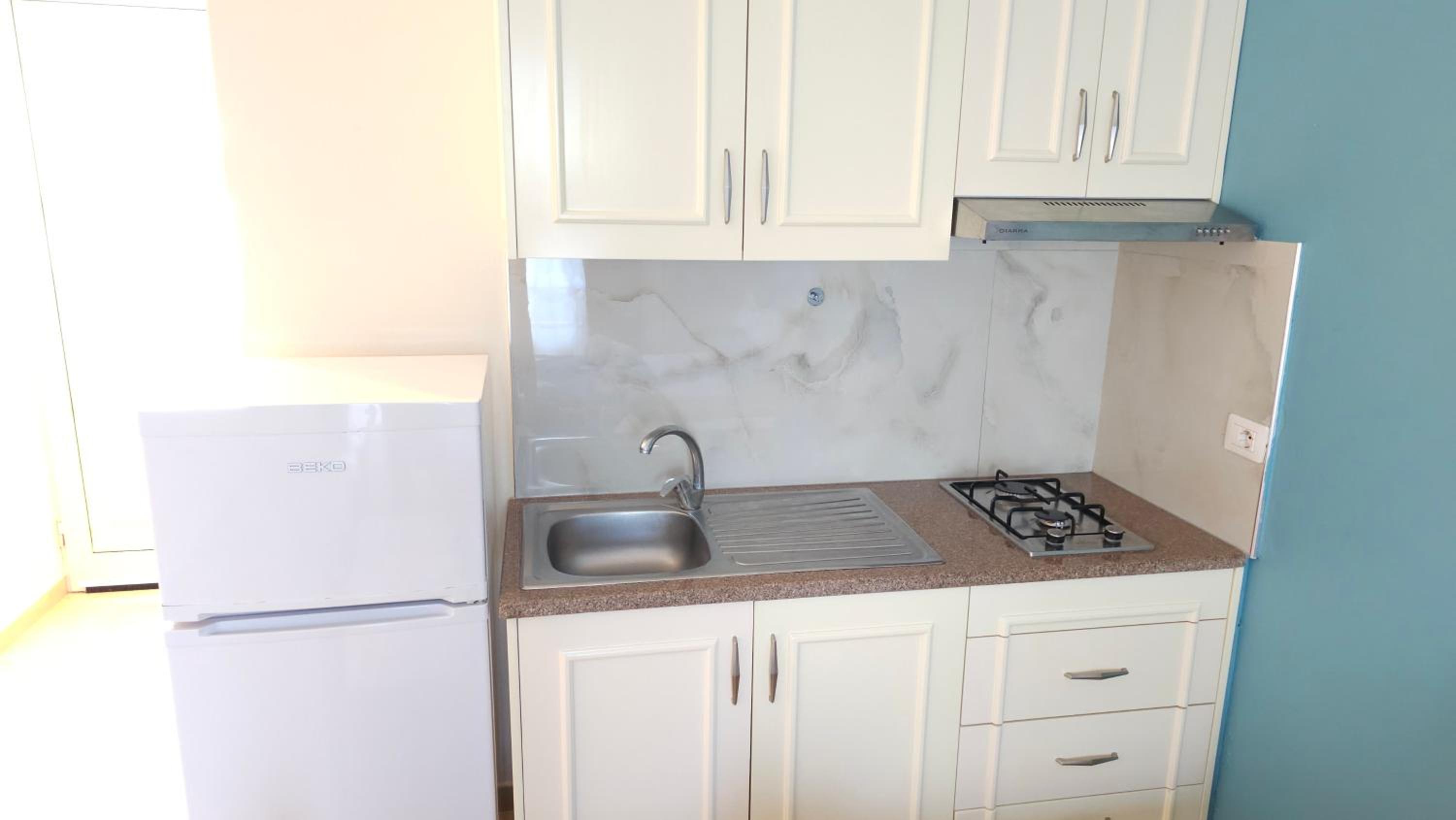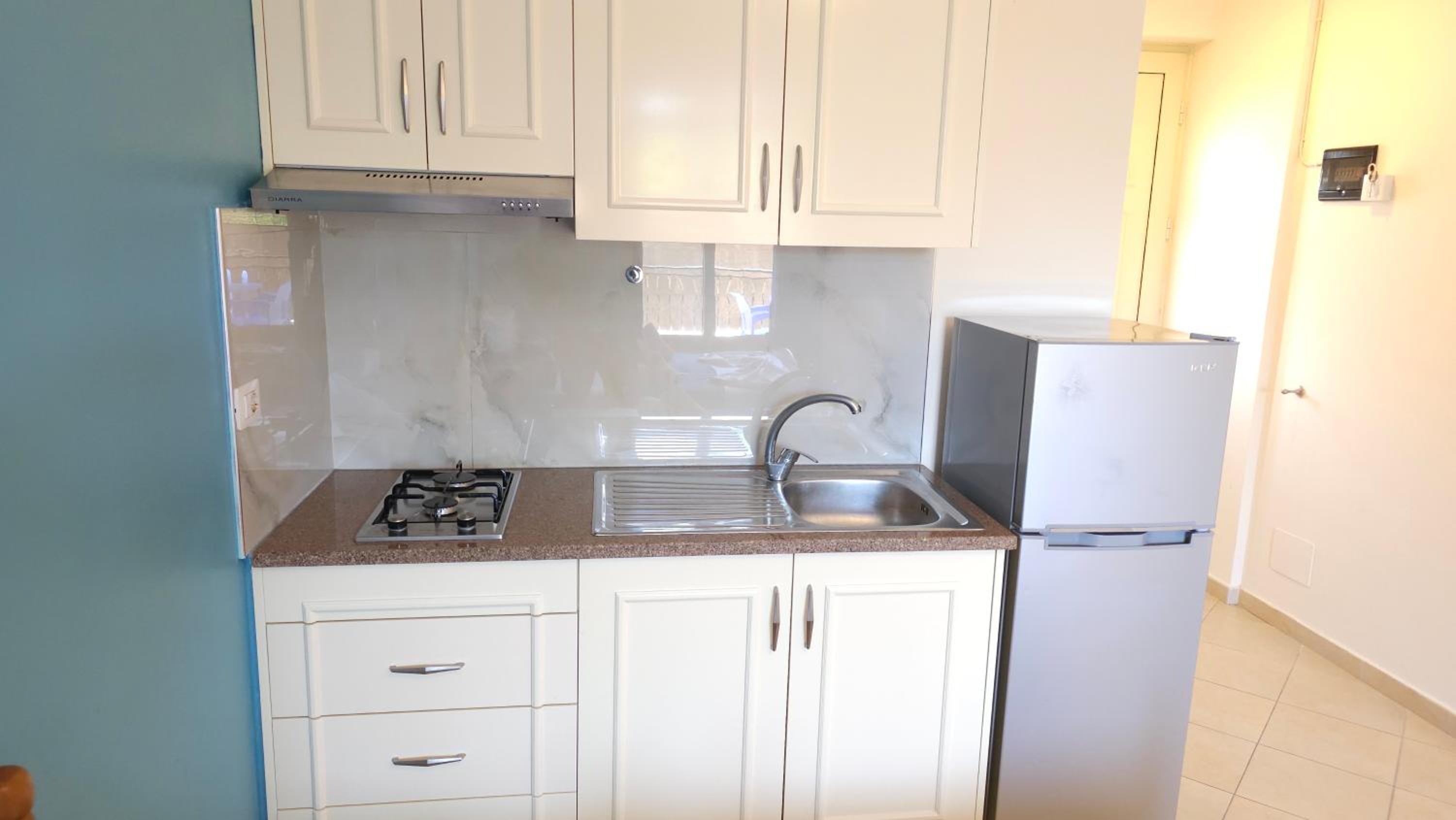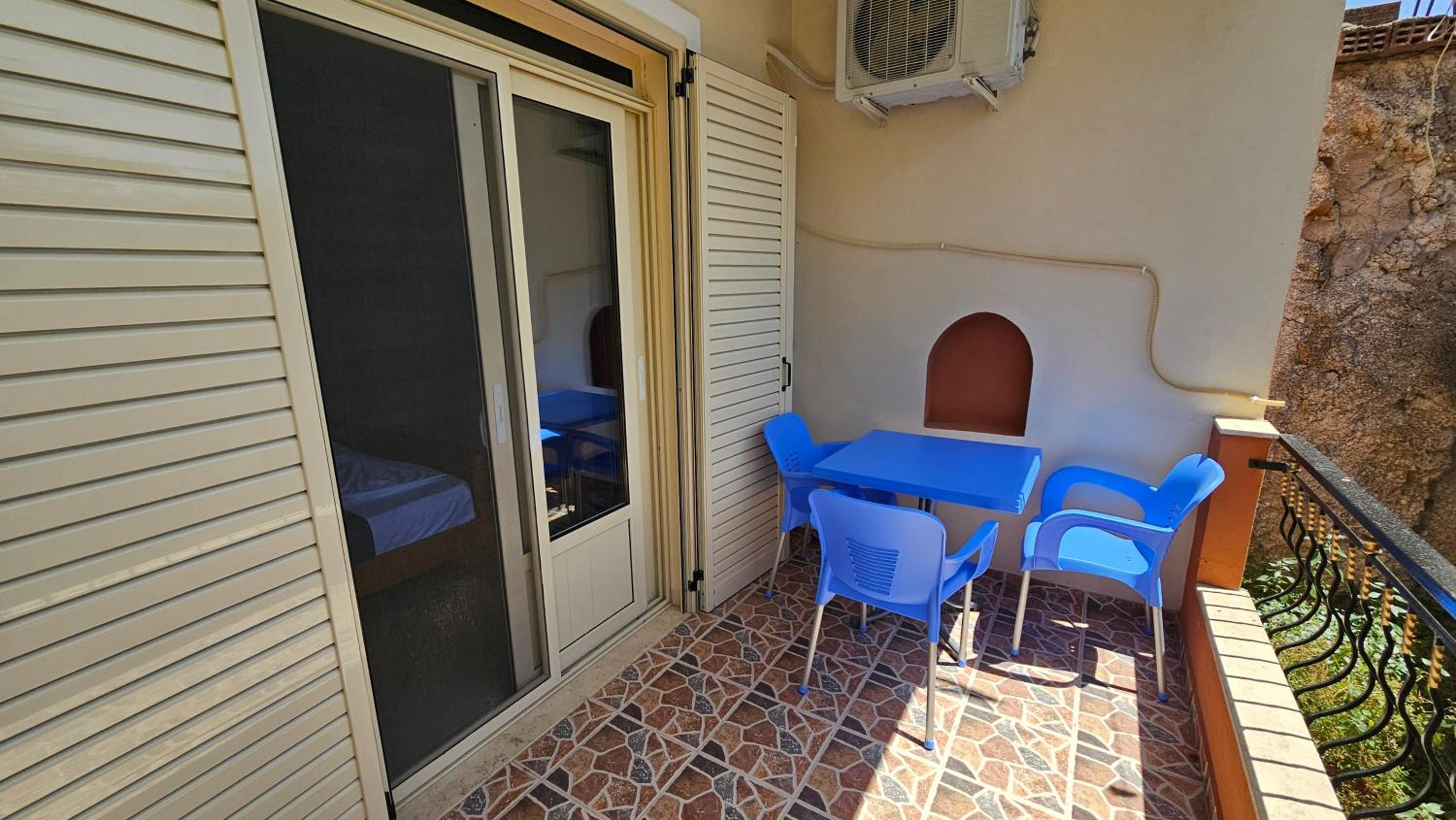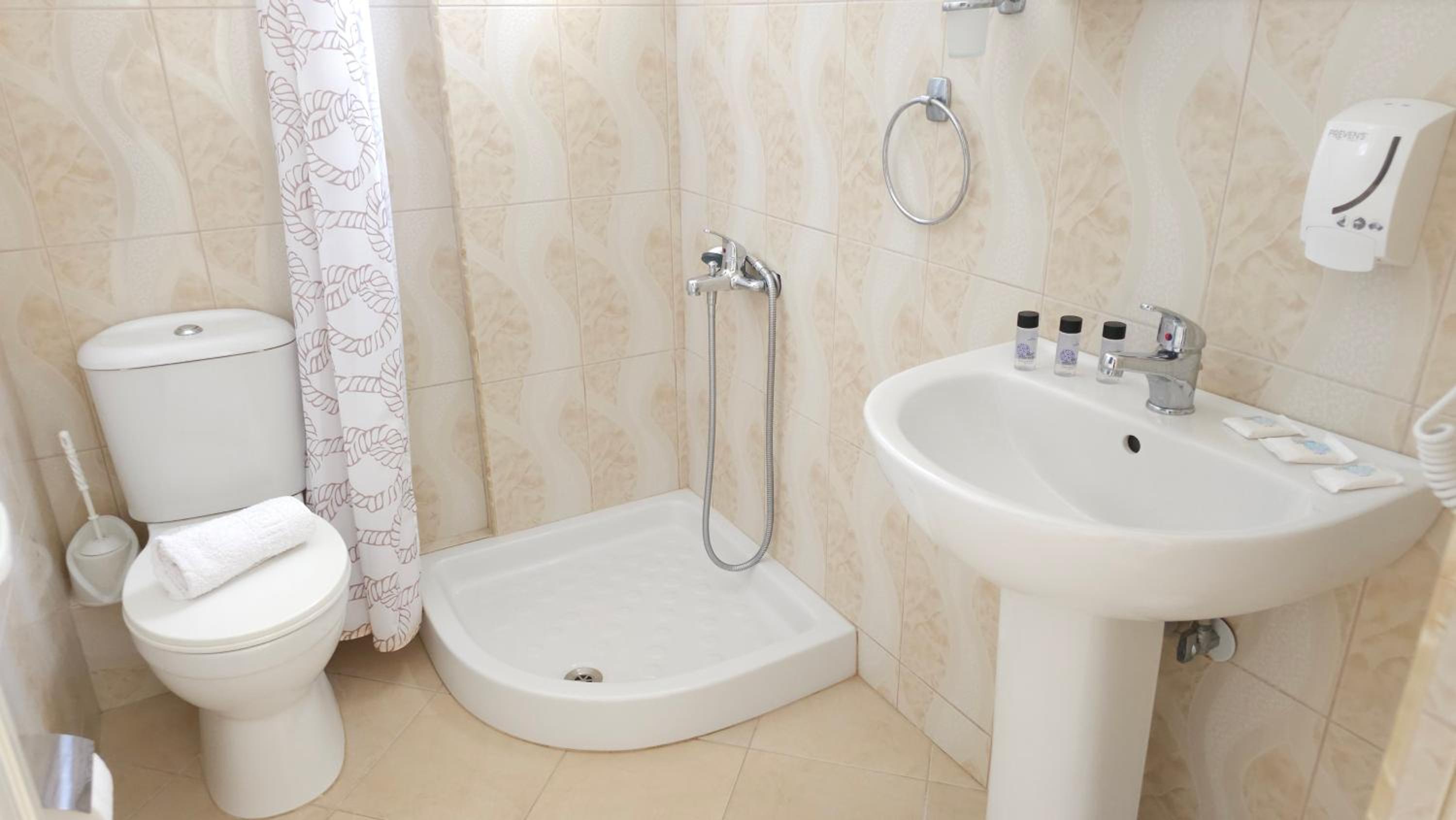Very good hotel, spacious rooms and everything a family needs. Large balcony with a very beautiful view. The host who welcomed us was very kind and ready to help out. There is also a minimarket and a first aid ambulance near the hotel. It is very close to the village and 15-20 minutes on foot to go to the beach. The rooms and the hotel outside are very clean.