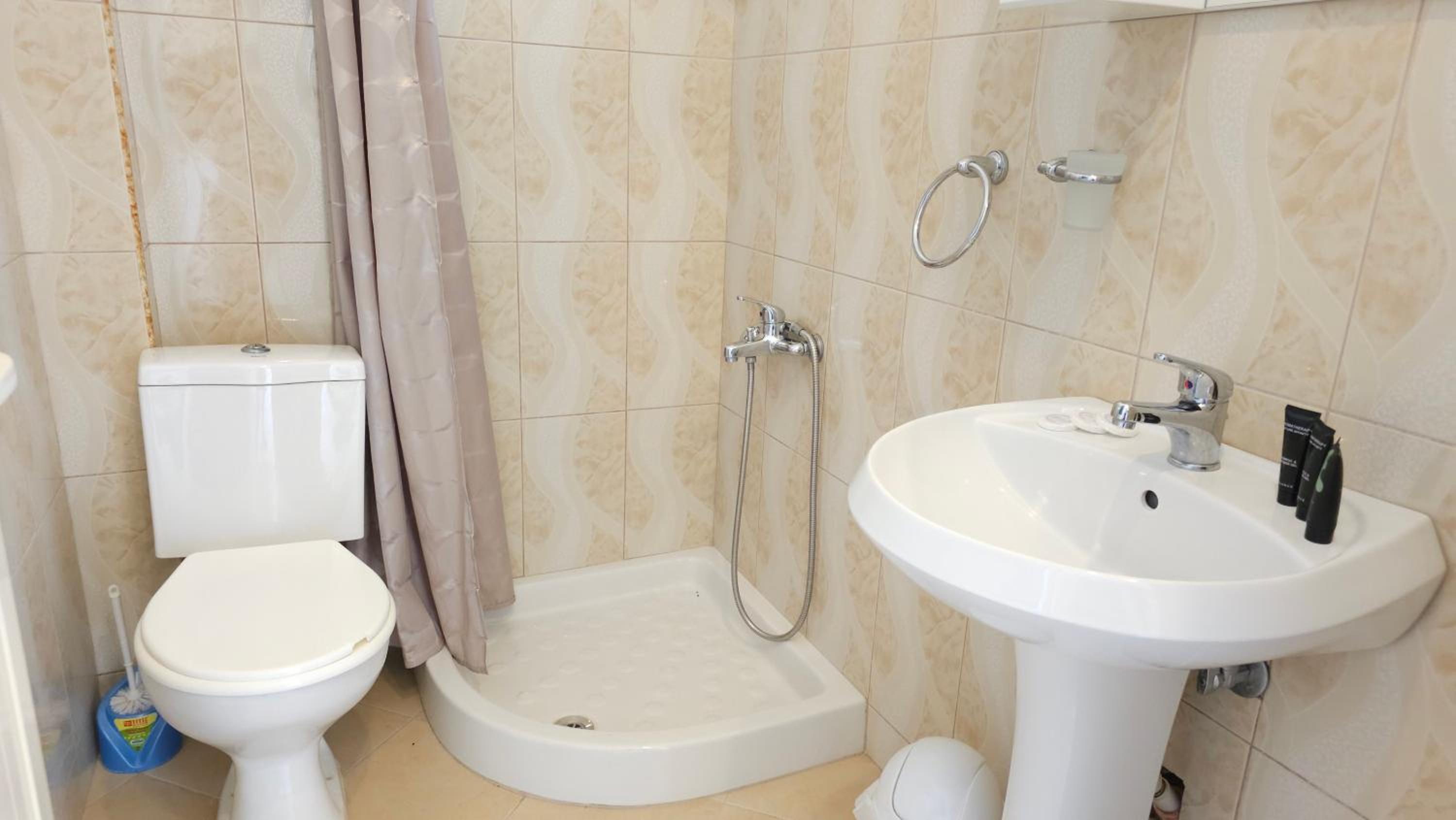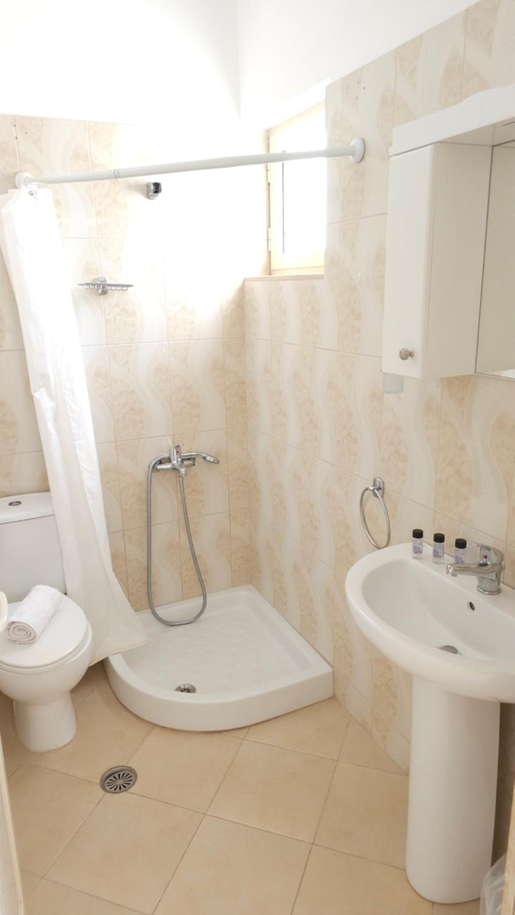 My family and I encountered a very friendly and helpful host. He helped us during check in & check out and also recommended us very nice places to visit in and near Borsh. The hotel was very clean and equipped with all the necessary facilities. Each of the rooms that we booked had a very spacious balcony with great view to the sea. The building is very easy reachable from the main street. Two road signs will lead you there. It is also located in a quite neighborhood of Borsh, not very far away from the sea, around 15-20 min walk distance and just 2-3 min by car. A market is located also very close to the hotel where you can buy anything necessary.