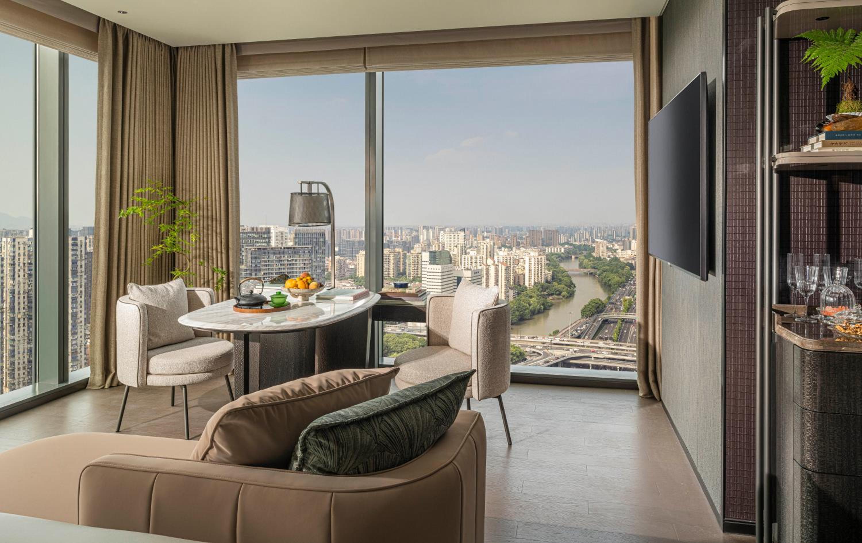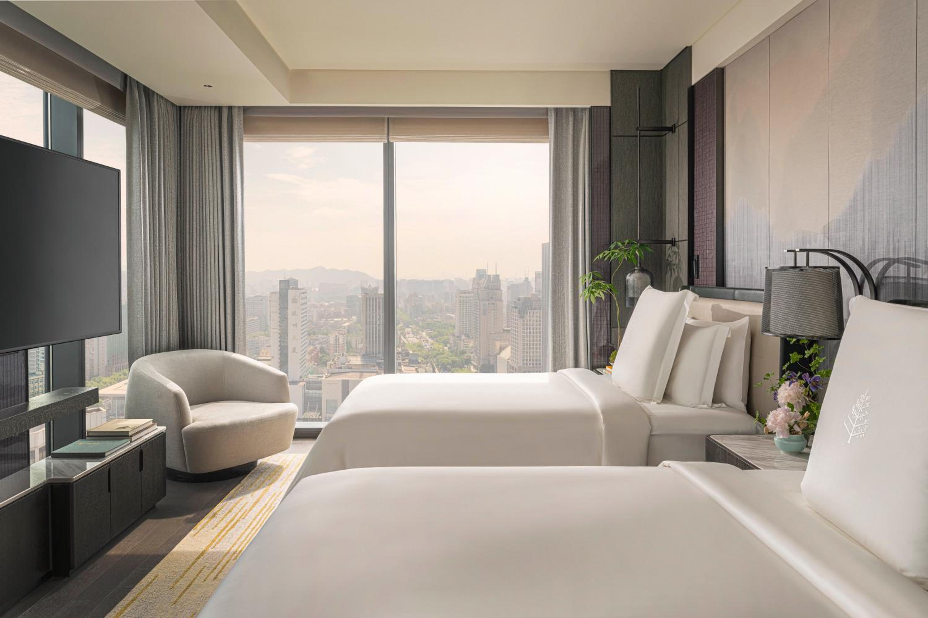 Step into your elegant guest room at Four Seasons Hotel Hangzhou at Hangzhou Centre and be greeted by breathtaking river views. The rooms are thoughtfully appointed with modern conveniences such as a coffee machine, plush bedding, and a sleek private bathroom.