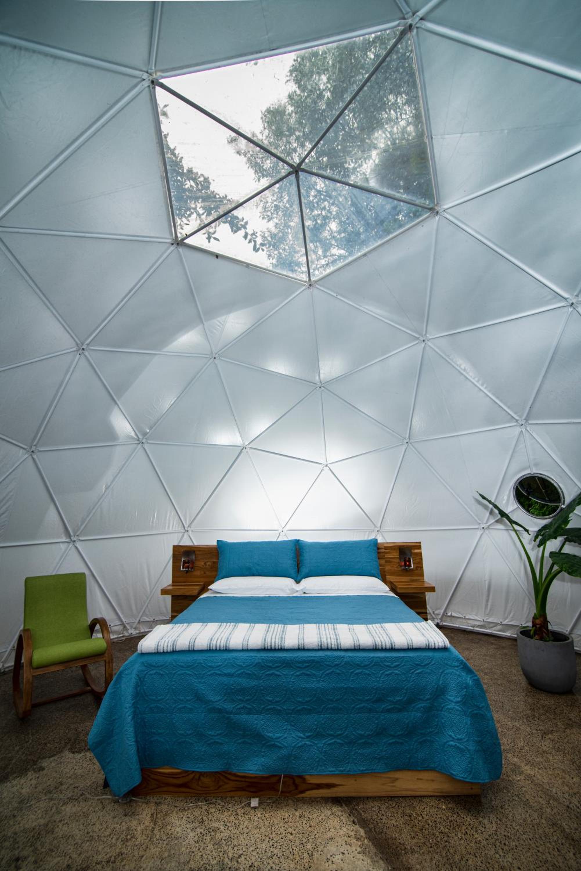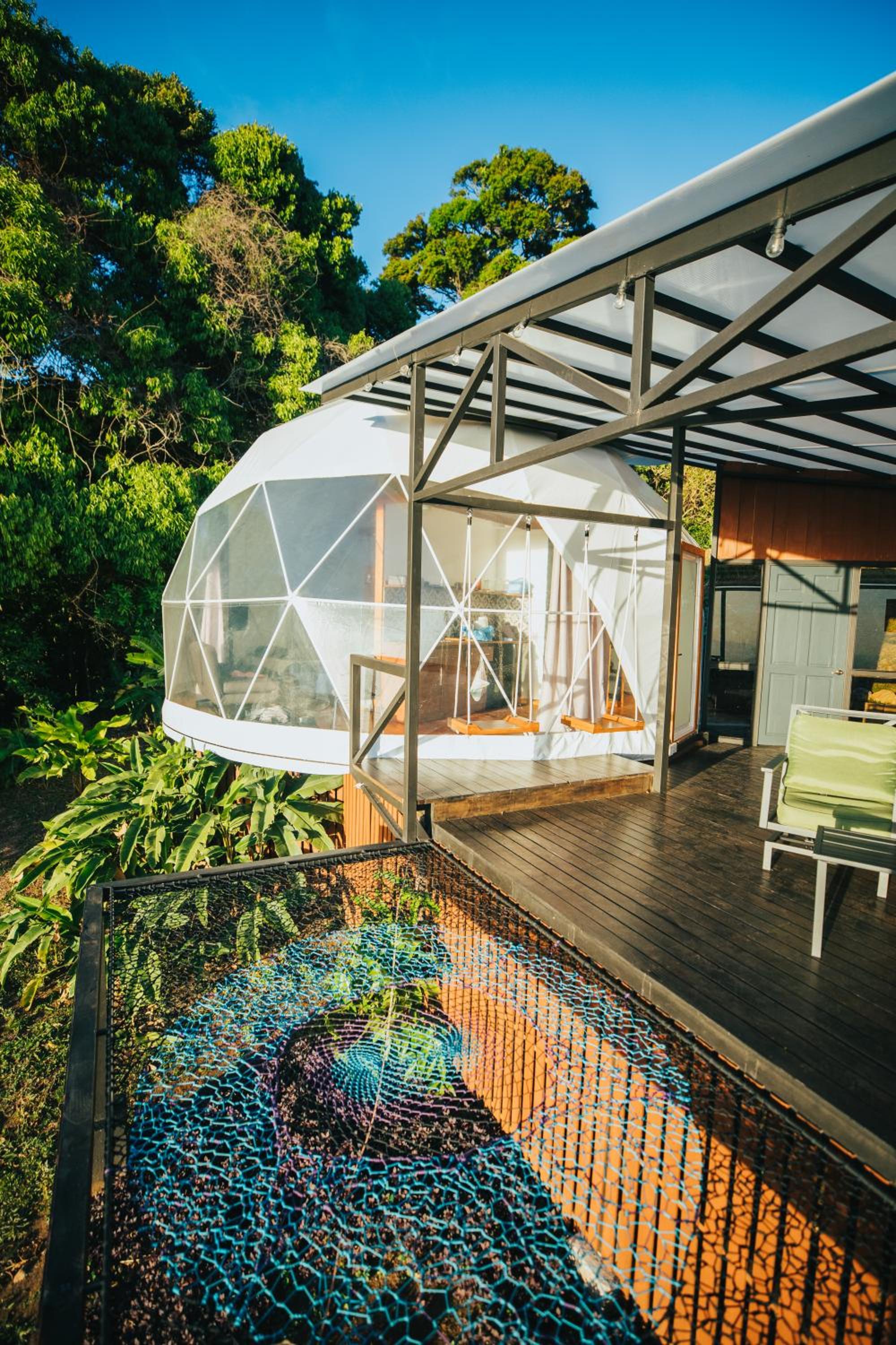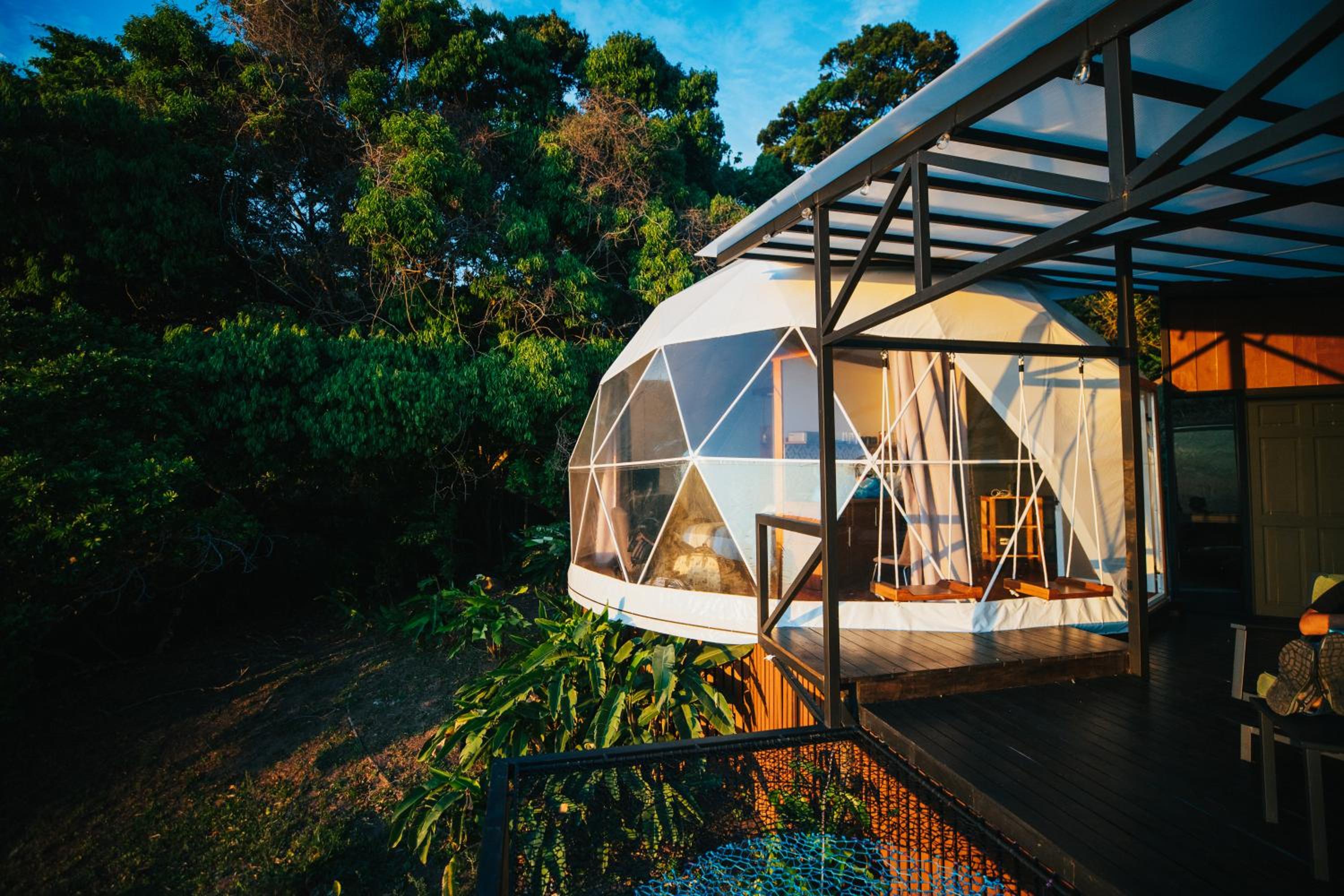 The domed itself is nicely appointed with a decent kitchenette, plates, cutlery and hot plate, and a cool outdoor trampoline. But the domed structure does not appear to be air-tight, and the interior had dozens of insects and mosquitoes when we came indoors after trying the jacuzzi. The door to the dome didnt latch properly, which probably did not help the insect situation.
