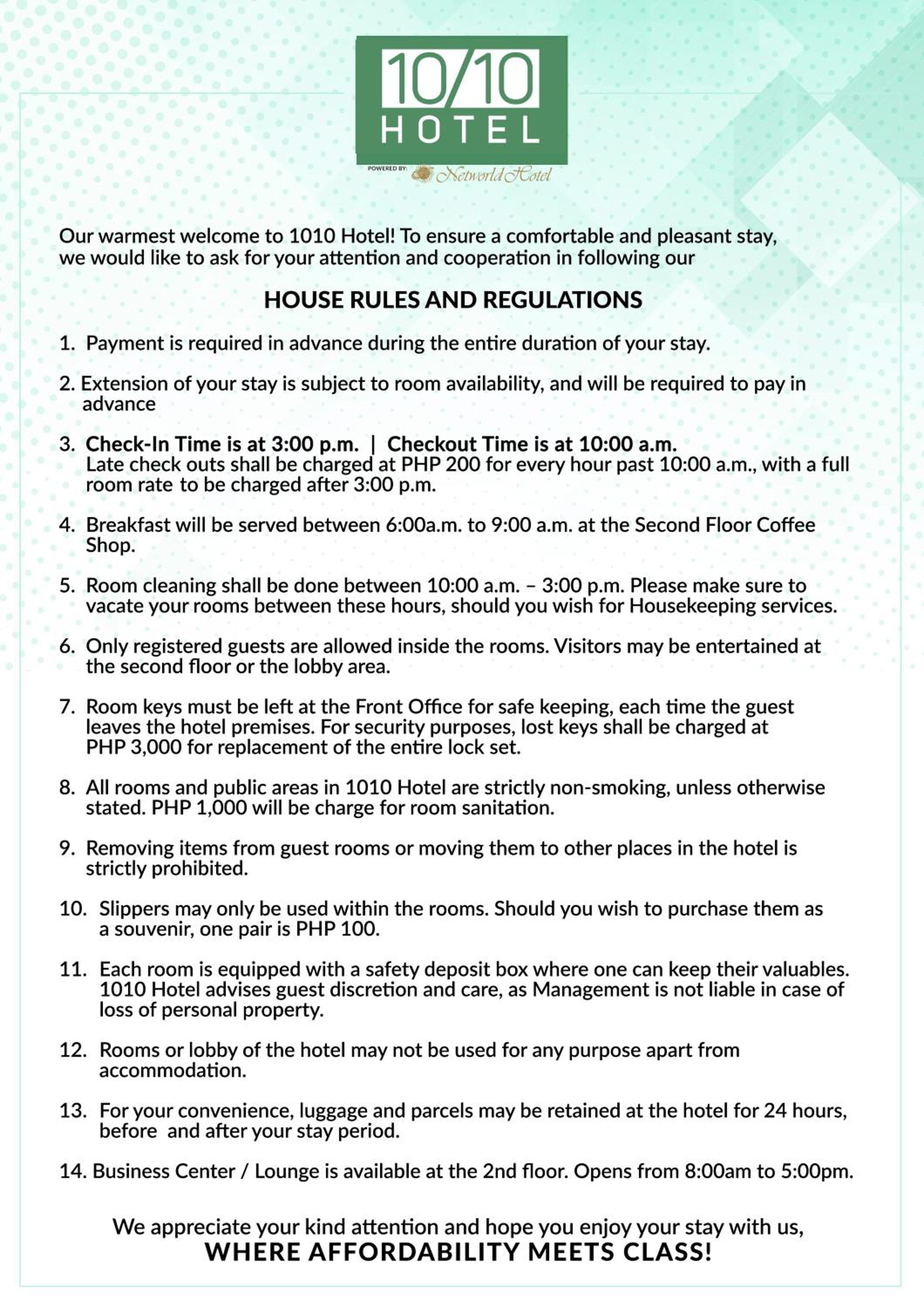 And early checkout (10am) unlike other hotels (12nn)
