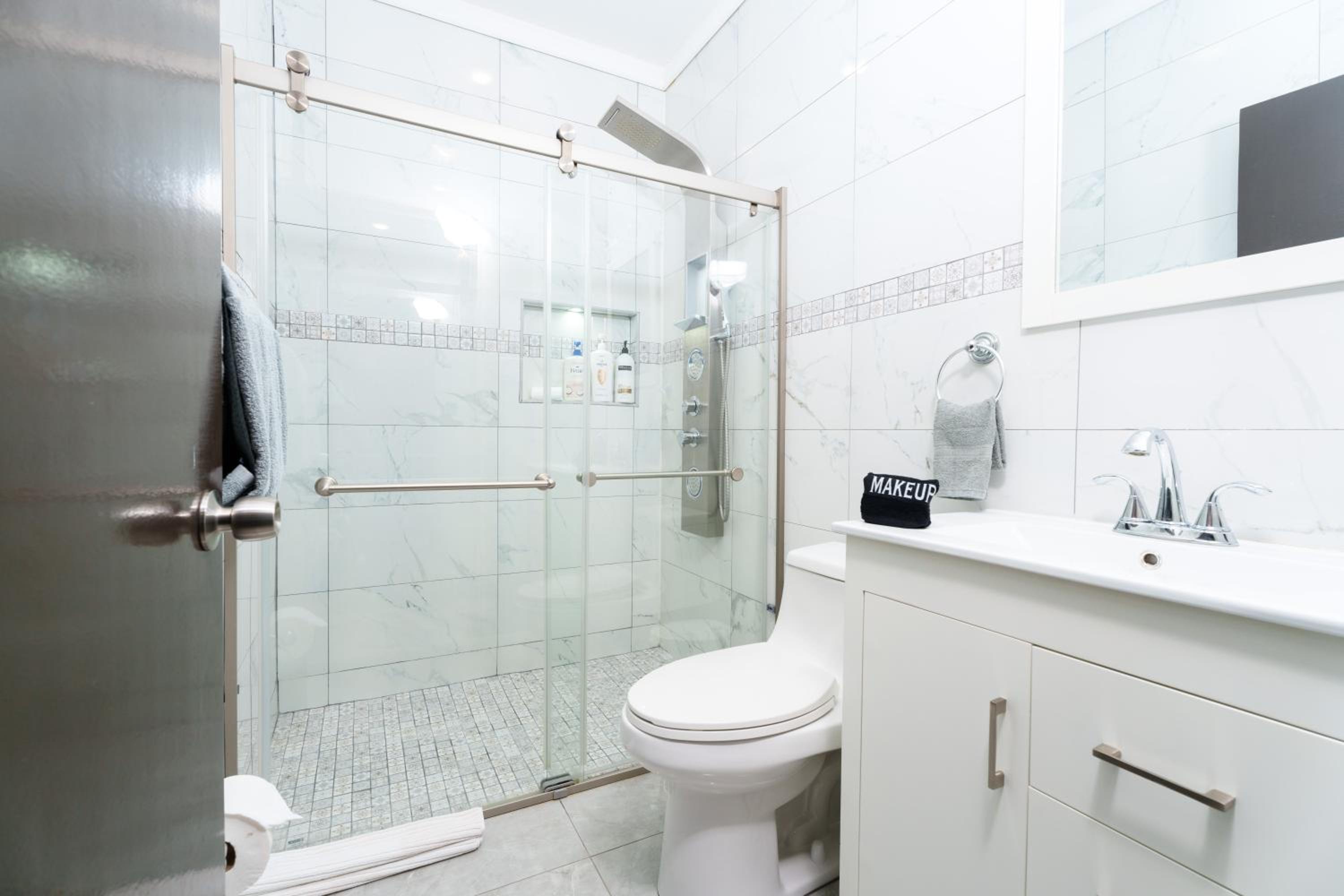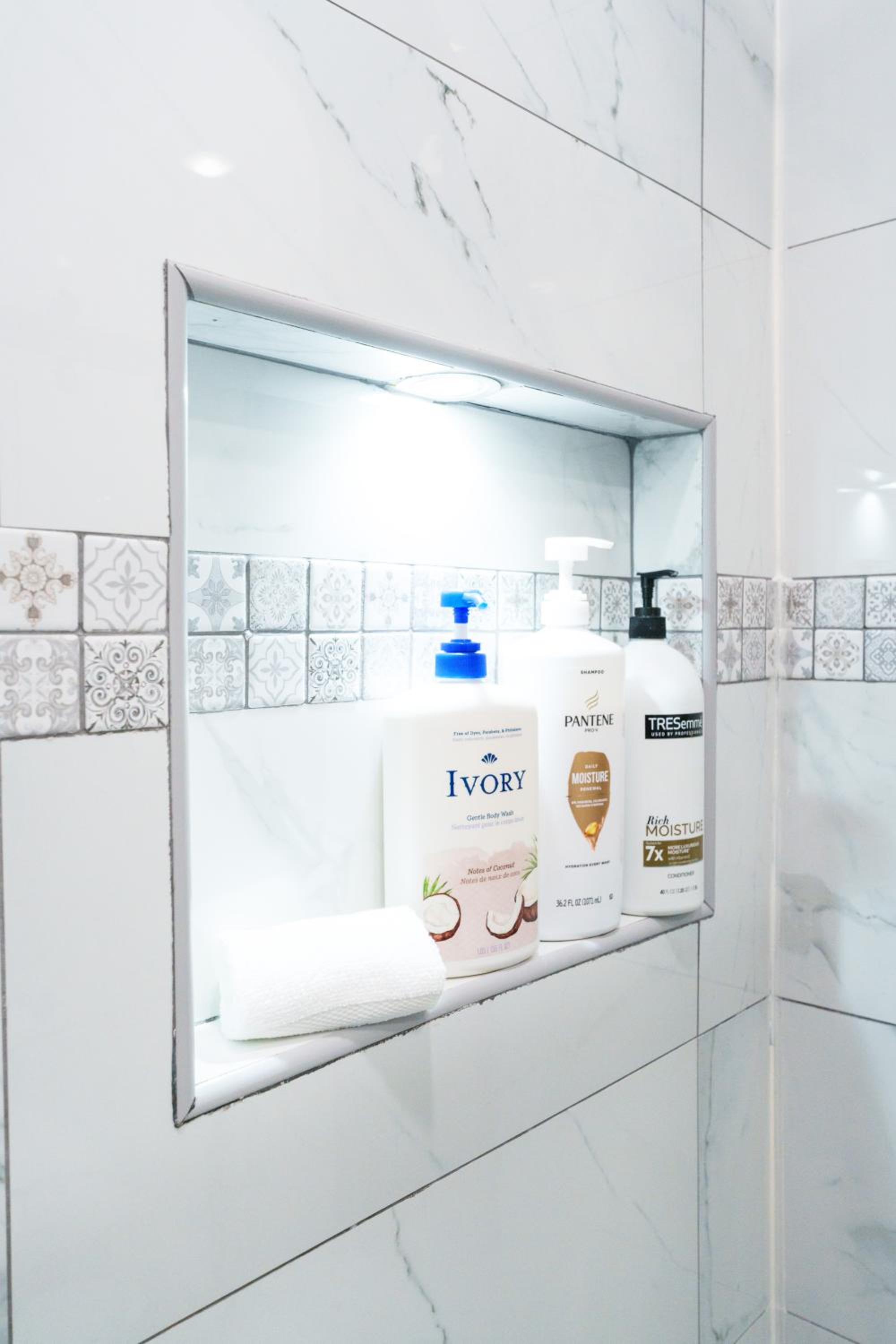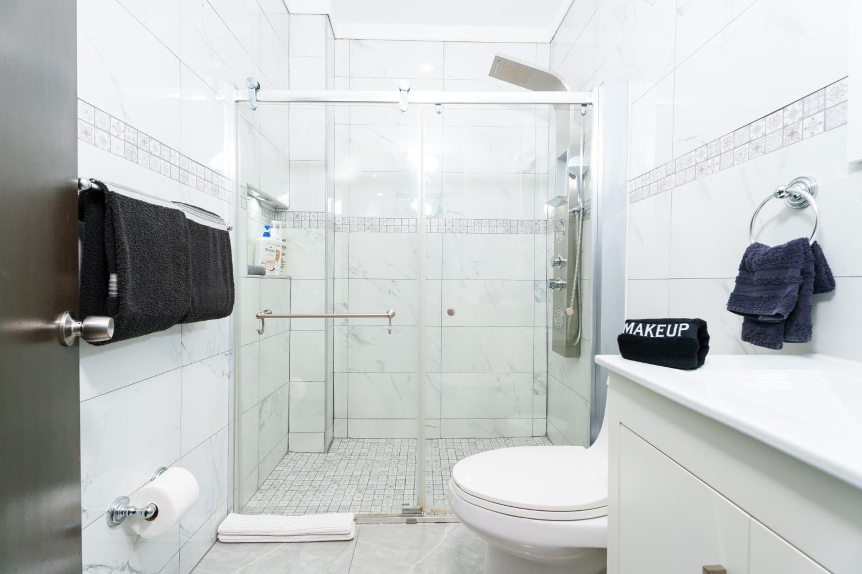 More hooks to hang towels and clothes would be helpful!