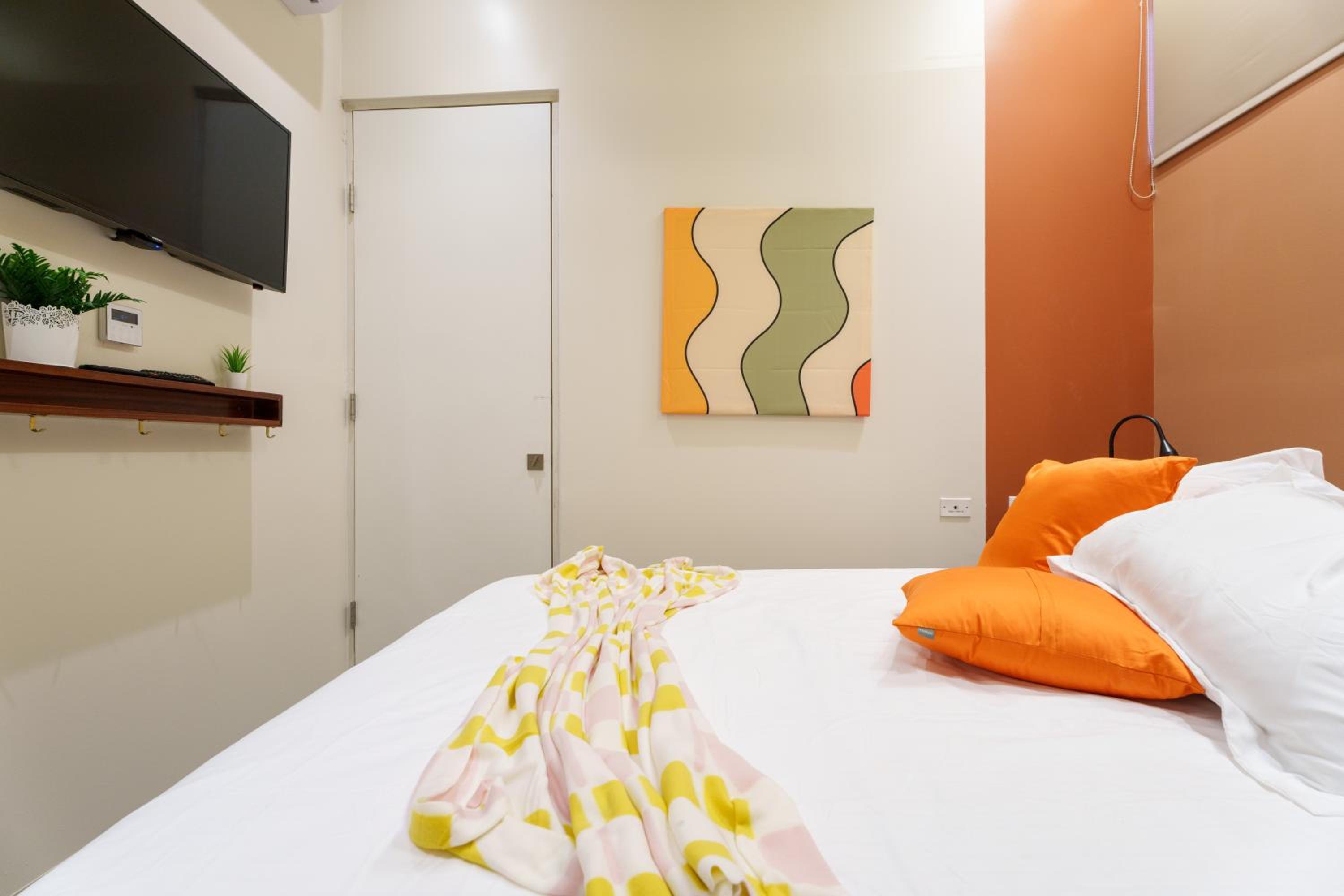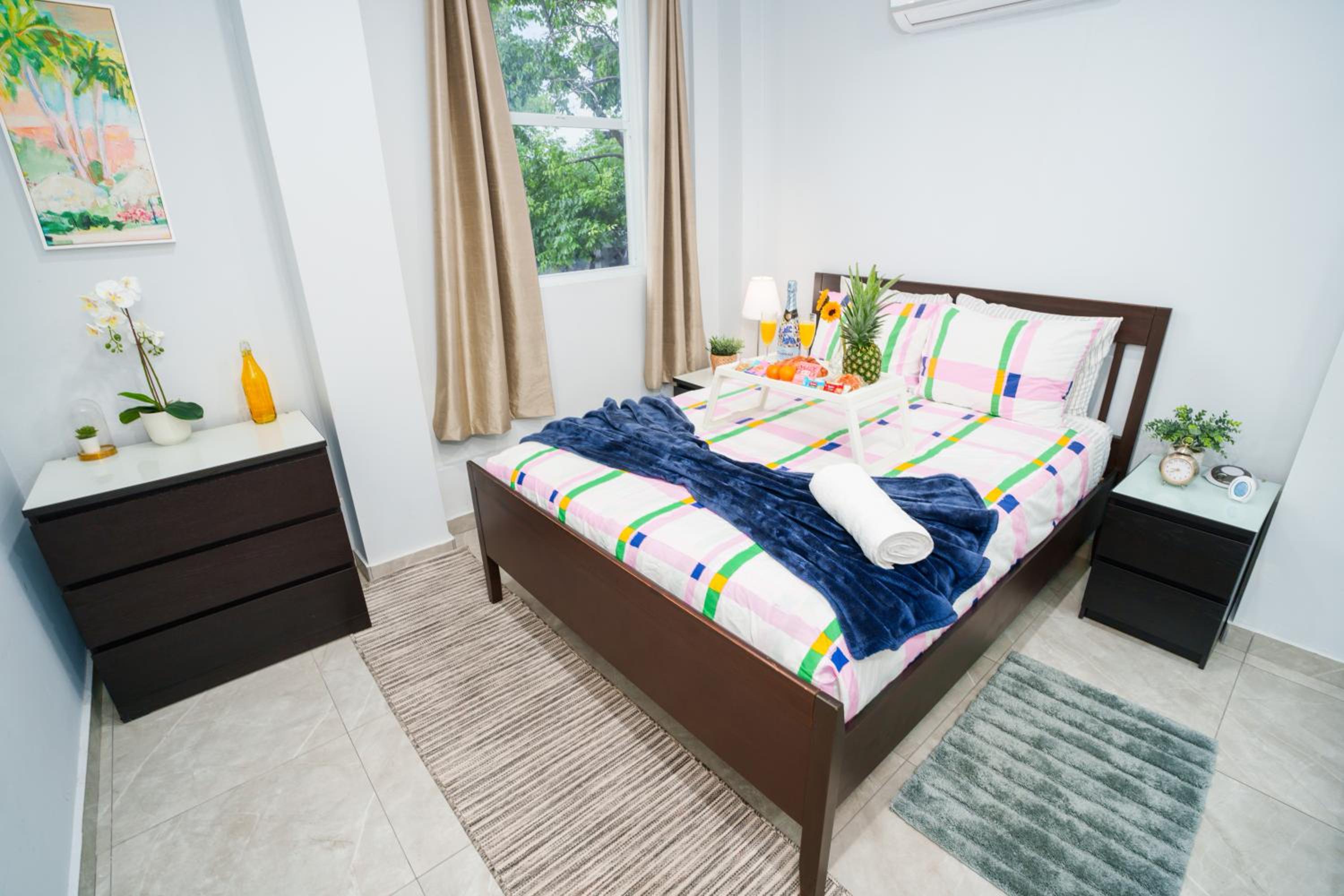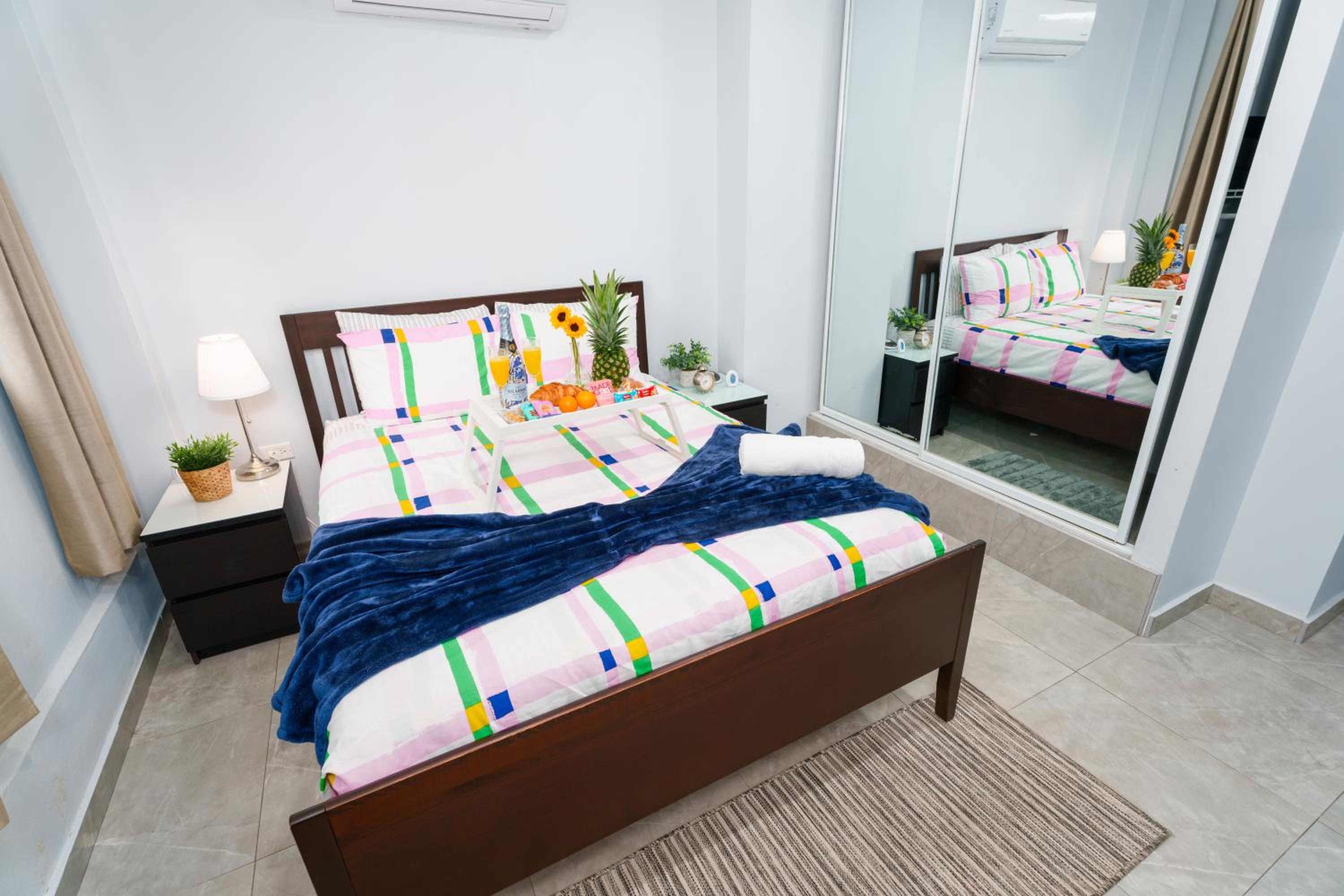 Spacious apartment, 2 bedrooms each with private bathroom. Balcony overlooking the main street. Free water and coffee machine. Places to eat and shop nearby. 10-15 minutes walk to the beach. Selfie room. We only spent 1 night at the property before boarding the cruise ship.