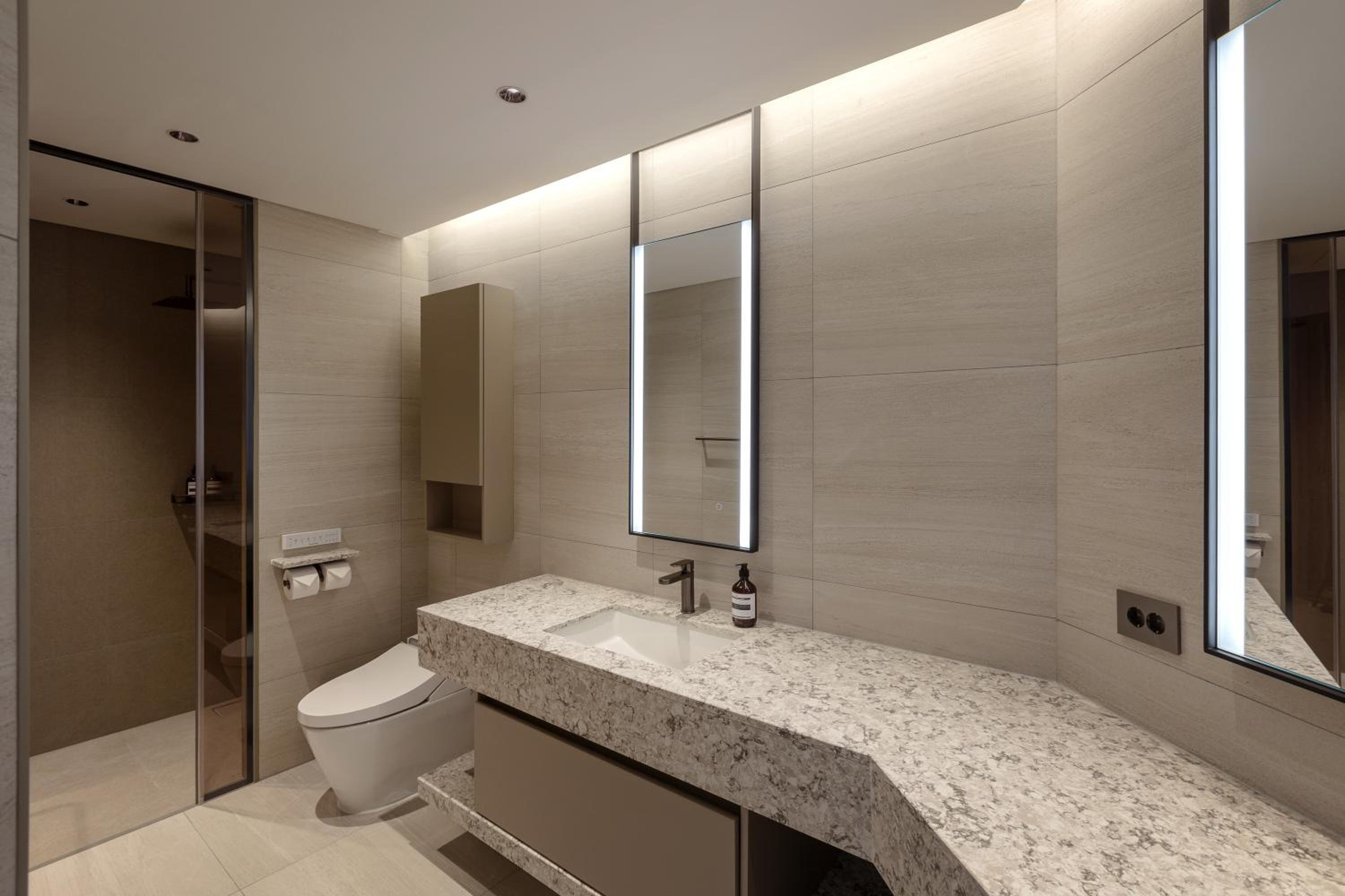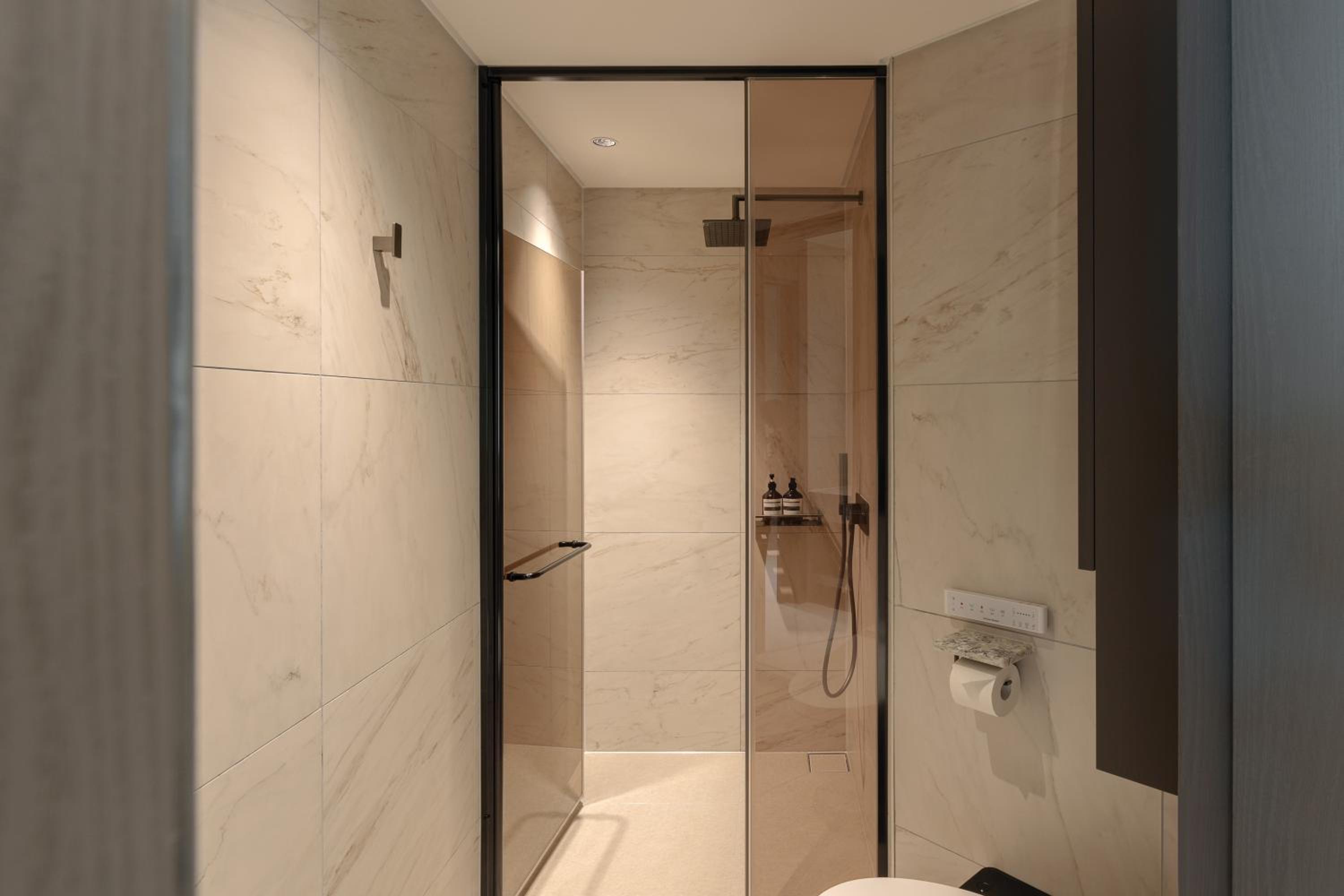 新穎且乾淨;步行可達海雲臺鬧區及夜市;可寄放行李(但非24小時);房間電燈、空調是中控系統,含廚房的房型,但皆無英文指引,無法善很用很不便利;建議要住套房以上規格的房型,房間以外的設施皆要另外付費。