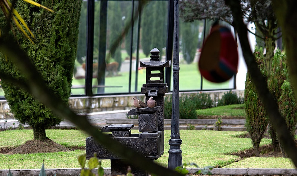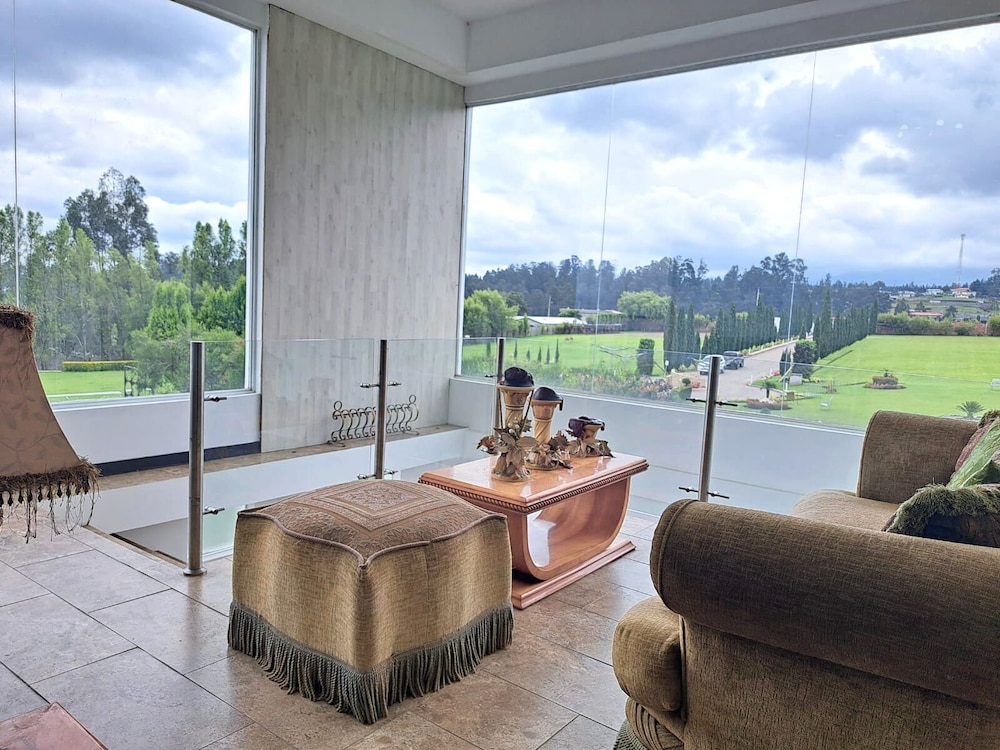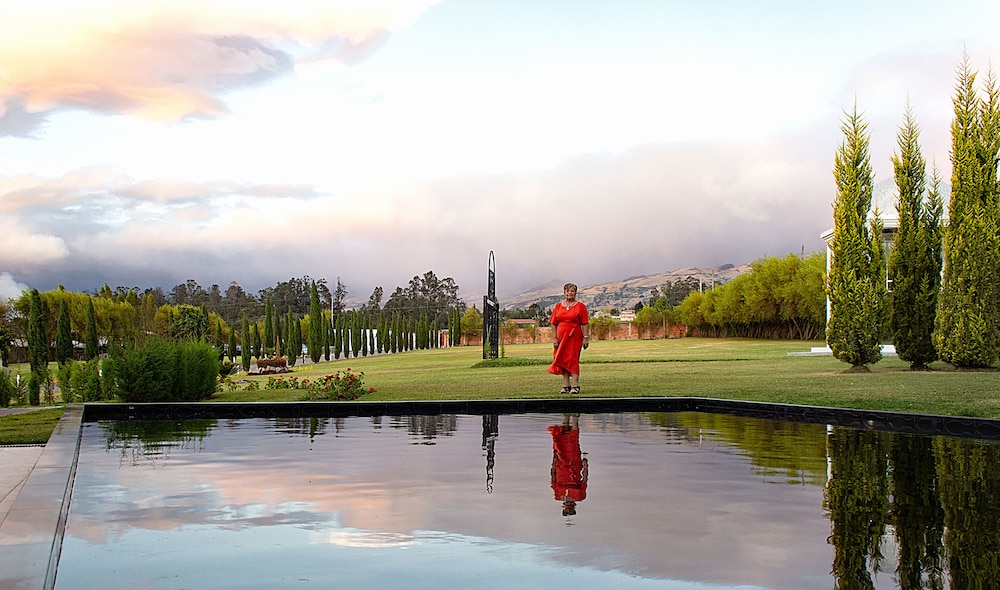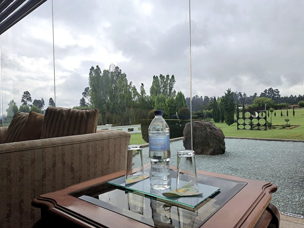 The hotel is uphill with beautiful views of the mountains. The sunset was incredible.