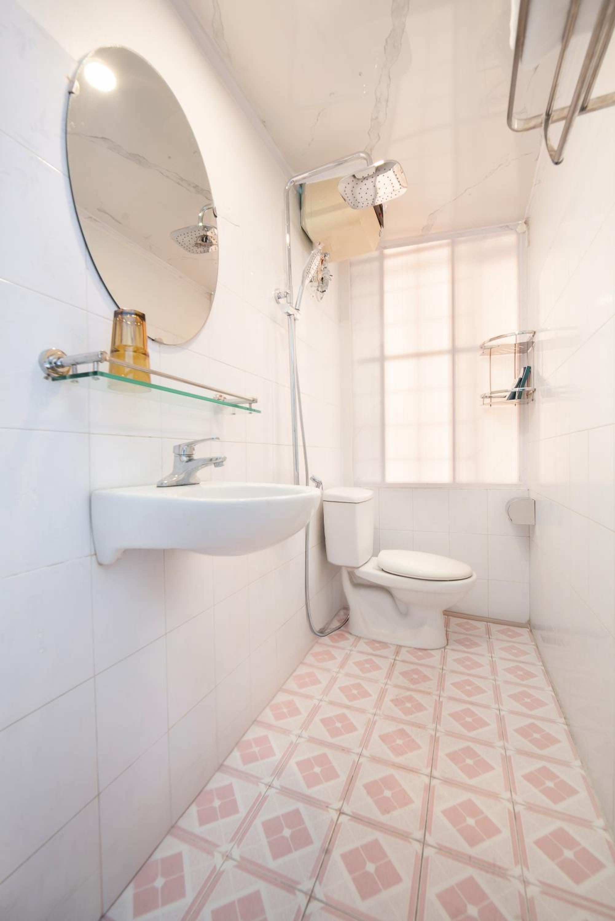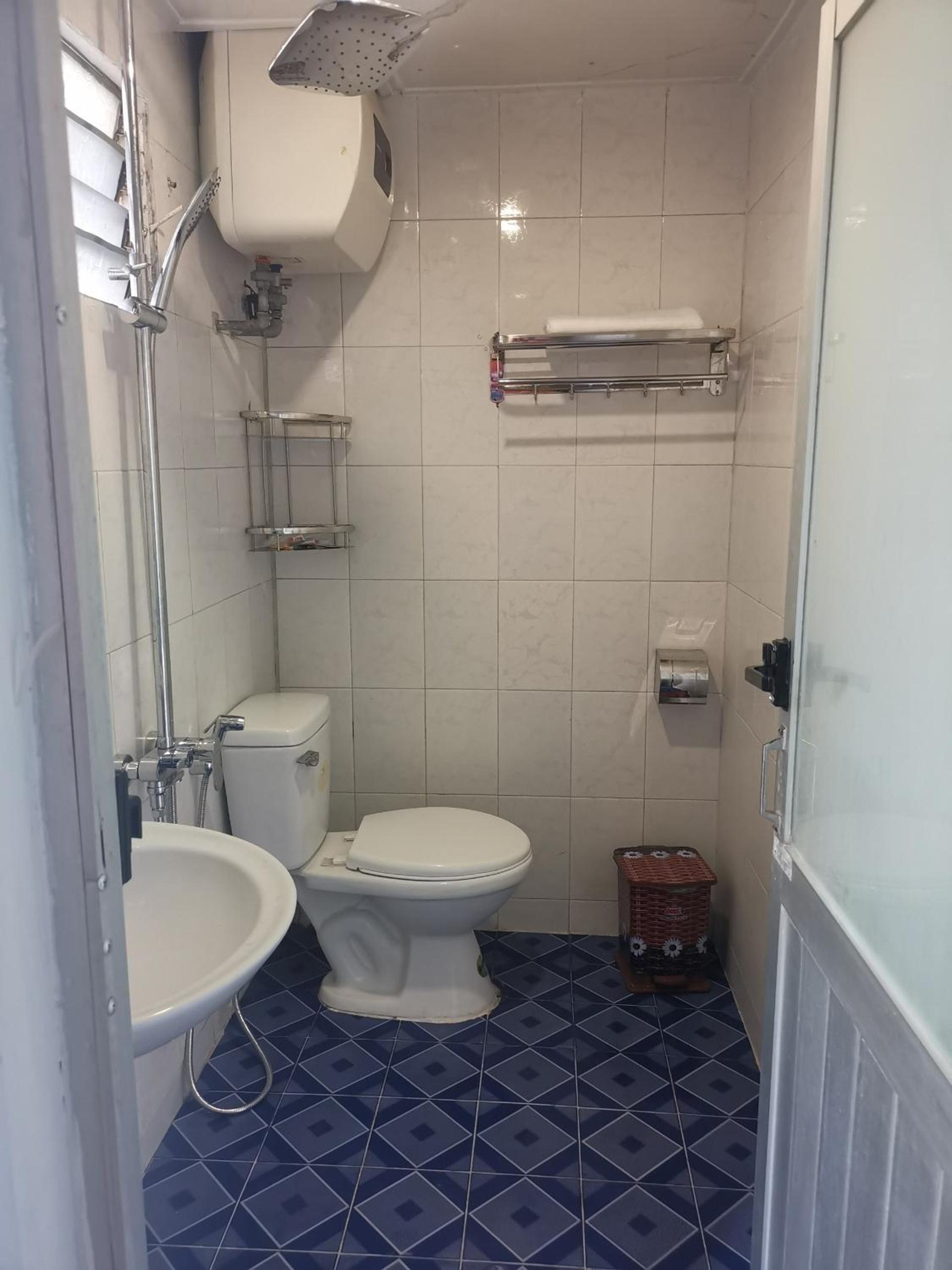 Toilet hơi nhỏ, chăn gối còn nồng mùi thuốc tẩy
