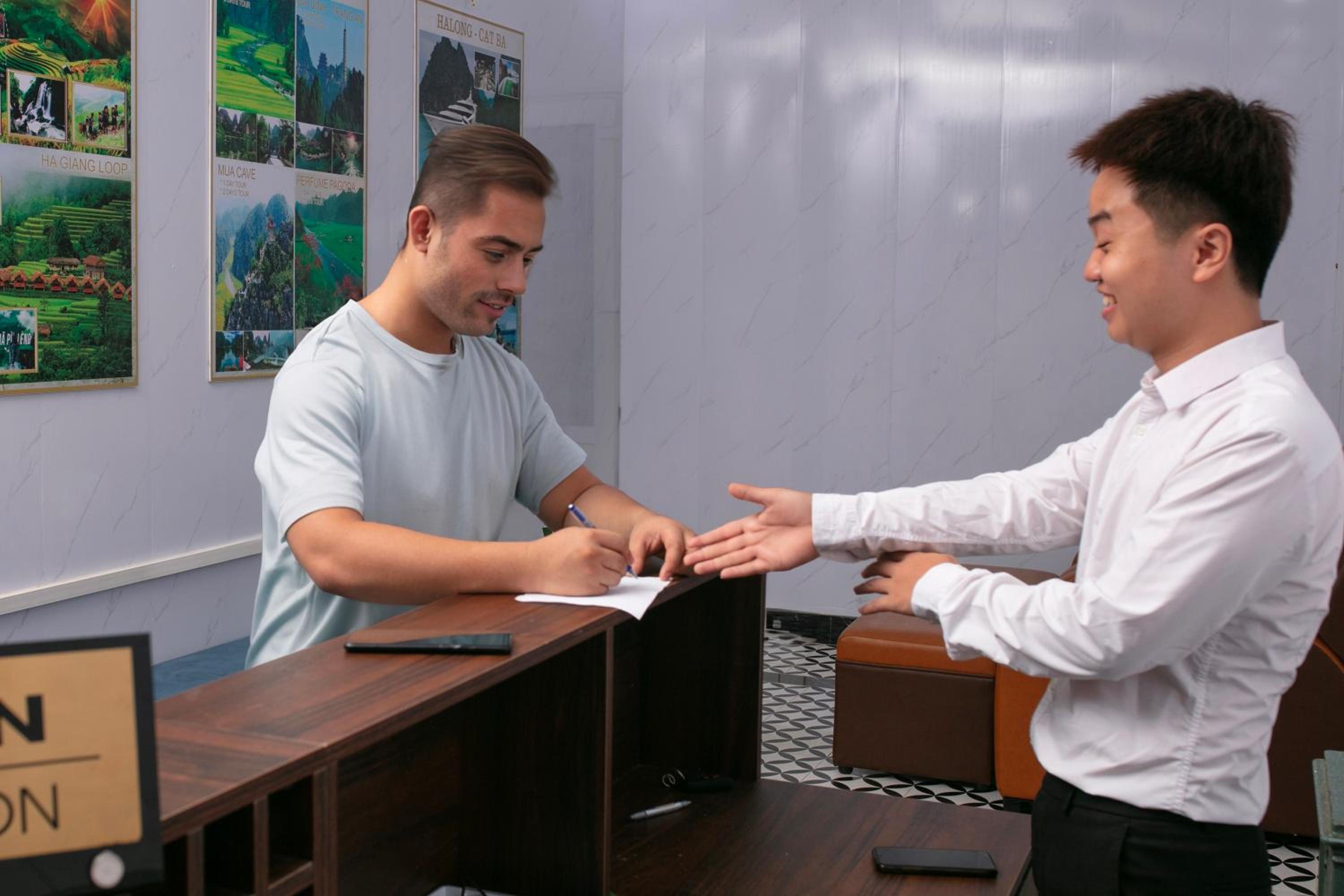 Nhân viên lễ tân vui vẻ tận tâm