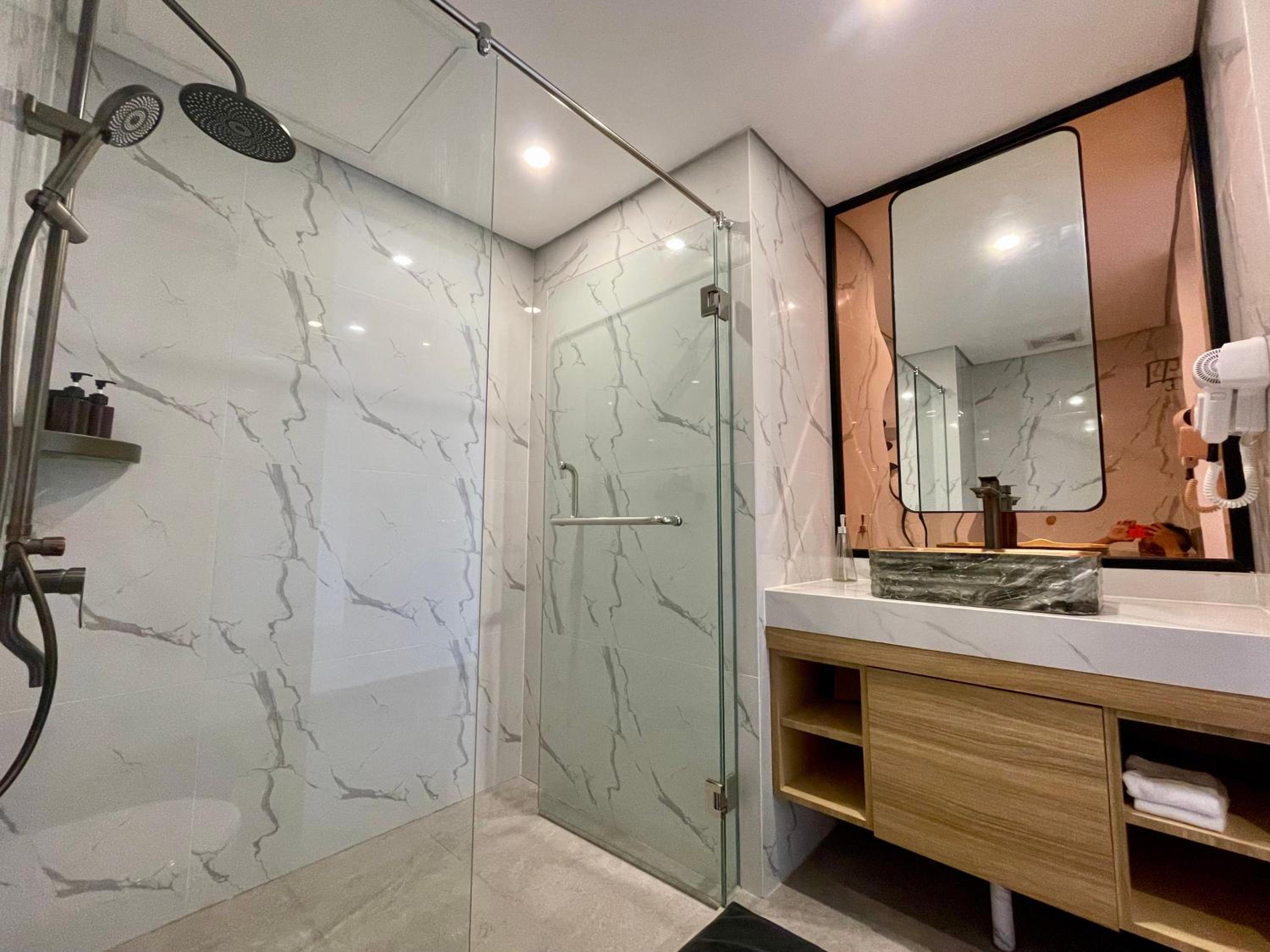 Luxurious Accommodation: Experience comfort and style in our air-conditioned rooms with modern amenities such as a flat-screen TV, safety deposit box, and a private bathroom.